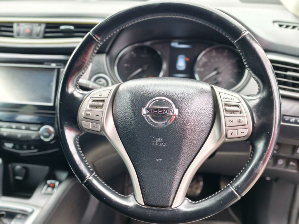 . 17in Alloy Wheels - 5-Spoke in Silver, 6 Speakers, 60-40 Split Rear Folding Seats, ABS - Anti Lock Brakes, AUX-In Socket, Airbag - Driver, Airbag - Passenger, Airbags - Curtain, Airbags - Side, Alarm, Armrest - Rear, Auto Dimming Rear View Mirror, Auto Rain Sensing Wipers, Black Honeycomb Front Grille, Body Coloured Handles, Brake Assist, Bumpers - Body Coloured, Chrome Glass Surround, Climate Control - Dual Zone, Cruise Control with Speed Limiter, DAB Radio, Door Mirrors - Body Coloured, Door Mirrors - Power Fold and Heated, Driver Seat Height Adjustment, EBD - Electronic Brakeforce Distribution, ESP - Electronic Stability Programme, Electric Speed-Sensitive Power Steering, Front Armrest, Front Collision Avoidance, Front Fog Lights, Front and Rear Electric Windows, Head Restraints - Active Front, Head Restraints - Rear, Headlights - Auto, Headlights - Auto High-Low Beam, Hill Start Assist, ISOFIX Childseat Anchorage Points - Middle Row Outer Seats, Immobiliser, Intelligent Key, Interior Ambient Lighting, LED Daytime Running Lights, Lane Departure Warning, Leather Steering Wheel, Luggage Board System, Lumbar Support, Panoramic Glass Roof, Parking Sensor - Front, Pollen Filter, Puncture Repair Kit, Push Start-Stop Button, Radio-CD, Rear Cupholder, Rear Door Child Locks, Rear Parking Sensor, Rear Privacy Glass, Rear View Camera, Satellite Navigation - Nissan Connect, Service Indicator, Smart Vision Pack, Speed-Sensitive Autolock Function, Steering Wheel Mounted Audio Controls, TPMS - Tyre Pressure Monitoring System, Telephone - Bluetooth Integration, Tilt and Telescopic Adjustable Steering Wheel, Touch Screen 7in, Traction Control, Traffic Sign Recognition, Trip Computer, USB Port, e-PKB - Electric Parking Brake. Full service history