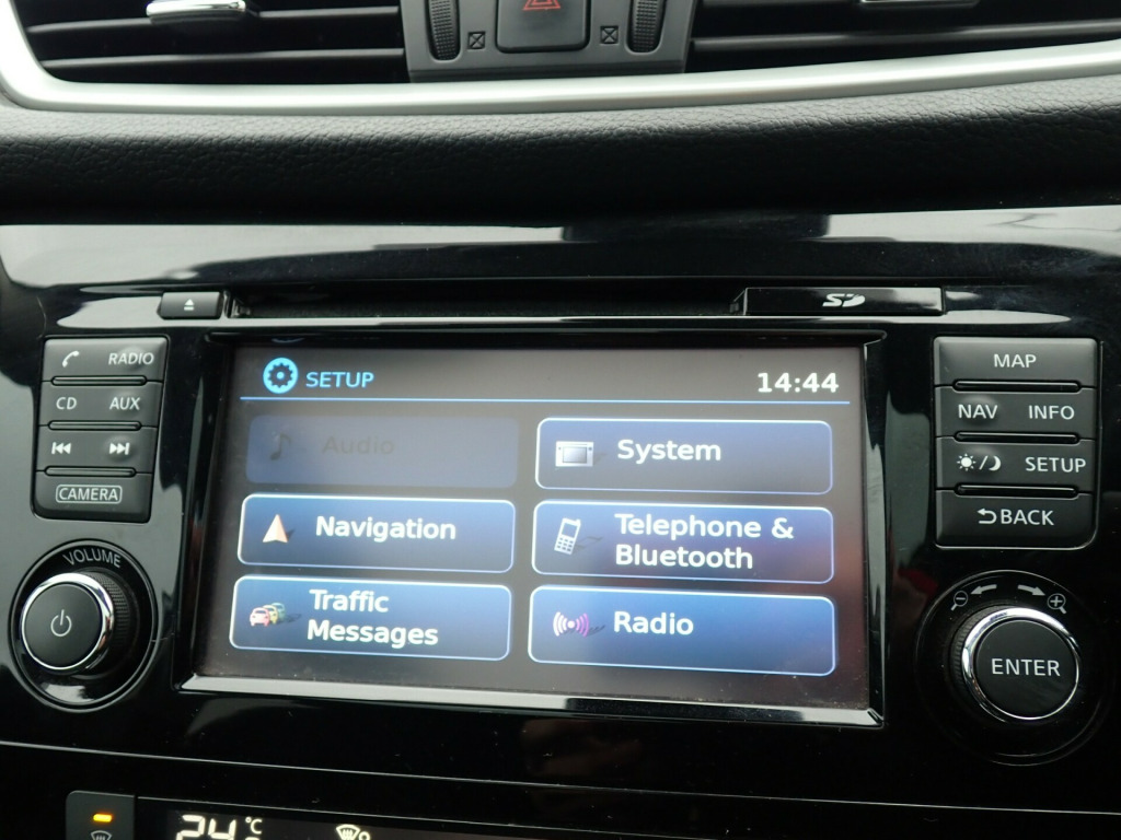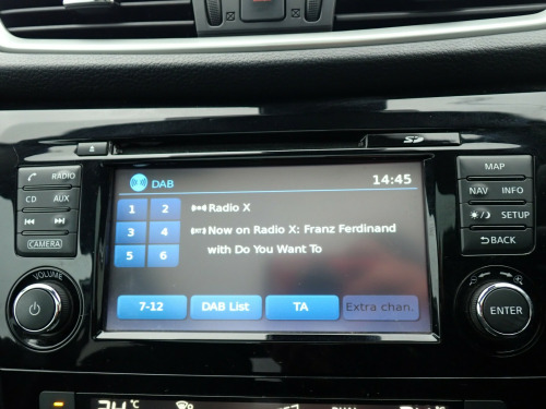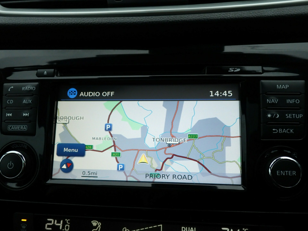 in alloy wheels - diamond cut, automatic folding door mirrors, black honeycomb front grille, body-coloured bumpers - handles and mirrors, chrome glass surround, front and rear electric windows, premium pack, puncture repair kit, rear privacy glass, 3 x 3-point rear seatbelts with elr, alarm, driver-passenger-side and curtain airbags, drivers side one-touch and anti-trap window, esp abs ebd and brake assist, front seat belt height adjustment, front seat belts with load limiter and pretensioners, hill start assist, isofix child seat anchoring points, immobiliser, intelligent key, rear door child locks, smart vision pack, e-pkb - electric parking brake, 5in high definition full colour tft screen combimeter, 6 speakers, aux socket for mp3 player, bluetooth, cd radio, 60-40 split rear folding seats, driver seat height adjustment, dual zone climate control air conditioning, front centre console and armrest, head restraints - 3 rear, height adjustable front head restraints, interior ambient lighting, leather gear knob, leather steering wheel, luggage board system, push start-stop button, rear seat armrest with 2 cupholders, remote audio control, seats - drivers lumbar support, seats - passengers height adjustment, tech pack, tilt and telescopic adjustable steering wheel, automatic lights and wipers, front fog lamps with chrome ring, led signature daytime running lights, cruise control with speed limiter, drive computer, electric speed-sensitive power steering, nissan chassis controls, selectable steering - normal or sport, tpms - tyre pressure monitoring system