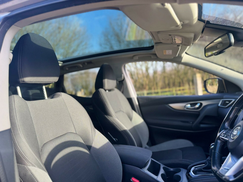 This 2018 Nissan Qashqai dCi N Connecta boasts exceptionally low mileage for its age, having covered just 60,695 miles. This Euro 6 compliant model features a 1.6 litre diesel engine and comes equipped with the desirable Glass Roof Pack, which includes a fixed panoramic sunroof, and the LED Pack for enhanced visibility with LED headlights. Convenience is further elevated by the Intelligent Key system offering keyless entry, alongside front and rear parking sensors as part of the Smart Vision Pack, making parking manoeuvres straightforward.The Qashqai N Connecta is designed to offer an economical and practical driving experience. Its impressive fuel economy of 60 miles per gallon highlights its efficiency, while its low CO2 emissions and low insurance group indicate that running costs are kept to a minimum. These factors collectively demonstrate how this particular Qashqai offers a superior proposition compared to many other vehicles in its class. ass roof pack, led pack, 18in alloy wheels - bi-colour, 3 height adjustable rear headrests, 6 speakers, 60-40 split rear folding seats, am-fm radio and cd player, aux socket, advanced drive assist display - 5in tft coloured screen, ambient lighting centre console, anti dazzle rear view mirror, auto wipers, bluetooth, body coloured door mirrors, body coloured handles, boot light, carbon graphite dash trim, chrome glass surround, chrome interior door handles, cruise control with speed limiter, dab digital radio, daytime running lights dip function when turn signal applied, driver seat height adjustment, driver-passenger-side and curtain airbags, drivers seat with manual lumbar support, dual zone climate control air conditioning, esp abs ebd and brake assist, electric auto-folding door mirrors, electric parking brake, electric speed-sensitive power steering, front 12v power sockets x2, front centre console and armrest, front seat belts with load limiter and pretensioners, front and rear door pockets with drink holders, front and rear electric windows, front and rear seatbelt warning, halogen headlamps, headlights - high beam assist, height adjustable front head restraints, height adjustable front seatbelts, hill start assist, isofix child seat anchoring points - rear x2, intelligent around view monitor, intelligent auto headlight, intelligent emergency braking, intelligent key, interior ambient lighting, led signature daytime running lights, led turn indicator on door mirrors, lane departure warning, leather d shaped steering wheel, leather gear lever, leather knee pad, luggage board system, matt silver roof rails, monoform front seats with plastic backboard, nissan anti theft system immobiliser, nissan chassis controls, nissanconnect evo touchscreen navigation and entertainment system, one touch 4 x auto windows with illuminated switches, outside temperature sensor, parcel shelf - stow function under luggage board, parking sensor - front, passenger airbag deactivation system, passengers seat with manual lumbar support, pollen filter, privacy glass, puncture repair kit, rear parking sensors, rear roof spoiler, rear view camera, rear wiper with reverse link, remote central locking, seats - passengers height adjustment, selectable steering - normal or sport, shark fin antenna, smart vision pack, smartphone app integration, start push button, steering wheel mounted audio controls, synthetic leather wrapped door handle with contrasting stitching, tpms - tyre pressure monitoring system, tech pack, thatcham category 1 alarm, tilt and telescopic adjustable steering wheel, traffic sign recognition, trip computer, usb port, underbody vortex generators