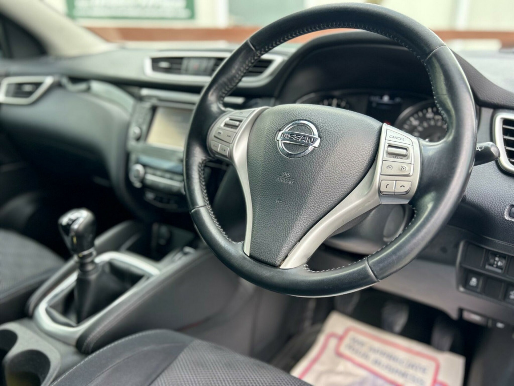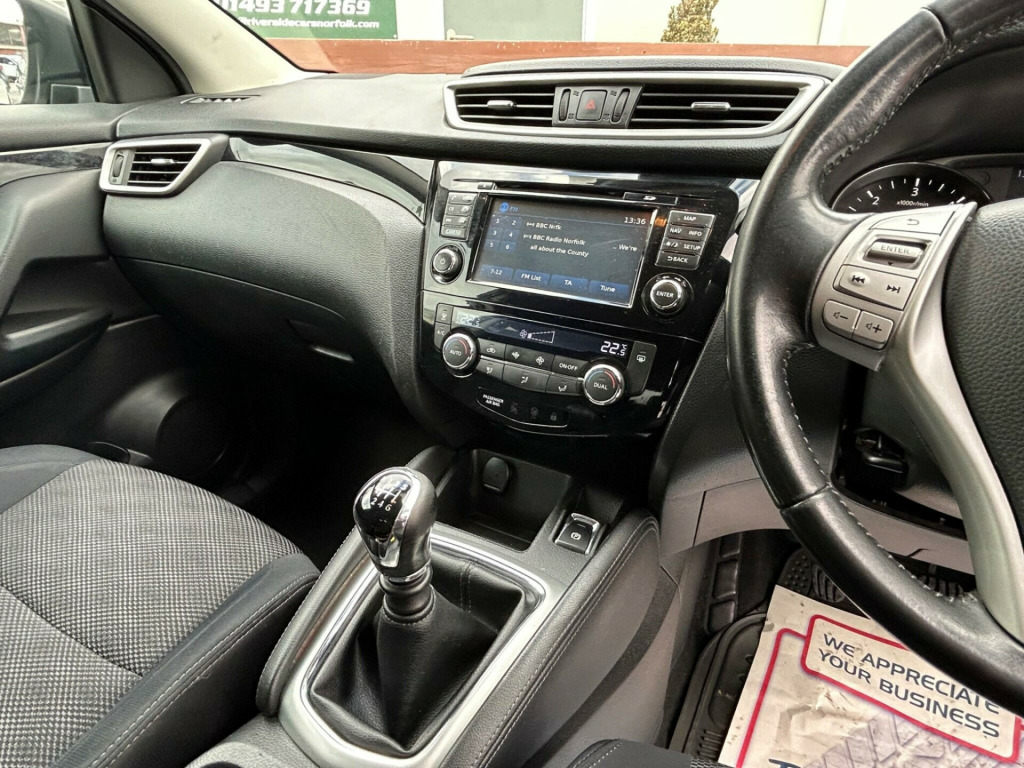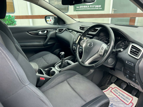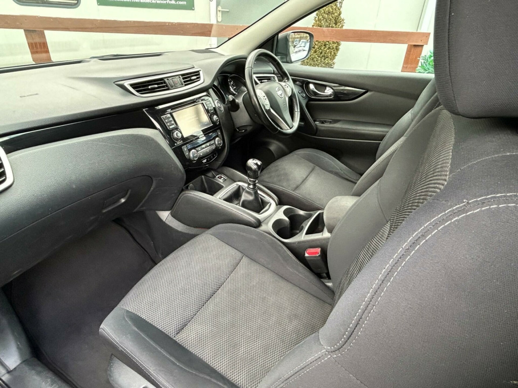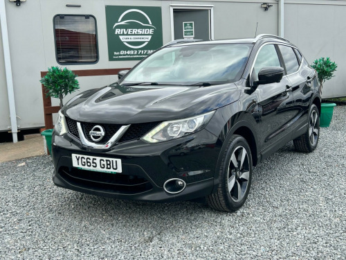 Finished In Black This 2015 Nissan Qashqai dCi n-tec+ boasts a remarkable provenance, having been owned by only two previous keepers. This popular family SUV features a 1.6L diesel engine and is a Euro 6 emission class vehicle. The n-tec+ trim level comes equipped with a host of convenient features, including Intelligent Key with keyless entry, allowing for effortless access. Stay connected on the go with Bluetooth integration for your telephone, and navigate tight spaces with ease thanks to the Around View Monitor, which provides a 360 degree bird's eye view for parking assistance. Enjoy personalised comfort with Dual Zone climate control and benefit from enhanced visibility with automatic headlights.This Nissan Qashqai stands out with its impressive fuel economy, achieving a highlight of 61 miles per gallon, which indicates it is more economical than many similar vehicles. Furthermore, its low CO2 emissions and low insurance group highlight its cost effectiveness for everyday driving. These factors combined make this Qashqai a sensible and appealing choice for those seeking a practical and efficient vehicle.At Riverside Cars & Commercial all our customers have the added peace of mind that all our vehicles are supplied with the following, pre delivery inspection, mot, sales service & 1 months parts & labour warranty & extended warranties are available for total peace of mind. We also have our own workshop facilities on site with use of free courtesy cars available. Part exchange welcome & finance available. We offer both PCP and Hire Purchase agreements, please call us for a free quotation or more information. All of our vehicles have vast specifications, in most cases, far to much too list, so please always check the vehicles exact specification prior to purchase as this is out of our control. Vehicle information is fed via Autotrader. We always have at least 50 vehicles in stock to choose from. For a personalised walk round video or more information please call Tel : 01493 717369, in alloy wheels - diamond cut, 6 speakers, 60-40 split rear folding seats, abs - anti lock brakes, aux-in socket, airbag - driver, airbag - passenger, airbags - curtain, airbags - side, alarm, armrest - rear, around view monitor - 360 bird-view, auto dimming rear view mirror, auto rain sensing wipers, black honeycomb front grille, body coloured handles, brake assist, bumpers - body coloured, chrome glass surround, climate control - dual zone, colour side camera, cruise control with speed limiter, dab radio, door mirrors - body coloured, door mirrors - power fold and heated, driver seat height adjustment, ebd - electronic brakeforce distribution, esp - electronic stability programme, electric speed-sensitive power steering, front armrest, front collision avoidance, front fog lights, front and rear electric windows, head restraints - active front, head restraints - rear, headlights - auto, headlights - auto high-low beam, hill start assist, isofix childseat anchorage points - middle row outer seats, immobiliser, intelligent key, interior ambient lighting, led daytime running lights, lane departure warning, leather gear knob, leather steering wheel, luggage board system, lumbar support, panoramic glass roof, parking sensor - front, pollen filter, puncture repair kit, push start-stop button, radio-cd, rear cupholder, rear door child locks, rear parking sensor, rear privacy glass, roof rails - satin, satellite navigation - nissan connect, seats - passengers height adjustment, smart vision pack, speed-sensitive autolock function, steering wheel mounted audio controls, tpms - tyre pressure monitoring system, telephone - bluetooth integration, tilt and telescopic adjustable steering wheel, touch screen 7in, traction control, traffic sign recognition, trip computer, usb port, e-pkb - electric parking brake