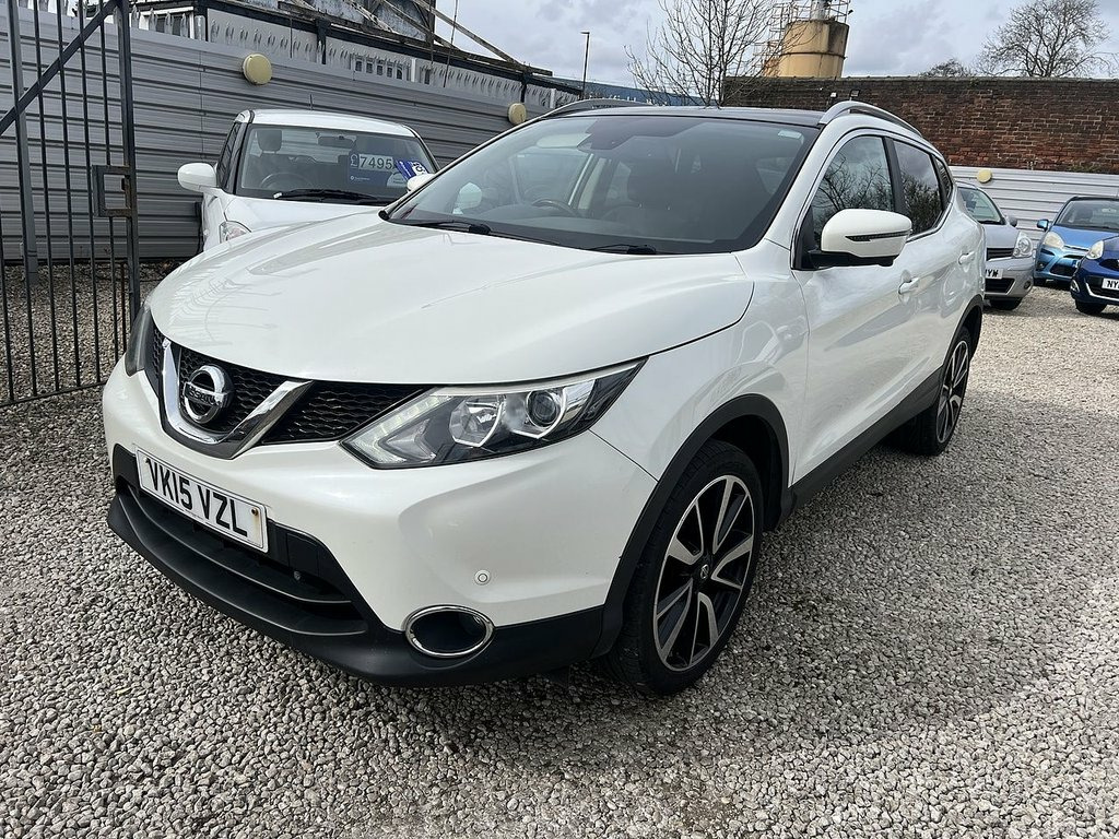2015 Nissan Qashqai dCi n-tec+ in a sleek white colour. This SUV has had 1 previous owner and is in excellent condition. With a fuel-efficient diesel engine size of 1.6, this manual transmission car has a mileage of 74385. The Nissan Qashqai comes with a range of standard features including 18in Alloy Wheels, DAB Radio, Cruise Control, Around View Monitor, and Lane Departure Warning. It also includes optional specifications such as Satellite Navigation, Bluetooth Integration, and a Panoramic Glass Roof. With a top speed of 118 and an acceleration of 9.9, this Qashqai has a powerful 128 BHP engine. It also boasts an impressive MPG of 64.2, making it an economical choice for any driver. Don't miss out on this fantastic opportunity to own a reliable and stylish Nissan Qashqai. Contact us today to arrange a test drive and see for yourself why this SUV is the perfect choice for your next adventure. 18in Alloy Wheels - Diamond Cut, 6 Speakers, 60-40 Split Rear Folding Seats, ABS - Anti Lock Brakes, Airbag - Driver, Airbag - Passenger, Airbags - Curtain, Airbags - Side, Alarm, Armrest - Rear, Around View Monitor - 360 Bird-View, Auto Dimming Rear View Mirror, Auto Rain Sensing Wipers, AUX-In Socket, Black Honeycomb Front Grille, Body Coloured Handles, Brake Assist, Bumpers - Body Coloured, Chrome Glass Surround, Climate Control - Dual Zone, Cruise Control with Speed Limiter, DAB Radio, Door Mirrors - Body Coloured, Door Mirrors - Power Fold and Heated, Driver Seat Height Adjustment, e-PKB - Electric Parking Brake, EBD - Electronic Brakeforce Distribution, Electric Speed-Sensitive Power S