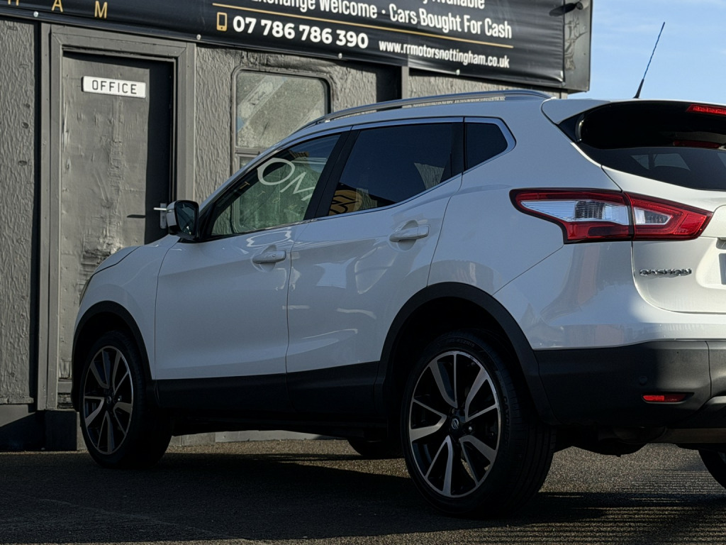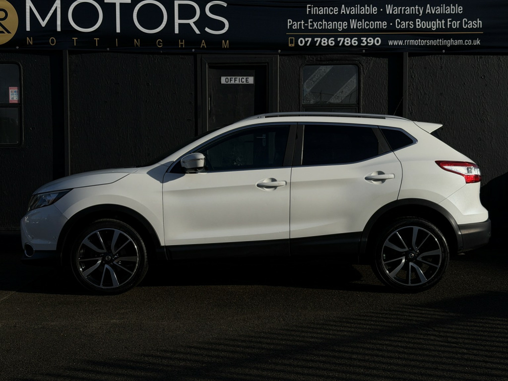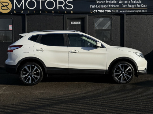 RR Motors Nottingham proudly presents this stunning Nissan Qashqai 1.6 dCi Tekna finished in White (Manual), 86559 miles, only 2 previous owners. , Welcome to the sale of this stunning Nissan Qashqai 1.6 dCi 130 4WD Tekna, finished in the beautiful Metallic Satin Pearl. With 86,000 miles from new, this vehicle has been very well cherished by its previous owners and is presented in excellent condition throughout. It comes complete with two keys, a full book pack, and as the Tekna model (top of the range), it boasts an exceptionally high specification. Features include satellite navigation, parking sensors with 360-degree cameras, full leather interior, electric seats, heated seats, 19 alloy wheels, panoramic sunroof, privacy glass, dual-zone climate control, and electric folding mirrors. This example also benefits from adaptive 4WD, allowing the driver to seamlessly switch between 2WD and 4WD at the push of a button, providing added confidence in all driving conditions. A great-looking, ultra-reliable SUV, powered by Nissans renowned Japanese engineering and finished in one of the best colours available on the market. Only £6,495, , All of our cars come with 6 Months MOT minimum and 3 Months Warranty, Extended warranties are available. PX welcome. Call us now on 07786786390 to secure your new vehicle. , Please note viewing is by appointment only as some of our cars are kept at our offsite secure storage facilities .