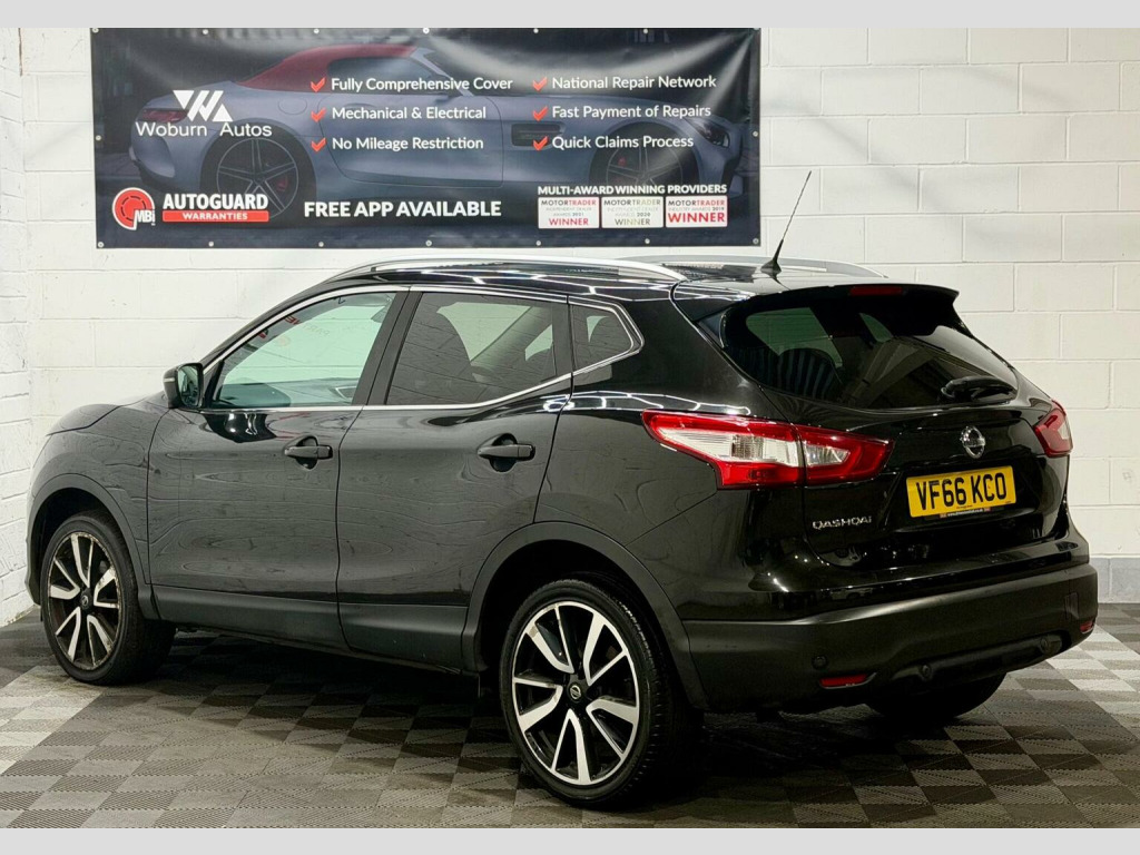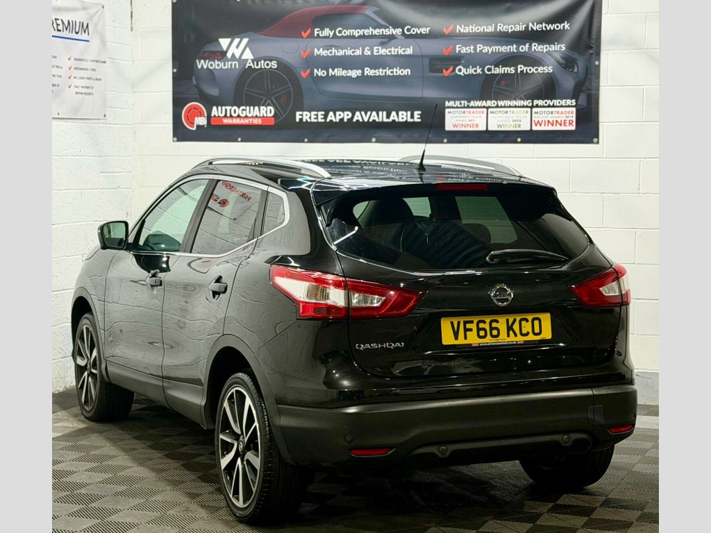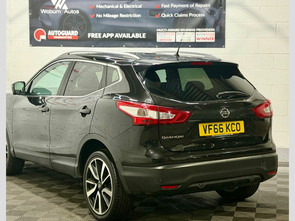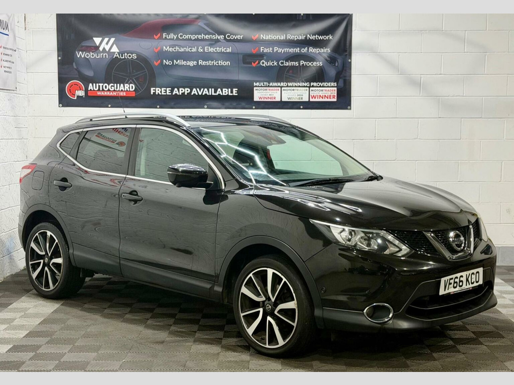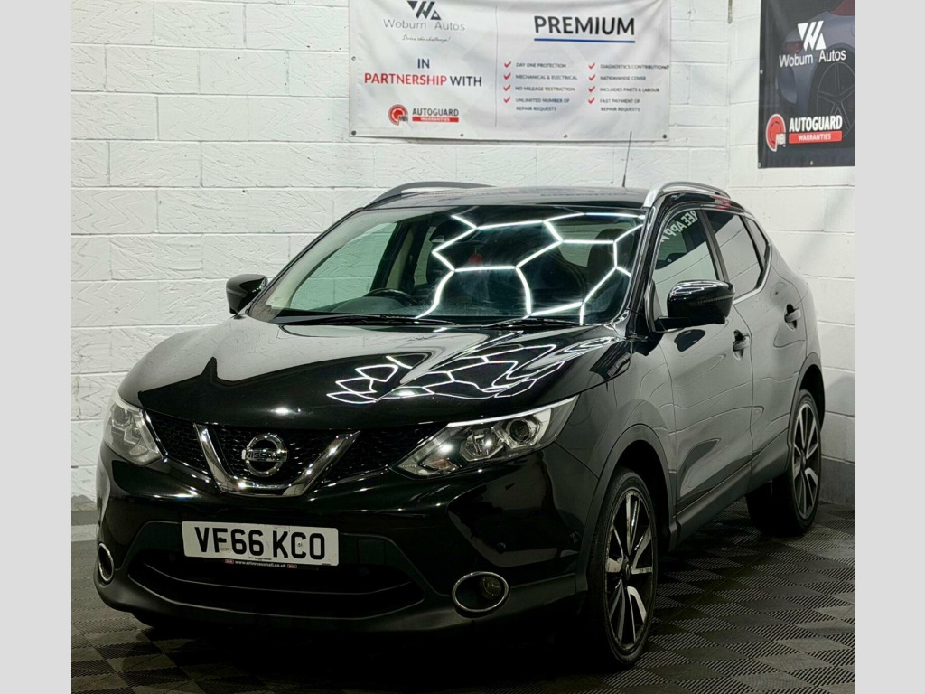 This 2017 Nissan Qashqai dCi Tekna is a superb example of this popular family car, boasting a Euro 6 compliant 1.6 litre diesel engine. As a Tekna trim, it comes equipped with a host of desirable features, including a panoramic sunroof with a one touch shade, dual zone climate control air conditioning, and heated seats thanks to the Executive Pack. The Tech Pack further enhances the experience with Bluetooth connectivity and a 360 degree parking assistance camera, making manoeuvring effortless. This Qashqai offers excellent running costs, achieving an impressive fuel economy of 61 miles per gallon. Its low CO2 emissions and low insurance group rating indicate that it is more economical to own and run than many other vehicles in its class. These highlights, combined with its comprehensive specification, make this Nissan Qashqai a compelling choice for those seeking a practical and well equipped compact SUV. , , HPI CLEAR,2 KEYS, FINANCE AVAILABLE WITH £0 DEPOSIT AT COMPETITIVE RATES, PLEASE VISIT WWW.woburnautos.co.uk or CALL 01525868505, EXTENDED WARRANTY AVAILABLE ON ALL OUR CARS (3, 6, 12, 18, 24) , COMES WITH PREMIUM 3 MONTHS WARRANTY, MOT VALID TILL 23/05/2026, SERVICE HISTORY, PANORAMIC ROOF,SATELLITE NAVIGATION,CRUISE CONTROL,LANE ASSIST,BLIND SPORT ASSIST,ELECTRIC SEAT,LEATHER SEATS,BLUETOOTH CONNECTION FOR CALLING AND MULTIMEDIA. SMOOTH ENGINE AND GEARBOX, CLEAN BODYWORK AS OF ITS AGE, CLEAN INTERIOR, CLEAN ALLOYS WITH GOOD TYRES, VIEWING RECOMMENDED, PART EX WELCOME, —————————————— WOBURN AUTOS IS TRUSTED AND LEADING USED CAR DEALERSHIP IN LEIGHTON BUZZARD. OUR VEHICLES ARE SUITABLE FOR ALL OUR CUSTOMERS NEEDS. FOR MORE INFO AND TO VIEW OUR STOCK PLEASE VISIT OUR WEBSITE WWW.WOBURNAUTOS.CO.UK —————————————— OUR WORKING HOURS ARE MONDAY TO SATURDAY 10AM TO 6PM AND ON SUNDAY 10AM TO 4:00PM. —————————————SOCIAL DISTANCING IN PRACTICE, BY APPOINTMENT ONLY, ACCEPT ALL DEBIT/CREDIT CARDS, p/x welcome