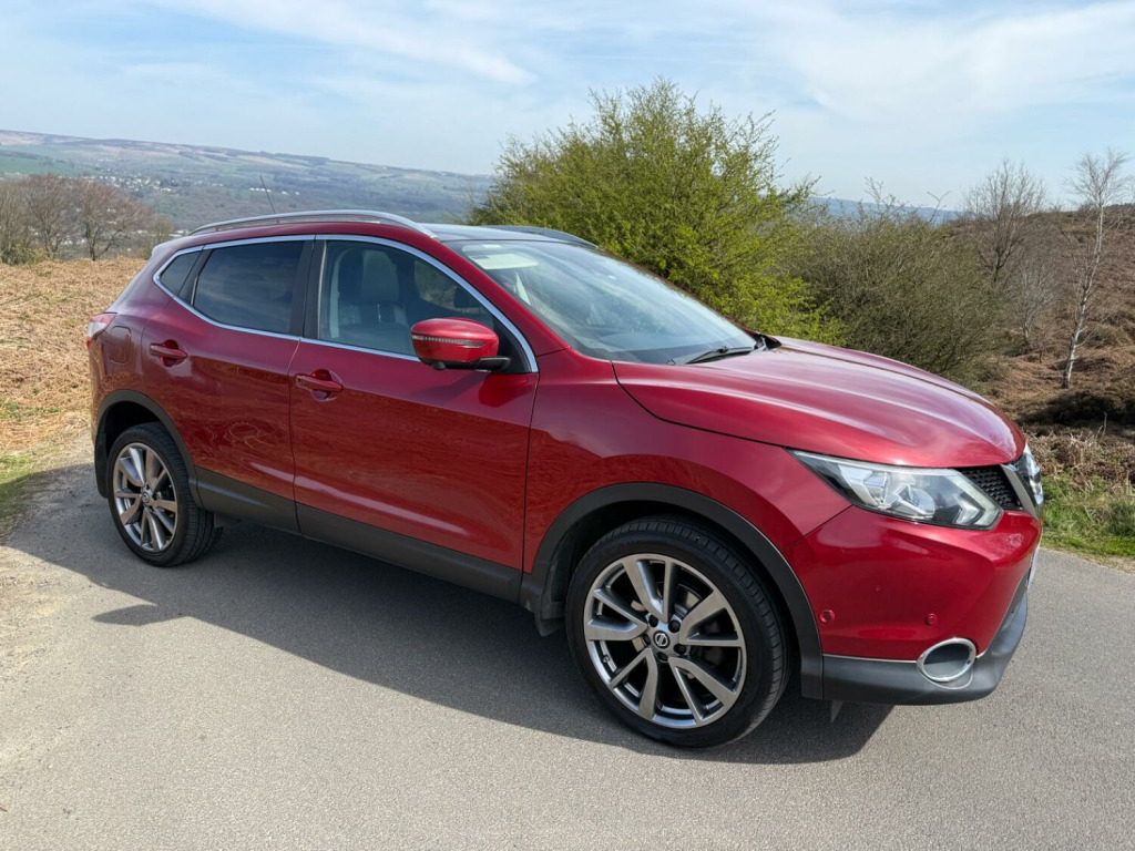 2016 (65) Nissan Qashqai 1.6 DCi Tekna manual , , Finished in metallic Red with full Black leather , , Only 64700 miles , , Panoramic Glass Roof , heated electric seats , refurbished alloys in Shadow Chrome , power folding mirrors , reversing camera , , Excellent condition throughout