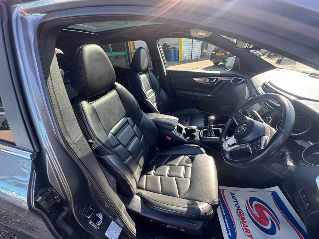 For sale a stunning Nissan Qashqai  1.6 DCI Tekna +, Just been fully serviced, Comes with 2 keys , 12 Months MOT & 3 Months warranty. , Vehicle registered: 31/07/2018, , Audio and Communications, AUX Socket, Advanced Drive Assist Display - 5in TFT Coloured Screen, Bluetooth, Bose 8 Speaker Premium Audio System, DAB Digital Radio, NissanConnect Evo Touchscreen Navigation and Entertainment System, Shark Fin Antenna, Smartphone App Integration, USB Port, , Drivers Assistance, Cruise Control with Speed Limiter, Intelligent Around View Monitor, Intelligent Park Assist, Lane Departure Warning, Parking Sensor - Front, Rear Parking Sensors, Rear View Camera, Selectable Steering - Normal or Sport, TPMS - Tyre Pressure Monitoring System, Traffic Sign Recognition, , Exterior, 19in Alloy Wheels, Body Coloured Handles, Chrome Glass Surround, Electric Auto-Folding Door Mirrors, Glass Roof Pack, Gloss Silver Roof Rails, Grey exterior colour, LED Pack, Privacy Glass, Rear Roof Spoiler, , Illumination, Adaptive Front Lighting System, Headlights - Automatic Levelling, Headlights - High Beam Assist, Headlights - LED, Intelligent Auto Headlight, , Interior, 3 Height Adjustable Rear Headrests, 60-40 Split Rear Folding Seats, Ambient Lighting Centre Console, Anti Dazzle Rear View Mirror, Boot Light, Chrome Interior Door Handles, Dark Headlining, Daytime Running Lights Dip Function When Turn Signal Applied, Dual Zone Climate Control Air Conditioning, Electrically Adjustable Drivers Seat, Electrically Adjustable Passenger Seat, Heat Pack, Height Adjustable Front Head Restraints, Individual Rear Seat Reading Lights, Interior Ambient Lighting, Leather Gear Lever, Leather Knee Pad, Memory Function Drivers Seat and Door Mirrors, Monoform Front Seats with Plastic Backboard, One Touch 4 x Auto Windows with Illuminated Switches, One-Touch Electric Shade, Parcel Shelf - Stow Function Under Luggage Board, Pollen Filter, Seats - Passengers Height Adjustment, Start Push Button, Synthetic Leather Wrapped Door Handle with Contrasting Stitching, Tech Pack, , Performance, Nissan Chassis Controls, Underbody Vortex Generators, , Safety and Security, ESP ABS EBD and Brake Assist, Electric Parking Brake, Front Seat Belts with Load Limiter and Pretensioners, Front and Rear Seatbelt Warning, Height Adjustable Front Seatbelts, Intelligent Emergency Braking, Intelligent Key, Passenger Airbag Deactivation System, Rear Wiper with Reverse Link, Safety Shield, Smart Vision Pack, Thatcham Category 1 Alarm, Spec, , , Performance, 0-62mph, 9.9 seconds, Top speed, 118mph, Cylinders, 4, Valves, 16, Engine power, 128BHP, Engine torque, 320NM, Miles per gallon, 64.2mpg, , Size and dimensions, Height, 1,590mm, Length, 4,394mm, Width, 2,070mm, Wheelbase, 2,646mm, Seats, 5, Fuel tank capacity, 55L, Boot space (seats down), 1,569L, Boot space (seats up), 401L, Minimum kerb weight, 1,429kg