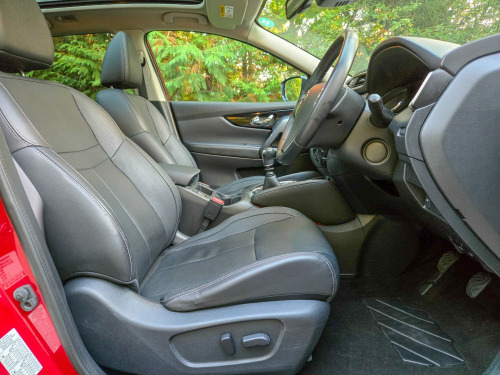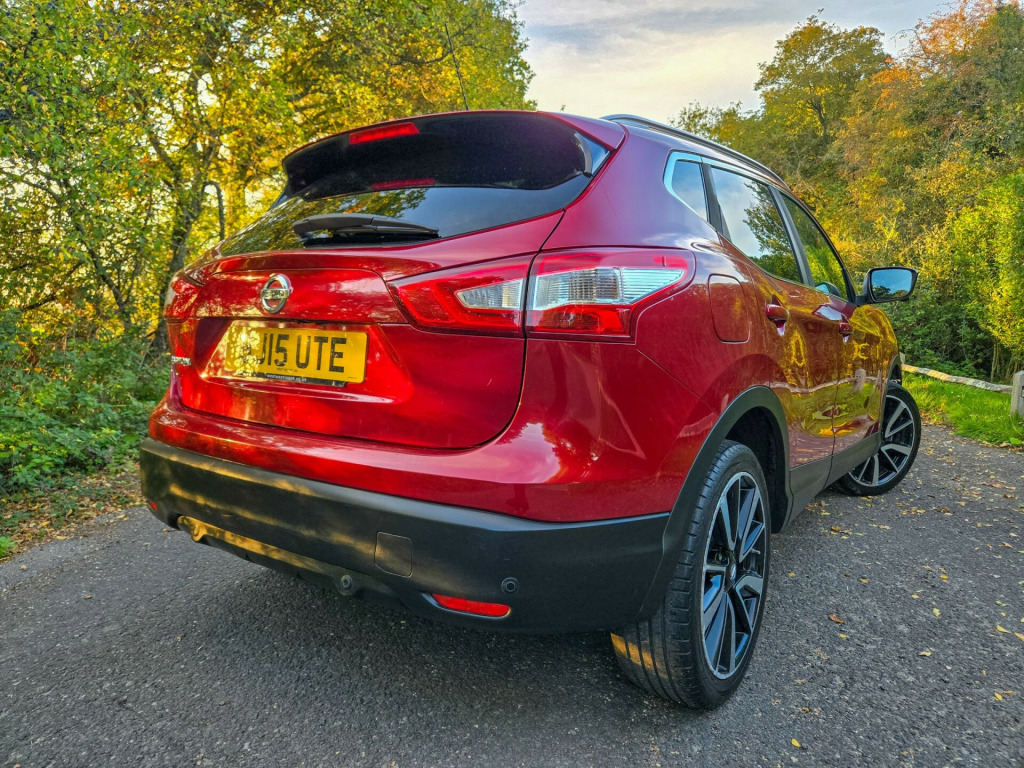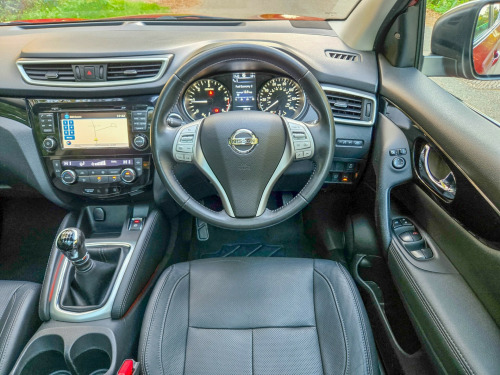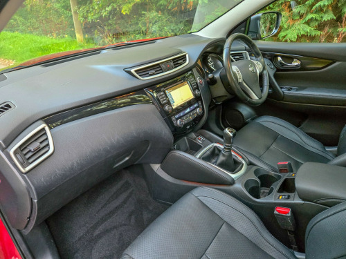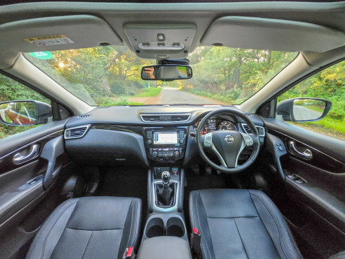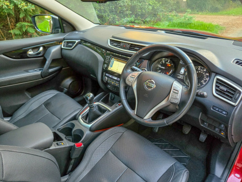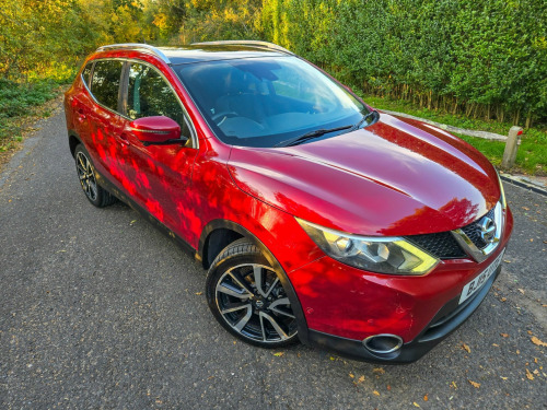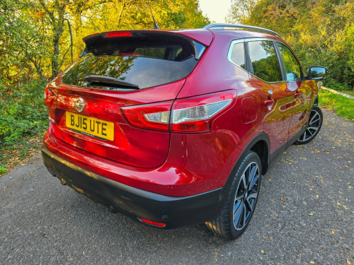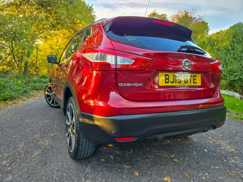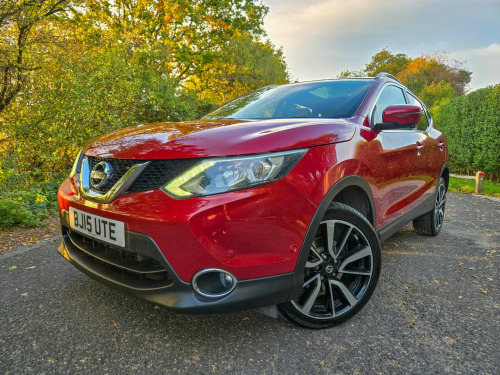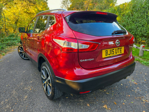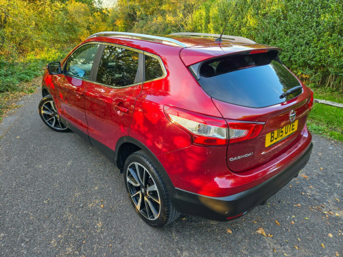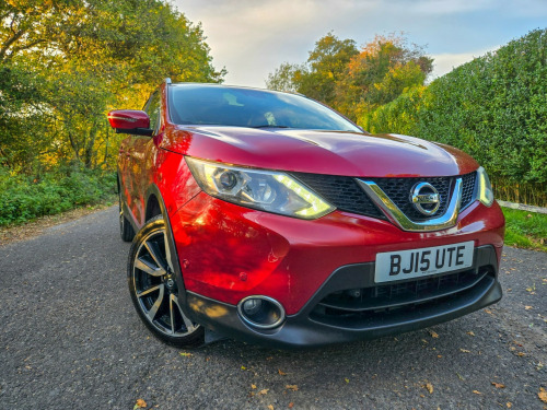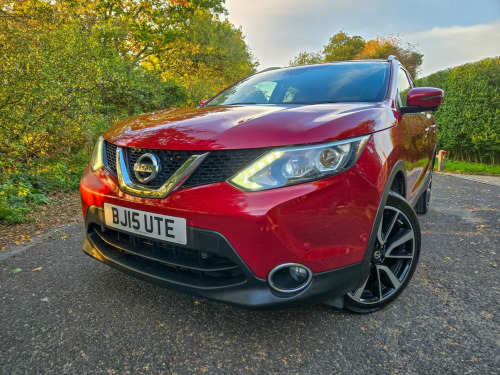JUST SERVICED,NEW TYRES,FULL HISTORY,This 2015 Nissan Qashqai 1.6 dCi Tekna SUV is a reliable and fuel-efficient car with 105000 miles on the clock. This diesel vehicle has a valid MOT until 01/04/2026 and offers a spacious interior with 5 seats and 5 doors, making it perfect for families or groups. The sleek black honeycomb front grille and 19in alloy wheels give the car a stylish appearance, while the chrome glass surround adds a touch of sophistication. With its Euro 5 (s/s) engine producing 130 ps, this 2WD car delivers a smooth and powerful driving experience. Whether you're commuting in the city or embarking on a weekend adventure, this Nissan Qashqai is a versatile and practical choice for any driver., in alloy wheels - 5-spoke, black honeycomb front grille, body coloured handles, bumpers - body coloured, chrome glass surround, door mirrors - body coloured, door mirrors - power fold and heated, front and rear electric windows, heated windscreen, puncture repair kit, rear privacy glass, roof rails, 6 speakers, aux-in socket, dab radio, radio-cd, satellite navigation - nissan connect, telephone - bluetooth integration, touch screen 7in, usb port, 60-40 split rear folding seats, armrest - rear, auto dimming rear view mirror, auto rain sensing wipers, climate control - dual zone, driver seat height adjustment, front armrest, head restraints - active front, head restraints - rear, interior ambient lighting, leather gear knob, leather steering wheel, luggage board system, lumbar support, pollen filter, push start-stop button, rear cupholder, seats - drivers electric adjustment, seats - heated front, steering wheel mounted audio controls, tilt and telescopic adjustable steering wheel, abs - anti lock brakes, airbag - driver, airbag - passenger, airbags - curtain, airbags - side, alarm, brake assist, ebd - electronic brakeforce distribution, esp - electronic stability programme, fatigue alert, front collision avoidance, hill start assist, isofix childseat anchorage points - middle row outer seats, immobiliser, intelligent key, rear door child locks, safety shield, smart vision pack, speed-sensitive autolock function, traction control, e-pkb - electric parking brake, around view monitor - 360 bird-view, blind spot warning, colour side camera, cruise control with speed limiter, driver attention alert, electric speed-sensitive power steering, intelligent park assist, lane departure warning, moving object detection, parking sensor - front, rear parking sensor, rear view camera, tpms - tyre pressure monitoring system, traffic sign recognition, trip computer, front fog lights, headlights - auto, headlights - auto high-low beam, headlights - automatic levelling, headlights - bi-led, led daytime running lights