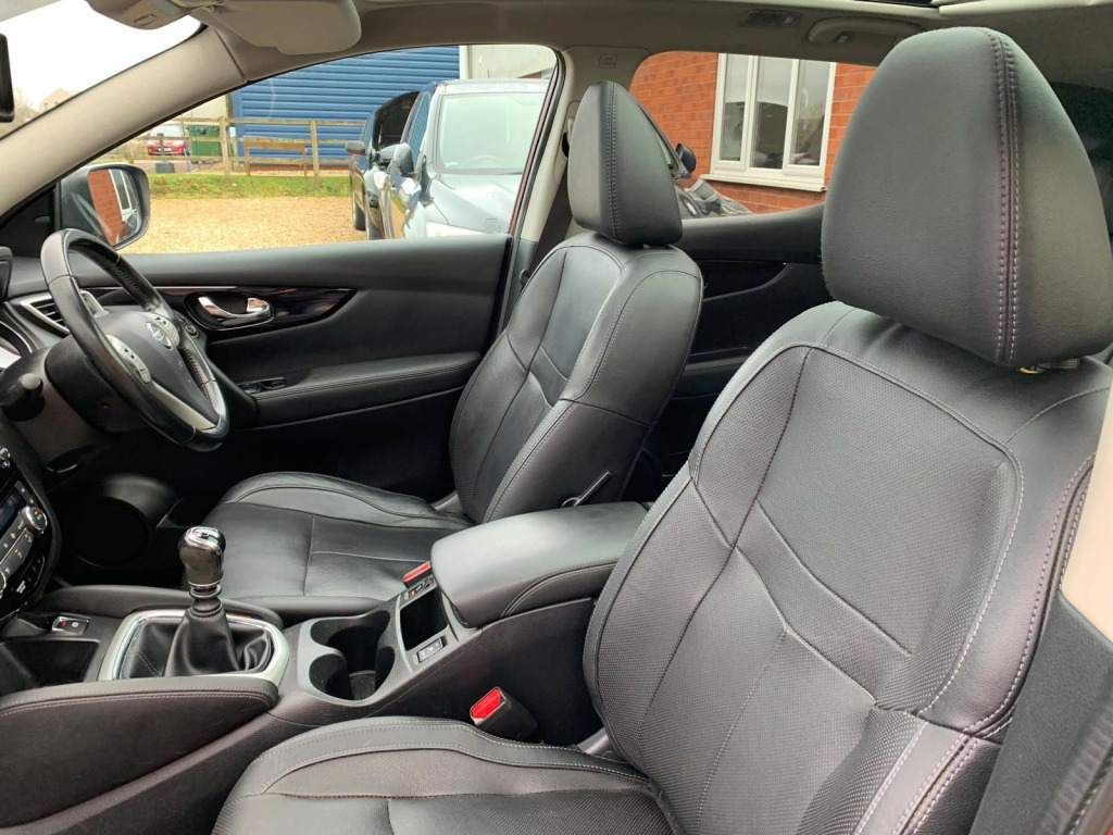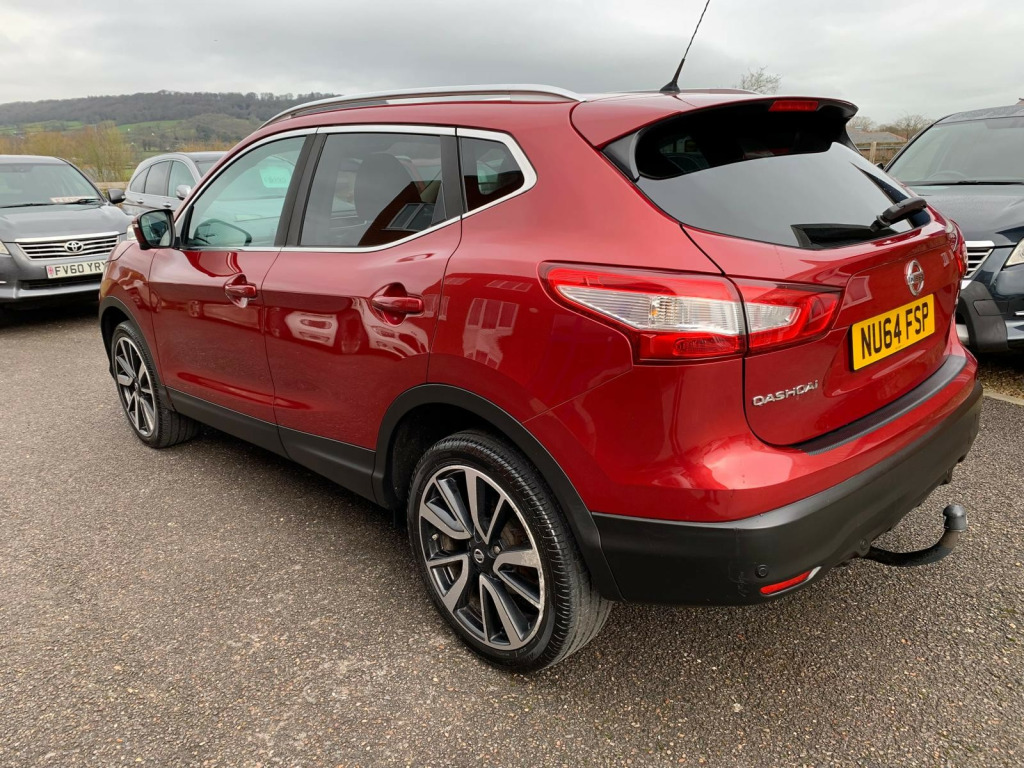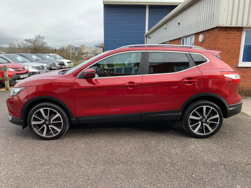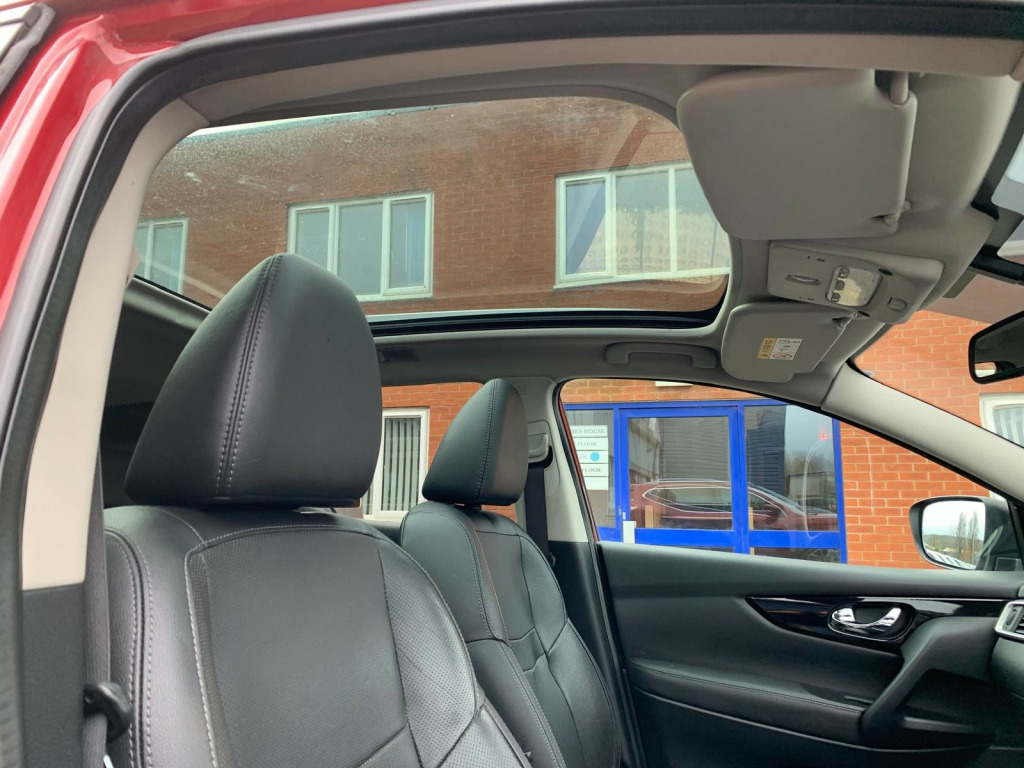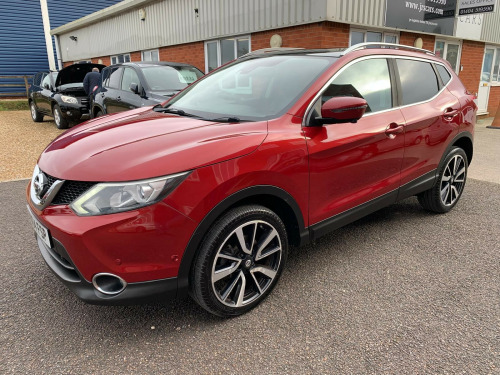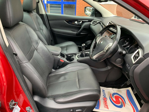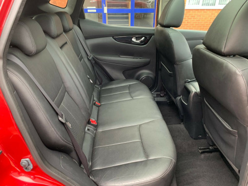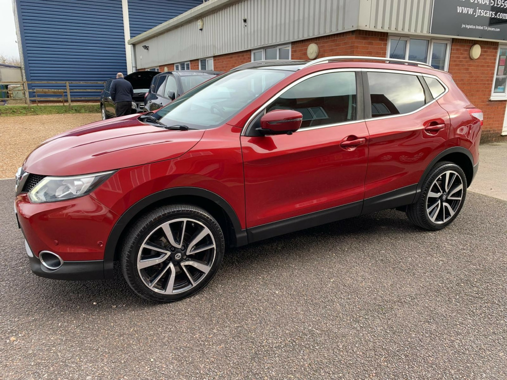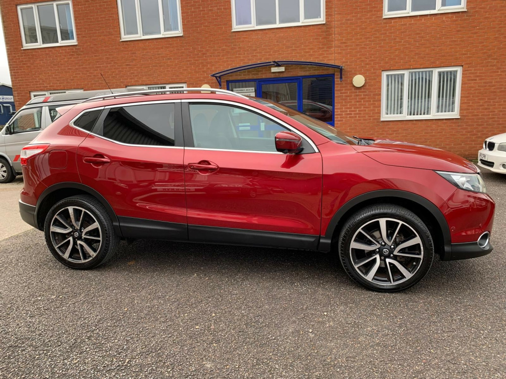 NISSAN QASHQAI 1.6 DCI TEKNA DIESEL MANUAL 4WD 5 DOOR FINISHED IN THE GREAT COLOUR COMBINATION OF MAGNETIC RED METALLIC BODYWORK WHICH SHINES LIKE THE DAY IT WAS FIRST REGISTERED AND GRAPHITE LEATHER INTERIOR IN FANTASTIC CONDITION THROUGHOUT!THIS TOP SPECIFICATION TEKNA EXAMPLE REALLY IS NOT TO BE CONFUSED WITH IT'S COMPETITORS WITH GREAT SPECIFICATION INCLUDING 360 DEGREE REVERSE CAMERA AND SO MUCH MORE AND UNRIVALLED CONDITION AND JUST 2 OWNERS FROM NEW! THE FIRST TO SEE WILL BUY!COMING WITH OUR SALES PACKAGE OF 10,692, 20,753, 31,499, 37,256, 44,319, 61,090 AND JUST SERVICED AT 65,656 MILES!COMING WITH OUR SALES PACKAGE OF MOT TO 9TH DECEMBER 2026, JUST SERVICED AT 65,656 MILES, 1 YEAR GUARANTEE, AA BREAKDOWN COVER, FULL INTERIOR AND EXTERIOR DETAILED VALET AND 2 KEYS ALL IN THE PRICE! in alloy wheels - 5-spoke, black honeycomb front grille, body coloured handles, bumpers - body coloured, chrome glass surround, door mirrors - body coloured, door mirrors - power fold and heated, front and rear electric windows, heated windscreen, puncture repair kit, rear privacy glass, roof rails, 6 speakers, aux-in socket, dab radio, radio-cd, satellite navigation - nissan connect, telephone - bluetooth integration, touch screen 7in, usb port, 60-40 split rear folding seats, armrest - rear, auto dimming rear view mirror, auto rain sensing wipers, climate control - dual zone, driver seat height adjustment, front armrest, head restraints - active front, head restraints - rear, interior ambient lighting, leather gear knob, leather steering wheel, luggage board system, lumbar support, pollen filter, push start-stop button, rear cupholder, seats - drivers electric adjustment, seats - heated front, steering wheel mounted audio controls, tilt and telescopic adjustable steering wheel, abs - anti lock brakes, airbag - driver, airbag - passenger, airbags - curtain, airbags - side, alarm, brake assist, ebd - electronic brakeforce distribution, esp - electronic stability programme, fatigue alert, front collision avoidance, hill start assist, isofix childseat anchorage points - middle row outer seats, immobiliser, intelligent key, rear door child locks, safety shield, smart vision pack, speed-sensitive autolock function, traction control, e-pkb - electric parking brake, around view monitor - 360 bird-view, blind spot warning, colour side camera, cruise control with speed limiter, driver attention alert, electric speed-sensitive power steering, intelligent park assist, lane departure warning, moving object detection, parking sensor - front, rear parking sensor, rear view camera, tpms - tyre pressure monitoring system, traffic sign recognition, trip computer, front fog lights, headlights - auto, headlights - auto high-low beam, headlights - automatic levelling, headlights - bi-led, led daytime running lights