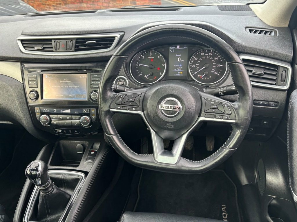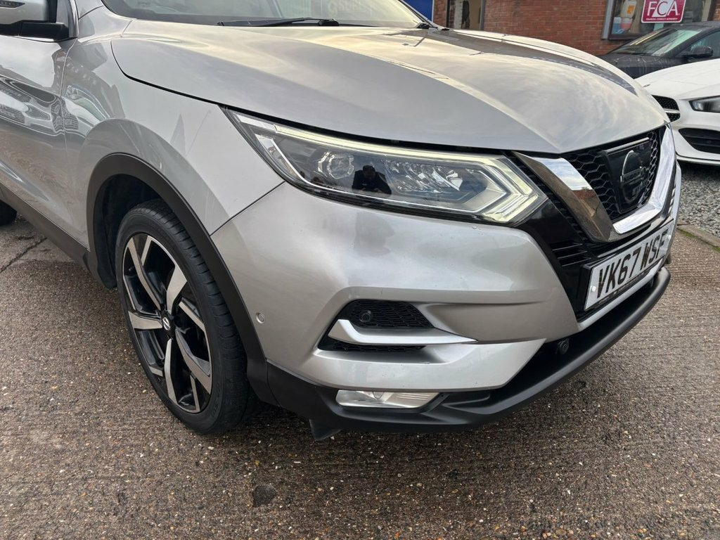 This 2017 Nissan Qashqai dCi Tekna boasts exceptionally low mileage for its age, having covered just 53,406 miles, and comes with a clear vehicle history check. As a Euro 6 compliant model, it features a 1.6 litre diesel engine and is presented in the well appointed Tekna trim. This particular Qashqai benefits from a desirable Heat Pack, including heated seats, and the convenience of Intelligent Key with keyless entry. Further enhancing its appeal are the LED Pack with LED headlights, dual zone climate control air conditioning, and a rear view camera for easier parking. This Nissan Qashqai stands out with its impressive fuel economy, achieving a remarkable 64 miles per gallon, which indicates it is more economical than many similar vehicles. Its low insurance group also suggests that running costs will be lower compared to other cars in its class. Furthermore, its low CO2 emissions highlight its environmental consideration. These combined factors make this Qashqai a sensible and cost effective choice for many drivers. 19in Alloy Wheels, 3 Height Adjustable Rear Headrests, 60-40 Split Rear Folding Seats, AM-FM Radio and CD Player, AUX Socket, Adaptive Front Lighting System, Advanced Drive Assist Display - 5in TFT , Ambient Lighting Centre Console, Anti Dazzle Rear View Mirror, Auto Wipers, AutoHold Function - Stand Still Assist, Bluetooth, Body Coloured Door Mirrors, Body Coloured Handles, Boot Light, Bose 8 Speaker Premium Audio System, Carbon Graphite Dash Trim, Chrome Glass Surround, Chrome Interior Door Handles, Cruise Control with Speed Limiter, DAB Digital Radio, Daytime Running Lights Dip Function When, Driver Seat Height Adjustment, Driver-Passenger-Side and Curtain Airbag, Drivers Seat with Manual