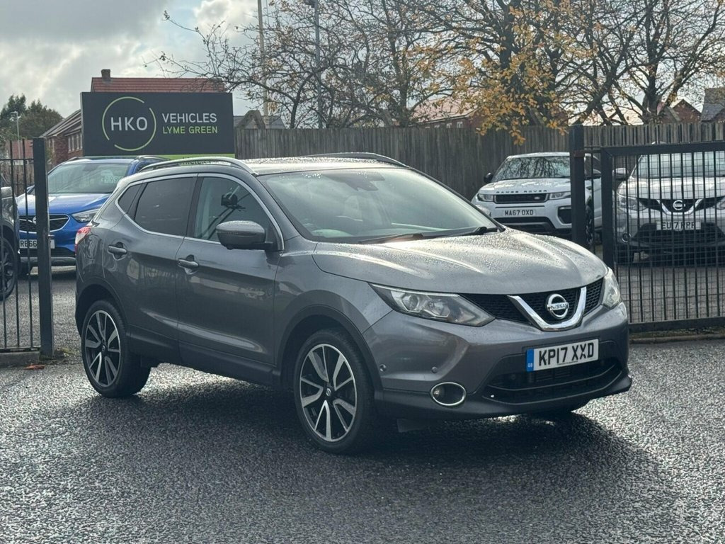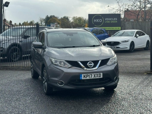 Welcome to HKO Vehicles Lyme Green ? we?re delighted to offer this stunning 2017 Nissan Qashqai 1.6 dCi Tekna XTRON 2WD finished in sleek metallic grey. A superb example of Nissan?s best-selling SUV, combining comfort, efficiency and practicality with premium features and modern styling. This Qashqai has covered just 40,000 miles and has clearly been cherished by its two owners. Powered by Nissan?s refined 1.6 dCi diesel engine producing 130ps, paired with the smooth automatic XTRON transmission, it delivers excellent performance and economy. As the Tekna model, this vehicle is exceptionally well equipped, including: ? Panoramic Glass Roof ? Satellite Navigation System ? Full Leather Interior ? Heated Front Seats ? Intelligent Key with Push Start ? 360? Around View Camera with Front and Rear Parking Sensors ? Electric Folding Mirrors ? BOSE Premium Sound System ? Dual Zone Climate Control ? Cruise Control and Speed Limiter ? LED Signature Headlights and Daytime Running Lights ? Diamond Cut Alloy Wheels This Qashqai also benefits from a Full Service History, comes with a 12 Months MOT, and includes a 3 Months Warranty for complete peace of mind. We are proud to be an AA Approved Dealer, ensuring all our vehicles are thoroughly inspected and prepared to the highest standard. Finance is available ? simply apply through our website or call our friendly sales team on (01260) 544944 to discuss a tailored finance package to suit your needs. Don?t miss the opportuni 19in Alloy Wheels - 5-Spoke, 3 x 3-Point Rear Seatbelts with ELR, 5in High Definition Full Colour TFT Scre, 6 Speakers, 60-40 Split Rear Folding Seats, AUX Socket for MP3 Player, Alarm, Automatic Folding Door Mirrors, Automatic Lights and Wipers, Black Honeycomb Front Grille, Bluetooth, Body-coloured Bumpers - Handles and Mirr, CD Radio, Chrome Glass Surround, Cruise Control with Speed Limiter, Drive Computer, Driver Seat Height Adjustment, Driver-Passenger-Side and Curtain Airbag, Drivers Side One-touch and Anti-trap Win, Dual Zone Climate Control Air Conditioni, ESP ABS EBD and Brake Assist, Electric Speed-Sensitive Power Steering, Executive Pack, Front Centre Console and Armrest, Front Fo