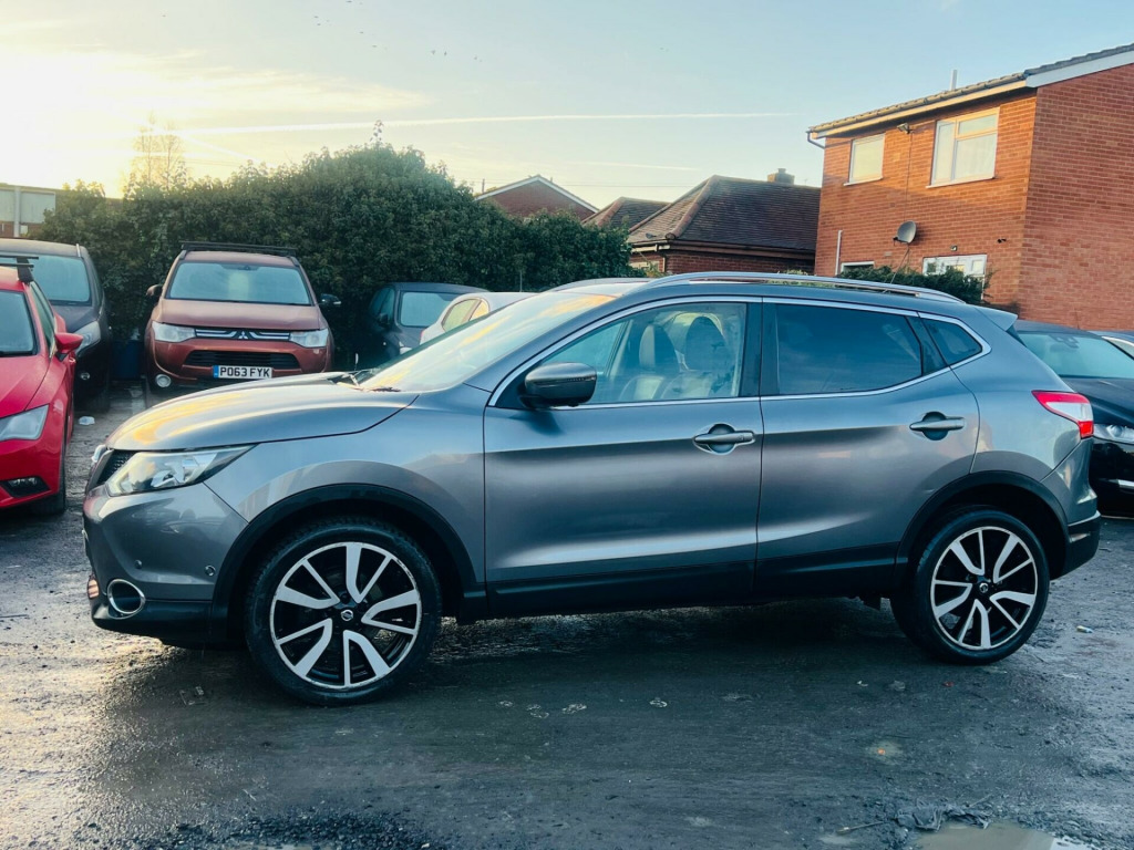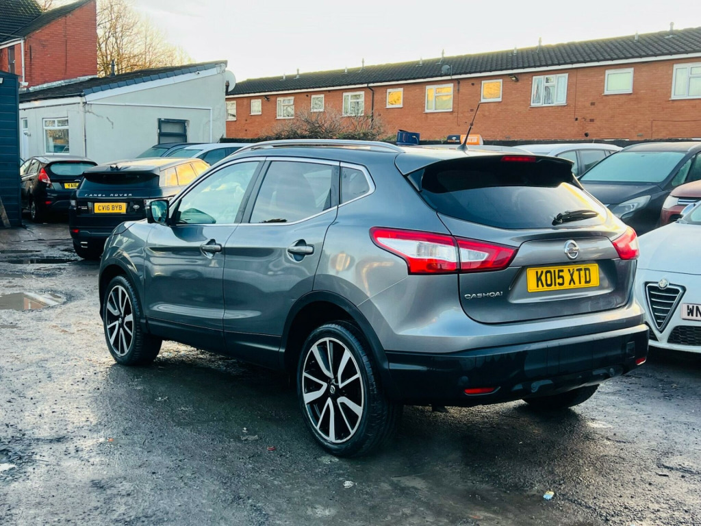 SAT NAVIGATION REVERSE CAMERA ZERO 6 CAR OVER 200 CARS IN STOCK JUST ARRIVED PART EXCHANGE AND DELIVER AVAILABLE LOW RATE FINANCE AVAILABLE 0 DEPOSIT FINANCE AVAILABLE This 2015 Nissan Qashqai dCi Tekna presents an exceptional opportunity with its remarkably low mileage of just 50,160 miles. As a Euro 6 compliant model, it features a 1.6 litre diesel engine and is equipped with advanced technology including Bi-LED headlights, front and rear parking sensors, and a 360 degree Around View Monitor for effortless manoeuvring. The Tekna trim also includes Blind Spot Warning, enhancing safety and driver awareness on every journey.This Qashqai stands out with its impressive fuel economy, achieving a highlight of 58 miles per gallon, which indicates its efficiency compared to other vehicles in its class. Furthermore, its low insurance group and low CO2 emissions highlight its cost effectiveness and environmental consideration, making it a sensible and appealing choice for many drivers. 19in Alloy Wheels - 5-Spoke, 6 Speakers, 60-40 Split Rear Folding Seats, ABS - Anti Lock Brakes, AUX-In Socket, Airbag - Driver, Airbag - Passenger, Airbags - Curtain, Airbags - Side, Alarm, Armrest - Rear, Around View Monitor - 360 Bird-View, Auto Dimming Rear View Mirror, Auto Rain Sensing Wipers, Black Honeycomb Front Grille, Blind Spot Warning, Body Coloured Handles, Brake Assist, Bumpers - Body Coloured, Chrome Glass Surround, Climate Control - Dual Zone, Colour Side Camera, Cruise Control with Speed Limiter, DAB Radio, Door Mirrors - Body Coloured, Door Mirrors - Power Fold and Heated, Driver Attention Alert, Driver Seat Height Adjustment, EBD - Electronic Brakeforce Distribution, ESP - Electronic Stability Programme, Electric Speed-Sensitive Power Steering, Fatigue Alert, Front Armrest, Front Collision Avoidance, Front Fog Lights, Front and Rear Electric Windows, Head Restraints - Active Front, Head Restraints - Rear, Headlights - Auto, Headlights - Auto High-Low Beam, Headlights - Automatic Levelling, Headlights - Bi-LED, Heated Windscreen, Hill Start Assist, ISOFIX Childseat Anchorage Points - Middle Row Outer Seats, Immobiliser, Intelligent Key, Intelligent Park Assist, Interior Ambient Lighting, LED Daytime Running Lights, Lane Departure Warning, Leather Steering Wheel, Luggage Board System, Lumbar Support, Moving Object Detection, Parking Sensor - Front, Pollen Filter, Puncture Repair Kit, Push Start-Stop Button, Radio-CD, Rear Cupholder, Rear Door Child Locks, Rear Parking Sensor, Rear Privacy Glass, Rear View Camera, Roof Rails - Satin, Safety Shield, Satellite Navigation - Nissan Connect, Seats - Drivers Electric Adjustment, Seats - Heated Front, Seats - Passengers Height Adjustment, Smart Vision Pack, Speed-Sensitive Autolock Function, Steering Wheel Mounted Audio Controls, TPMS - Tyre Pressure Monitoring System, Telephone - Bluetooth Integration, Tilt and Telescopic Adjustable Steering Wheel, Touch Screen 7in, Traction Control, Traffic Sign Recognition, Trip Computer, USB Port, e-PKB - Electric Parking Brake.
