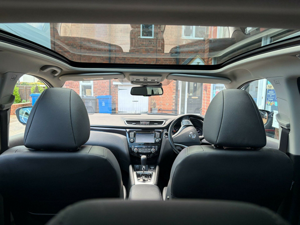 ** NATIONWIDE DELIVERY ** 51,000 MILES ** PANORAMIC GLASS ROOF ** SAT NAV ** SURROUND VIEW / 360 CAMERAS ** HEATED LEATHER ** DAB RADIO ** iPOD / USB / AUX ** BLUETOOTH ** PARKING SENSORS ** PRIVACY GLASS ** 19'' ALLOYS ** LED RUNNING LIGHTS ** LANE KEEP ASSIST ** FOLDING MIRRORS ** Presented in Midnight Black metallic with complimentary Black perforated full leather interior trim. Finished with Piano Black inserts. A beautiful example benefitting with service history (5 services). Service to be completed prior to completion of sale. Specification includes satellite navigation with full colour display, rear view camera with 360 degree / birds eye view, DAB radio / CD player, I-POD / USB / AUX interface, Bluetooth telephone, front & rear parking sensors, panoramic glass roof with electronic retractable sunshade, electronic driver seat adjustment, height adjustable driver & front passenger seats, heated seats, front centre armrest, dual zone climate control / air conditioning, reach / rake adjustable multi function steering wheel, cruise control with speed limiter function, lane keep assist (departure warning), auto headlamps with LED daytime running lights, auto wipers, electrically adjustable & folding door mirrors, auto dimming rear view mirror, electric windows, keyless entry with push button start, electronic park brake, multi airbags, ABS brakes, traction / vehicle stability control, engine stop / start technology, rear seat isofix, tailored carpet mats, remote central locking with alarm / immobiliser, privacy glass, front fog lamps and 19'' alloy wheels. Supplied with original Nissan owners wallet & owners / operators manuals. Buy with confidence from a long established dealership with fantastic reputation, feedback & reviews. in alloy wheels - 5-spoke, 3 x 3-point rear seatbelts with elr, 5in high definition full colour tft screen combimeter, 6 speakers, 60-40 split rear folding seats, aux socket for mp3 player, alarm, automatic folding door mirrors, automatic lights and wipers, black honeycomb front grille, bluetooth, body-coloured bumpers - handles and mirrors, cd radio, chrome glass surround, cruise control with speed limiter, drive computer, driver seat height adjustment, driver-passenger-side and curtain airbags, drivers side one-touch and anti-trap window, dual zone climate control air conditioning, esp abs ebd and brake assist, electric speed-sensitive power steering, executive pack, front centre console and armrest, front fog lamps with chrome ring, front seat belt height adjustment, front seat belts with load limiter and pretensioners, front and rear electric windows, head restraints - 3 rear, headlights - automatic levelling, headlights - bi-led, heat pack, height adjustable front head restraints, hill start assist, isofix child seat anchoring points, immobiliser, intelligent key, intelligent park assist, interior ambient lighting, led signature daytime running lights, leather steering wheel, luggage board system, nissan chassis controls, puncture repair kit, push start-stop button, rear door child locks, rear privacy glass, rear seat armrest with 2 cupholders, remote audio control, roof rails - satin silver, safety shield, seats - drivers lumbar support, seats - passengers height adjustment, selectable steering - normal or sport, smart vision pack, tpms - tyre pressure monitoring system, tech pack, tilt and telescopic adjustable steering wheel, e-pkb - electric parking brake, panoramic sunroof with one touch shade, leather - graphite
