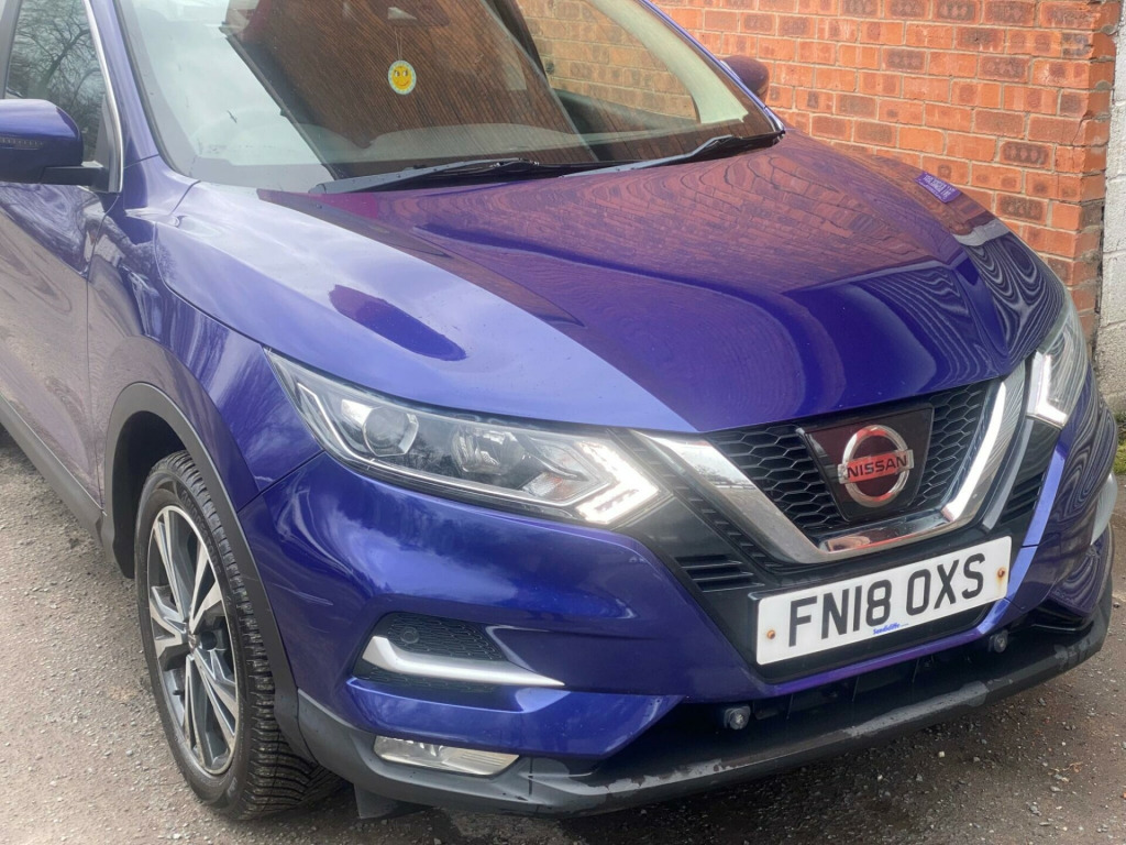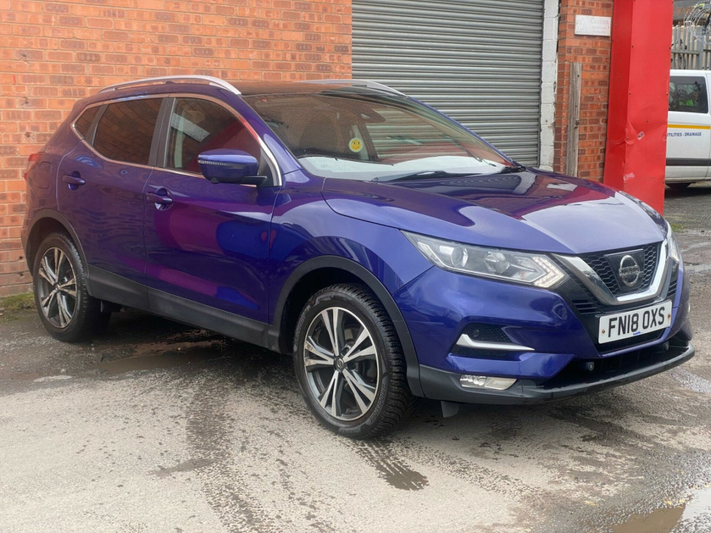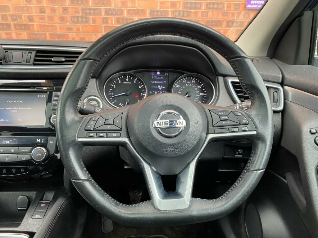 1 OWNER FROM NEW2 KEYSSERVICE HISTORYEURO 6ULEZ COMPLIANTSERVICE INTERVALS AT 13K, 33K, 48K, 65K, 79K, 91K, 102KEquipment:Navigation SystemNavigation SD CardClimate ControlParking Sensor(s)18'' Alloy WheelsPrivacy GlassPanoramic RoofThis 2018 Nissan Qashqai DIG-T N-Connecta has been cherished by just one owner since new. This popular family SUV features a 1.6 litre petrol engine and meets Euro 6 emissions standards. It comes equipped with the Smart Vision Pack, which includes front and rear parking sensors, and the Tech Pack, adding a rear parking camera to aid manoeuvrability. For your connectivity needs, it also benefits from Bluetooth.This Qashqai offers excellent running costs, achieving an impressive 49 miles per gallon. Its low CO2 emissions and low insurance group rating further contribute to its affordability. For drivers seeking a responsive experience, this model accelerates from 0 to 62 miles per hour in just 8.9 seconds, demonstrating a strong performance that sets it apart from many other vehicles in its class. in alloy wheels - bi-colour, 3 height adjustable rear headrests, 6 speakers, 60-40 split rear folding seats, am-fm radio and cd player, aux socket, advanced drive assist display - 5in tft coloured screen, ambient lighting centre console, anti dazzle rear view mirror, auto wipers, autohold function - stand still assist, bluetooth, body coloured door mirrors, body coloured handles, boot light, carbon graphite dash trim, chrome glass surround, chrome interior door handles, cruise control with speed limiter, dab digital radio, daytime running lights dip function when turn signal applied, driver seat height adjustment, driver-passenger-side and curtain airbags, drivers seat with manual lumbar support, dual zone climate control air conditioning, esp abs ebd and brake assist, electric auto-folding door mirrors, electric parking brake, electric speed-sensitive power steering, front 12v power sockets x2, front centre console and armrest, front seat belts with load limiter and pretensioners, front and rear door pockets with drink holders, front and rear electric windows, front and rear seatbelt warning, halogen headlamps, headlights - high beam assist, height adjustable front head restraints, height adjustable front seatbelts, hill start assist, isofix child seat anchoring points - rear x2, intelligent around view monitor, intelligent auto headlight, intelligent emergency braking, intelligent key, interior ambient lighting, led signature daytime running lights, led turn indicator on door mirrors, lane departure warning, leather d shaped steering wheel, leather gear lever, leather knee pad, luggage board system, matt silver roof rails, monoform front seats with plastic backboard, nissan anti theft system immobiliser, nissan chassis controls, nissanconnect evo touchscreen navigation and entertainment system, one touch 4 x auto windows with illuminated switches, outside temperature sensor, parcel shelf - stow function under luggage board, parking sensor - front, passenger airbag deactivation system, passengers seat with manual lumbar support, pollen filter, privacy glass, puncture repair kit, rear parking sensors, rear roof spoiler, rear view camera, rear wiper with reverse link, remote central locking, seats - passengers height adjustment, selectable steering - normal or sport, shark fin antenna, smart vision pack, smartphone app integration, start push button, steering wheel mounted audio controls, synthetic leather wrapped door handle with contrasting stitching, tpms - tyre pressure monitoring system, tech pack, thatcham category 1 alarm, tilt and telescopic adjustable steering wheel, traffic sign recognition, trip computer, usb port, underbody vortex generators