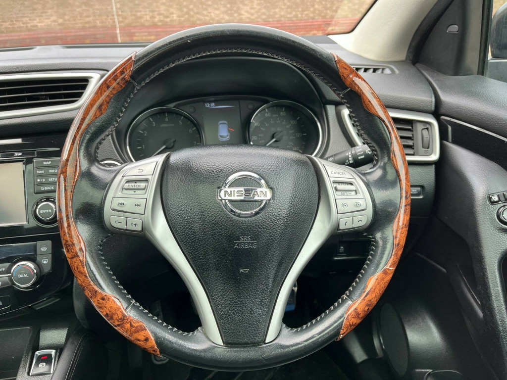 This 2015 Nissan Qashqai DIG-T Tekna is a prime example of a well maintained vehicle, offering a blend of style and practicality. Powered by a 1.6 litre petrol engine, this Euro 6 compliant model boasts impressive efficiency with low CO2 emissions. The Tekna trim level ensures a premium experience, featuring desirable additions such as dual zone climate control for personalised comfort, and bi LED headlights for enhanced visibility. Navigating tight spaces is made easier with front parking sensors, while the intelligent key system provides convenient keyless entry. Automatic headlights further add to the ease of driving.The Qashqai DIG-T Tekna stands out with its excellent performance, achieving 0 to 62 miles per hour in just 9.1 seconds, demonstrating its responsive acceleration. This vehicle also benefits from a low insurance group, making it an economical choice for many drivers. These highlights, combined with its efficient engine and advanced features, position this Nissan Qashqai as a compelling option for those seeking a capable and cost effective family car.. 19in Alloy Wheels - 5-Spoke, 6 Speakers, 60-40 Split Rear Folding Seats, ABS - Anti Lock Brakes, AUX-In Socket, Airbag - Driver, Airbag - Passenger, Airbags - Curtain, Airbags - Side, Alarm, Armrest - Rear, Around View Monitor - 360 Bird-View, Auto Dimming Rear View Mirror, Auto Rain Sensing Wipers, Black Honeycomb Front Grille, Blind Spot Warning, Body Coloured Handles, Brake Assist, Bumpers - Body Coloured, Chrome Glass Surround, Climate Control - Dual Zone, Colour Side Camera, Cruise Control with Speed Limiter, DAB Radio, Door Mirrors - Body Coloured, Door Mirrors - Power Fold and Heated, Driver Attention Alert, Driver Seat Height Adjustment, EBD - Electronic Brakeforce Distribution, ESP - Electronic Stability Programme, Electric Speed-Sensitive Power Steering, Fatigue Alert, Front Armrest, Front Collision Avoidance, Front Fog Lights, Front and Rear Electric Windows, Head Restraints - Active Front, Head Restraints - Rear, Headlights - Auto, Headlights - Auto High-Low Beam, Headlights - Automatic Levelling, Headlights - Bi-LED, Heated Windscreen, Hill Start Assist, ISOFIX Childseat Anchorage Points - Middle Row Outer Seats, Immobiliser, Intelligent Key, Intelligent Park Assist, Interior Ambient Lighting, LED Daytime Running Lights, Lane Departure Warning, Leather Gear Knob, Leather Steering Wheel, Luggage Board System, Lumbar Support, Moving Object Detection, Parking Sensor - Front, Pollen Filter, Puncture Repair Kit, Push Start-Stop Button, Radio-CD, Rear Cupholder, Rear Door Child Locks, Rear Parking Sensor, Rear Privacy Glass, Rear View Camera, Roof Rails, Safety Shield, Satellite Navigation - Nissan Connect, Seats - Drivers Electric Adjustment, Seats - Heated Front, Smart Vision Pack, Speed-Sensitive Autolock Function, Steering Wheel Mounted Audio Controls, TPMS - Tyre Pressure Monitoring System, Telephone - Bluetooth Integration, Tilt and Telescopic Adjustable Steering Wheel, Touch Screen 7in, Traction Control, Traffic Sign Recognition, Trip Computer, USB Port, e-PKB - Electric Parking Brake.