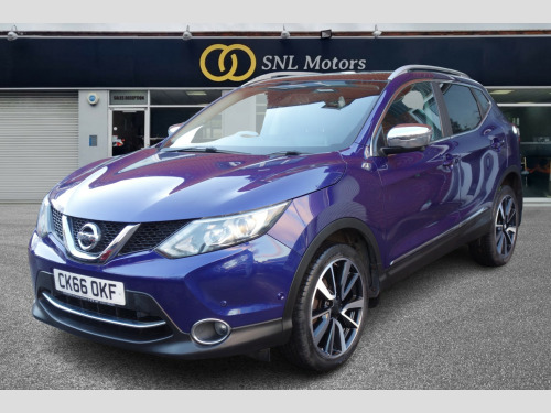 A stunning example of 2016 Nissan Qashqai DIG-T Tekna.This popular family SUV features a 1.6 litre petrol engine and meets Euro 6 emissions standards - ULEZ compliant. The Tekna trim level comes equipped with the desirable Tech Pack, offering Bluetooth connectivity and a 360 degree camera for effortless parking assistance. Comfort is further enhanced by dual zone climate control air conditioning and a Heat Pack, which includes heated seats, also part of the Executive Pack. Accessing the vehicle is made simple with Intelligent Key and keyless entry. It also has Panoramic roof, Heated seats, Navigation system and many more features. , This Qashqai offers several highlights that set it apart. Its impressive fuel economy of 47 miles per gallon indicates it is more economical than many similar vehicles. Furthermore, its low insurance group and low CO2 emissions suggest lower running costs. For those who appreciate performance, the 0 to 62 miles per hour acceleration in just 9.1 seconds demonstrates a responsive driving experience. , All vehicles are thoroughly checked before sale and sold with a fresh 12 months MOT and service. 3 months comprehensive warranty and 12 months AA breakdown cover is included as standard. Extended warranty and Finance packages available. Part exchange welcome. Please contact SNL Motors for further information and to arrange a viewing.