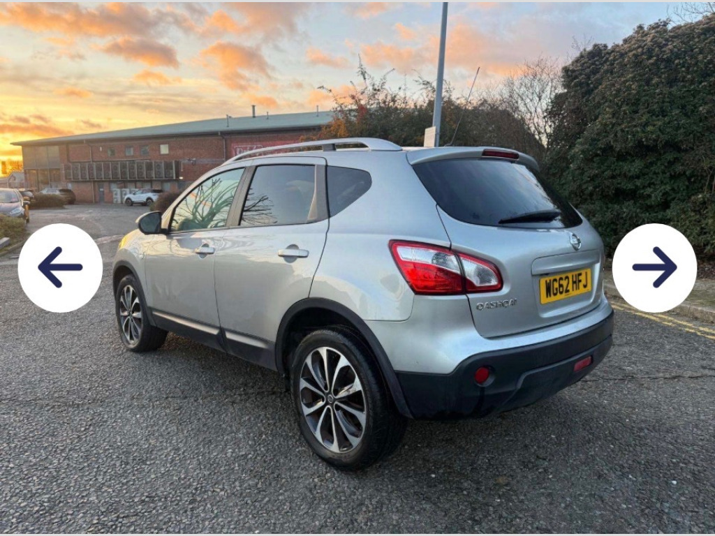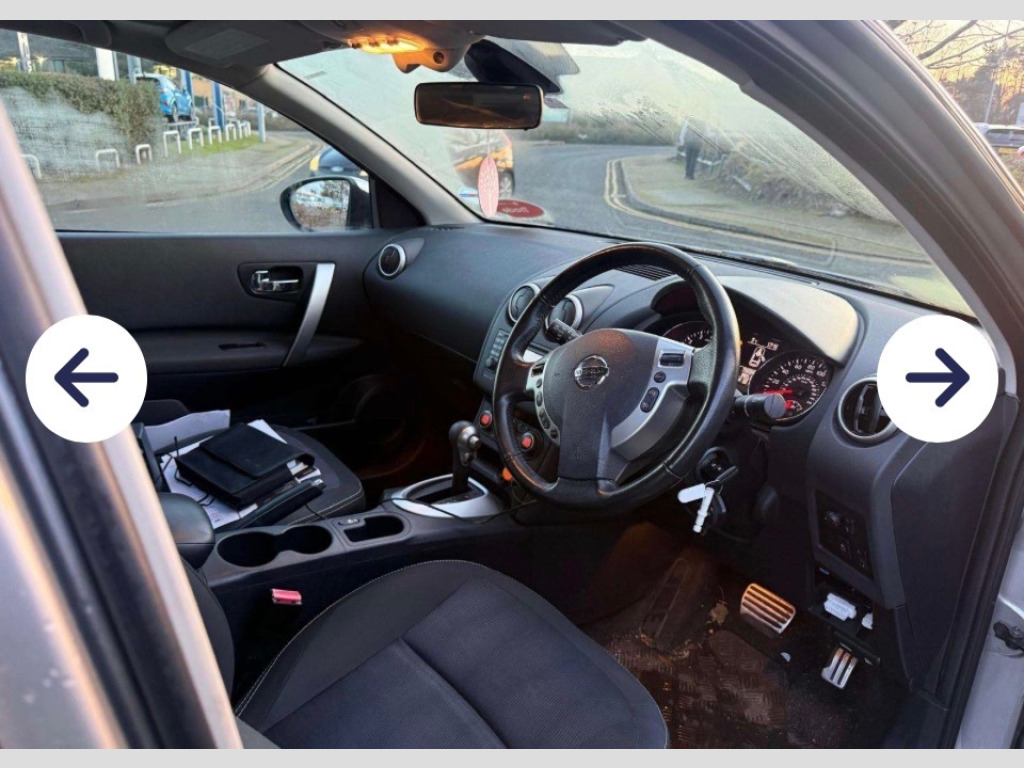 AUTOMATIC YES AUTOMATIC LOW MILEAGE PETROL 2013/62 NISSAN QASHQAI 1.6 N-TEC PETROL AUTOMATIC SUV , FINISHED IN SILVER WITH UNMARKED BLACK CLOTH INTERIOR WITH PANORAMIC ROOF AND BEING AN N-TEC MODEL THESE HAVE LOVELY SPECS PLUS THIS ONE IS ONLY 2 OWNERS AND HAS A FULL SERVICE HISTORY BY NISSAN AND HAS REALLY BEEN VERY WELL LOOKED AFTER ALSO ULEZ FREE , WE HIGHLY RECOMMEND THIS FINE EXAMPLE AND WILL COME WITH A NEW MOT , NEXT SERVICE DUE PLUS 12 MONTHS WARRANTY ALL INCLUDED SO GET THIS RESERVED ASAP AS AGAIN THESE LOW MILEAGE AUTOMATICS ARE HARD TO GET !!RAN CARS AND COMMERCIALS LIMITED v socket - front, aux-in socket, cd radio, nissan connect 5in touch-screen navigation system, usb - ipod connectivity, 18in alloy wheels - onyx, door mirrors - electric adjustment and heated, electric folding door mirrors, electric windows - front and rear, panoramic glass roof, rear privacy glass, roof rails, abs - anti lock brakes, active front headrests with height adjustment, airbag - driver, airbag - front passenger, airbags - curtain, airbags - side, alarm - ultrasonic, brake assist, ebd - electronic brakeforce distribution, esp - electronic stability programme, engine immobiliser, isofix child seat anchoring points, rear door child locks, remote central locking with superlocking, traction control, armrest - rear, auto rain sensing wipers, driver seat height adjustment, dual zone climate control, front armrest, front cupholders x2, glovebox with cooler function, head restraints - 3 rear, leather steering wheel, pollen filter, rear cupholder, seats - 60-40 split foldable rear bench, seats - drivers lumbar support, steering wheel mounted audio controls, tilt and telescopic adjustable steering wheel, around view monitor - 360 bird-view, colour front-rear and passenger side cameras, cruise control with speed limiter, drive computer, electric speed-sensitive power steering, power assisted steering, rear parking sensors, reversing camera, automatic lighting system, front fog lights