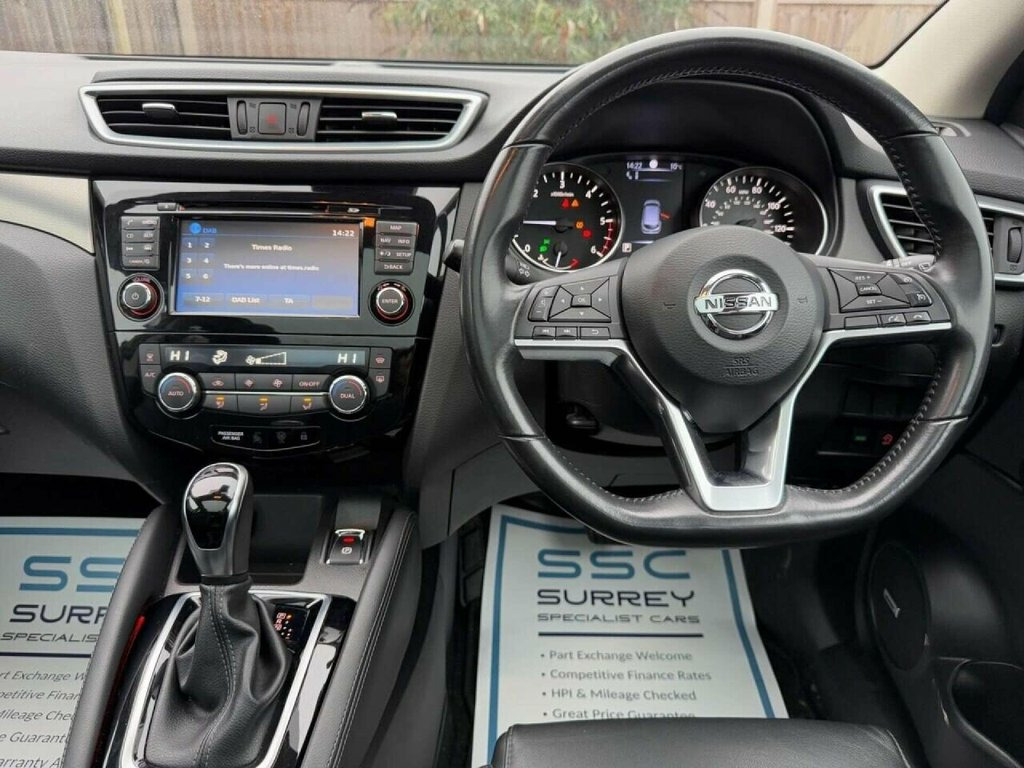 Surrey Specialist Cars are proud to present our lovely Nissan Qashqai Tekna DCI. This amazing car comes with Full Service History, finished in stunning metallic red with half leather seats. The car has a Long MOT until December 2025 so it is ready to go. The 1.6L Diesel engine offers superb economy at over 65 MPG on combined cycle. Features Include Multifunction Steering Wheel, Trip Computer, Satellite Navigation, Heated Seats, Parking Camera, Panoramic Roof, Cruise Control, Speed Limiter, Stereo/Phone Control, FM/DAB Radio, Bluetooth Audio, USB Input, AUX Input, CD Player, Dual Zone Climate Control, 12V Charging Socket, Electronic Hand Brake, Auto Hold System, Automatic Gearbox, Electric Windows, 19 Inch Alloy Wheels and two Remote Control Keys to name a few. We prepare all of our cars to the highest standards, which are available by Click & Collect, we can also arrange delivery on request. All cars are HPI clear and a full history report is provided with every car. We welcome any inspection and viewing is highly recommended. All cars are available with our AA warranty starting from just ?150 for 3 months. Debit and credit card facilities are available and we offer competitive finance packages. If you have any questions or would like to view any of our cars give us a call or drop us a message on whatsapp 01483 363 144 to arrange an appointment with one of our team. We also offer full bespoke walkaround videos on request. We are always on the lookout for high quality stock, 19in Alloy Wheels, 3 Height Adjustable Rear Headrests, 60-40 Split Rear Folding Seats, AM-FM Radio and CD Player, AUX Socket, Adaptive Front Lighting System, Advanced Drive Assist Display - 5in TFT , Ambient Lighting Centre Console, Anti Dazzle Rear View Mirror, Auto Wipers, Bluetooth, Body Coloured Door Mirrors, Body Coloured Handles, Boot Light, Bose 8 Speaker Premium Audio System, Carbon Graphite Dash Trim, Chrome Glass Surround, Chrome Interior Door Handles, Cruise Control with Speed Limiter, DAB Digital Radio, Daytime Running Lights Dip Function When, Driver Seat Height Adjustment, Driver-Passenger-Side and Curtain Airbag, Drivers Seat with Manual Lumbar Support, Dual Zone Climate Contr
