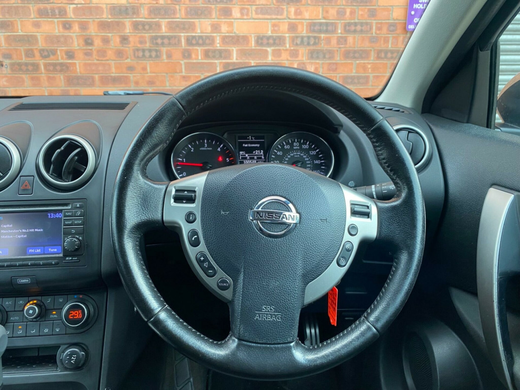LONG MOT+FULL SERVICE HISTORYSERVICE HISTORY 8K, 16K, 23K, 49K, 84K, 93K, 99KThis 2012 Nissan Qashqai dCi n-tec+ is a well equipped four wheel drive model offering a comfortable and capable driving experience. Powered by a 2.0 litre diesel engine, this n-tec+ variant comes with a host of desirable features. These include heated front seats for those colder mornings, an Around View Monitor with a 360 degree camera to aid parking, and Intelligent Key with keyless entry for ultimate convenience. You'll also appreciate the Dual Zone Climate Control, ensuring comfort for both driver and passengers, and Xenon Clear Lens Headlights for improved visibility.The Qashqai n-tec+ stands out with its advanced technology and practical features. The four wheel drive system provides enhanced traction and stability, making it a versatile choice for various road conditions. The inclusion of the Around View Monitor is a significant advantage, offering unparalleled visibility around the vehicle and simplifying parking manoeuvres. Combined with the comfort of heated seats and the ease of keyless entry, this Nissan Qashqai offers a superior level of refinement and usability compared to many other vehicles in its class. v socket - front, 18in alloy wheels - onyx, abs - anti lock brakes, aux-in socket, active front headrests with height adjustment, airbag - driver, airbag - front passenger, airbags - curtain, airbags - side, alarm - ultrasonic, armrest - rear, around view monitor - 360 bird-view, auto rain sensing wipers, automatic lighting system, brake assist, cd radio, colour front-rear and passenger side cameras, cruise control with speed limiter, door mirrors - electric adjustment and heated, drive computer, driver seat height adjustment, dual zone climate control, ebd - electronic brakeforce distribution, esp - electronic stability programme, electric folding door mirrors, electric speed-sensitive power steering, electric windows - front and rear, engine immobiliser, front armrest, front cupholders x2, front fog lights, glovebox with cooler function, head restraints - 3 rear, headlights - pop up washers, isofix child seat anchoring points, intelligent key, leather steering wheel, nissan connect 5in touch-screen navigation system, panoramic glass roof, pollen filter, power assisted steering, rear cupholder, rear door child locks, rear parking sensors, rear privacy glass, remote central locking with superlocking, reversing camera, roof rails, seats - 60-40 split foldable rear bench, seats - drivers lumbar support, seats - heated front, steering wheel mounted audio controls, tilt and telescopic adjustable steering wheel, traction control, usb - ipod connectivity, xenon clear lens headlights