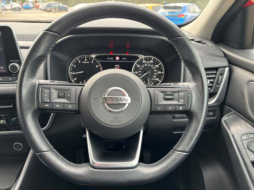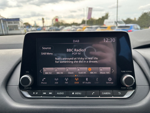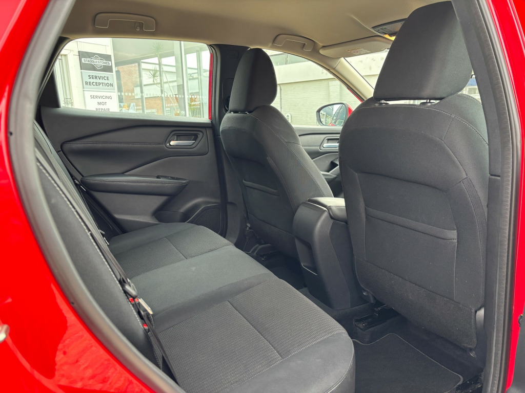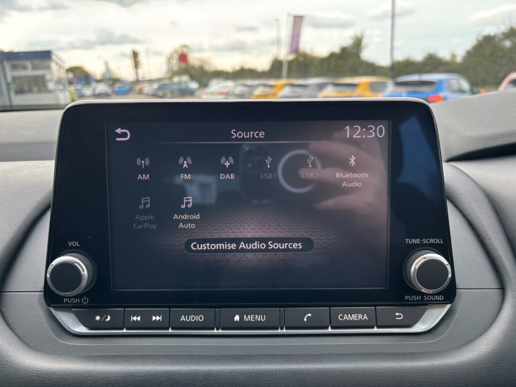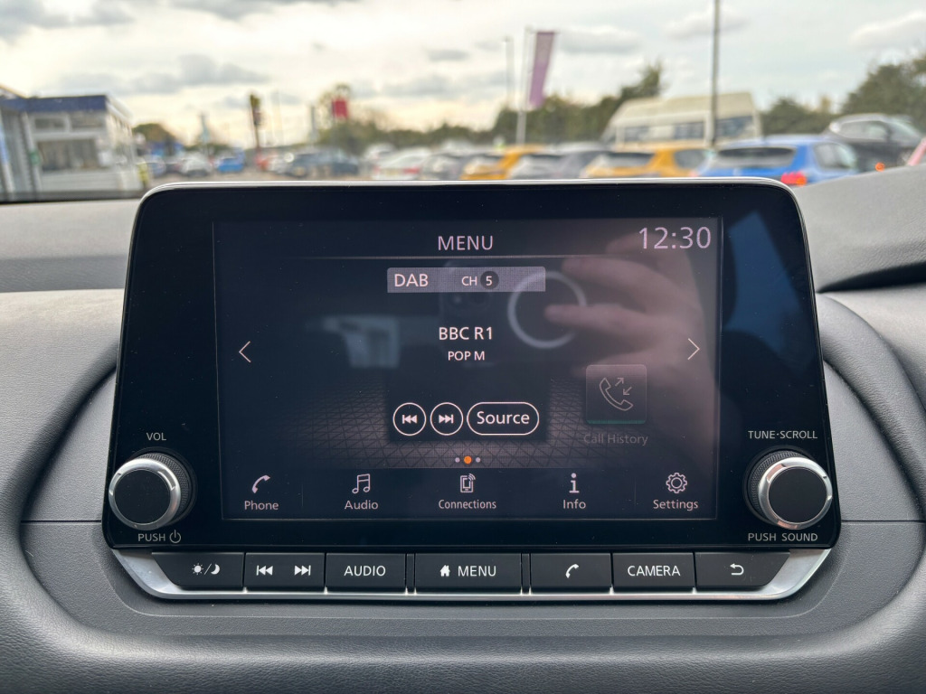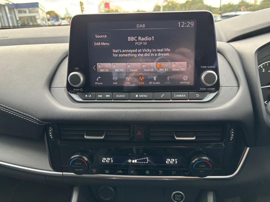 v power sockets in dash and luggage space, 6 speakers, 7in high definition full colour tft screen combimeter, am-fm audio system with dab, bluetooth with audio streaming, emergency and breakdown call, front usb connections - type a and type c, nissan connect 8in touchscreen infotainment system, shark fin antenna, wired android auto, wired apple carplay, 17in alloy wheels, body coloured handles, body coloured mirror caps, body side moulding, chrome side window finisher, door mirror - electrically adjustable - heated - auto folding with led turn indicator, one touch front and rear electric windows with remote opening-closing, partially body coloured bumpers, puncture repair kit, rear roof spoiler, splash free wipers, 3 rear headrests, 60-40 split rear folding seats, auto dimming rear view mirror, automatic dual zone climate control with pollen filter, chrome interior door handles, driver seat - 2-way electric lumbar, driver and passenger sun visor with illuminated vanity mirror, engine start button, front centre console and armrest, front cupholders x2, front door with bottle holders, height adjustable driver seat, height adjustable front headrests, leather shift knob, luggage space lighting, multifunctional steering wheel, passenger seat back pockets, rain sensing wipers, rear door with bottle holders, rear seat armrest with 2 cupholders, seats - passengers height adjustment, synthetic leather steering wheel., three blink turn signal, tilt and telescopic adjustable steering wheel, 3 x 3-point rear seatbelts, abs with ebd and brake assist, auto hold function, auto rear wiper when reversing, curtain airbags, driver and passenger airbags, driver-passenger and rear seatbelt reminder, electric parking brake, engine immobiliser, front seat belts with load limiter and pretensioners, front seatbelt height adjustment, hill start assist, intelligent front emergency braking with pedestrian recognition and cyclist recognition and junction assist, intelligent key, intelligent lane intervention, intelligent rear automatic braking, rear cross traffic alert, rear door child locks, remote central locking with deadlocking, thatcham alarm system, two rear isofix child seat anchorage point with top tether, vdc - vehicle dynamic control, active brake limited slip, blind spot warning, drive modes - sport-normal-eco, electric speed-sensitive power steering, intelligent blind spot intervention, intelligent cruise control, intelligent driver alertness, intelligent forward collision warning, lane departure prevention, lane departure warning, maximum speed limiter, rear parking sensors, rear view camera, tpms - tyre pressure monitoring system, traffic sign recognition, trip computer, follow me home headlights, headlights - high beam assist, headlights - led, intelligent auto headlight, led daytime running lights, led rear lights, rear reversing light - bulb