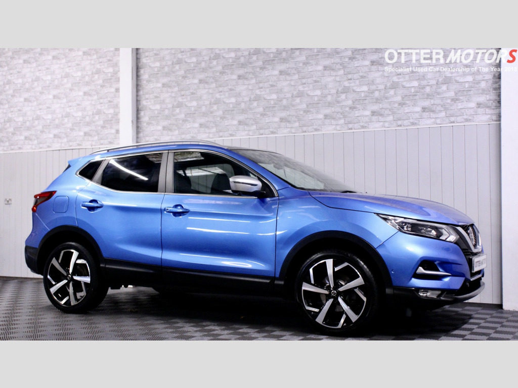 -???? OVER 300 5* REVIEWS ON AUTOTRADER + GOOGLE, -???? SPECIALIST USED CAR DEALERSHIP OF THE YEAR 2018, -???? SHORTLISTED USED CAR DEALERSHIP OF THE YEAR 2019, -???? AWARD WINNING SALES TEAM WITH THE FUTURE STAR AWARD 2020 FROM USED CAR MAGAZINE, -???? SHORTLISTED USED CAR DEALER OF THE YEAR 2022, -???? SHORTLISTED INDEPENDENT DEALER OF THE YEAR 2023, , - NEW 12 MONTH MOT, - FRESHLY SERVICED, - 6 MONTH NATIONWIDE WARRANTY, - BUY IN STORE OR ONLINE, - DELIVERY AVAILABLE, - APPLY FOR FINANCE ONLINE USING THE CALCULATOR BELOW, - BESPOKE VIDEO PRESENTATION UPON REQUEST, - MULTI-AWARD WINNING COMPANY AND STAFF, , Key Features;, , **VIVID BLUE METALLIC PAINTWORK**19 TWO-TONE ALLOY WHEELS**FRONT AND REAR PARKING SENSORS**ROOF RAILS**SILVER MIRROR CAPS**TINTED REAR WINDOWS**3D QUILTED BLACK LEATHER UPHOLSTERY**PANORAMIC SUNROOF**PUSH BUTTON START**MULTIFUNCTIONAL STEERING WHEEL**BLUETOOTH INTERFACE**BOSE SOUND SYSTEM**SMART PHONE INTERFACE**AUTOMATIC HEADLIGHTS AND WIPERS**SERVICE HISTORY**, , Description;, , Finished in the stylish Vivid Blue and equipped with an exceptional spec this beautiful Nissan Quashqai Tekna+ is a great example of a modern SUV! With a range of modern spec such as Smart Phone Interface, Front And Rear Parking Sensors, and Quilted Black Leather the car offers excellent comfort for all its occupants and ensures all the modern tech is taken care of! Coming with a great service history and being supplied with a fresh service and 12 month MOT this car stands as a wonderful and stylish example! (WG68 PLF), , Every vehicle we sell undergoes rigorous preparations including a Fresh Service, 12 Month MOT, and professional valet & detail to ensure our high standards are met! With over 20 years specialist experience, weve built a trusted reputation across the Southwest and Nationally! Our showroom is conveniently located near Exeter (EX11 1RE), just 10 minutes from the M5, however we also offer nationwide delivery, bringing your next car straight to your door. , IF YOU HAVE ANY QUESTIONS PLEASE CONTACT US ON 01404 812608 / 07445 137231 / [email protected] / WHATSAPP. VISIT OUR FAQ PAGE FOR FREQUENTLY ASKED QUESTIONS.