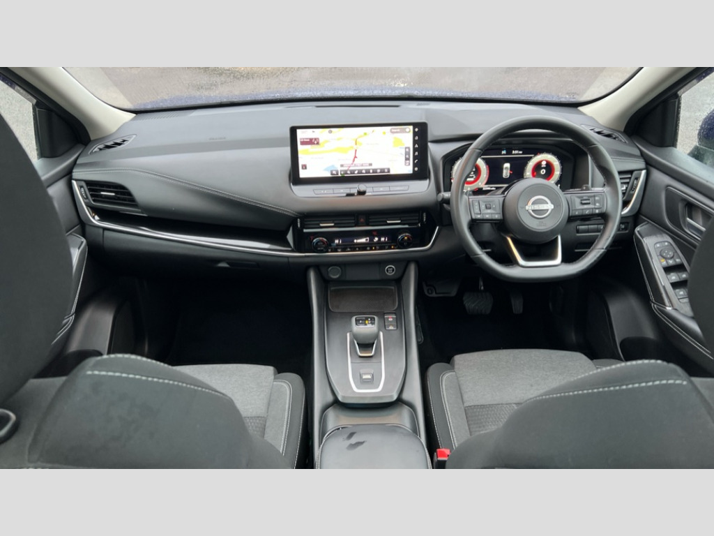 Nissan Qashqai 1.3 DiG-T MH 158 N-Connecta 5dr Xtronic Android auto/Apple CarPlay (Wired), Blind spot warning, Drive modes (sport, normal, eco), Electric speed sensitive power steering, Emergency and breakdown call, Full Digital 12.3" TFT Digital Combimeter, Google maps services - search, weather, 3D maps and Google street view, Idle stop/start system, Intelligent around view monitor, Intelligent Cruise control (ICC), Intelligent driver alert system, Intelligent forward collision warning, Intelligent lane intervention, Lane departure prevention, Lane departure warning system, Maximum speed limiter, Moving object detection, Nissan connect 12.3 inch touchscreen infotainment system, Nissan connect navigation, Push button starter, Rear cross traffic alert, Rear parking sensors, Rear view camera, Remote control services - door locks, lights, horn and car locator, Telematics - notifications and connectivity services, TomTom live traffic services, Traffic sign recognition with legal speed adjustment, Trip computer, Virtual personal assistant and firmware over the air capability, Wireless apple carplay, 6 speakers, AM/FM audio system with DAB, Bluetooth audio streaming, Front USB connections (Type-A and Type-C), Rear USB charging only ports (Type-A and Type-C), Auto dimming rear view mirror, Auto rear wiper when reversing, Automatic hazard signal with emergency stop signal, Body colour mirror caps, Body coloured door handles, Bodyside mouldings, Chrome side window finisher, Door handle with button, Electric auto folding door mirrors, Electrically adjustable and heated door mirrors with LED turn indicator, Follow me home headlights, High beam assist, Intelligent auto headlights, LED 3rd brake light, LED daytime running lights, LED Headlights, LED rear lights, One touch front and rear electric windows with remote opening and closing, Partially body coloured bumpers, Privacy glass, Rear bumper with graphite insert, Rear reversing light (bulb lighting), Rear roof spoiler, Rear side wing doors, Rear styling plate, Shark fin antenna, Splash free rain sensing wipers, Super UV and infrared cut glass, Three blink turn signal, 12v power socket in dashboard and luggage, 2x Rear coat hooks, 3 bench rear seats in 2nd row, 3 rear headrests, 4 folding assist grip, 6 Luggage hooks - 4 on floor, 2 on side, 6-way manually adjustable driver's seat, 60/40 split folding rear seat bench, Ambient lighting around centre console, Centre console storage tray, Chrome interior door handles, Cloth monoform upholstery, Driver and front passenger sunvisors with illuminated vanity mirrors, Driver seat back pocket, Dual zone automatic climate control with pollen filter, Electrically adjustable lumbar support for driver, Front and rear door storage, Front centre console and armrest, Front cupholders x 2, Front door with bottle holders, Glovebox with light, Hard trunk cover, Height adjustable driver's seat, Height adjustable front headrests, Height adjustable passenger seat, Luggage board system, Luggage space lighting, Manually adjustable passenger (slide recline + lifter), Multifunction steering wheel, Passenger seat back pocket, Rear armrest with 2 cupholders, Rear door bottle holders, Single front passenger seat, Soft PVC kneepad, Steering wheel gearshift paddles, Steering wheel switches, Sunglasses holder, Tilt/telescopic adjustable steering wheel, Two rear isofix child seat anchorage points with top tether, Welcome light and console tray ambient lighting, 3x3 point rear seatbelt pretensioners + load limiters, ABS with EBD and brake assist, Active brake limited slip, Auto hold function, Child locks on rear doors, Curtain and front side, far side airbags, Driver and passenger airbags, Driver, passenger and 2nd row rear seat belt reminder, Electronic parking brake, Front seatbelt pretensioners + load limiters, Height adjustable front seatbelts, Hill start assist, Intelligent blind spot intervention, Intelligent front emergency braking with pedestrian, cyclist recognition and junction assist, Intelligent rear automatic braking, Tyre pressure monitoring system, Vehicle dynamic control, Capless fuel filler, Engine immobiliser, Intelligent Key, Remote central door locking with deadlocking, Thatcham Cat.1 alarm, Interior instrumental panel B finisher, 18" Diamond cut alloy wheels, Tyre puncture repair kit