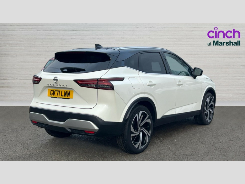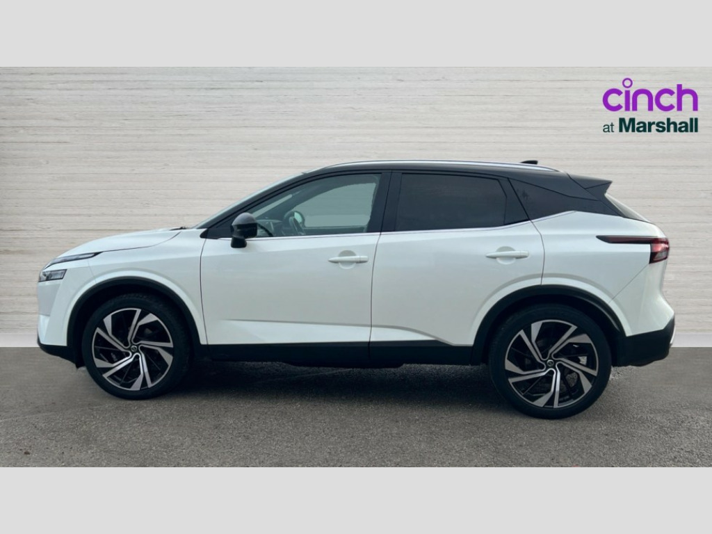 Nissan Qashqai 1.3 DiG-T MH 158 Tekna+ 5dr Xtronic Blind spot warning, Drive modes (sport, normal, eco), Electric speed sensitive power steering, Emergency and breakdown call, Front and rear parking sensors, Full Digital 12.3" TFT Digital Combimeter, Hands free power tailgate, Idle stop/start system, Intelligent Cruise control (ICC), Intelligent driver alert system, Intelligent forward collision warning, Intelligent lane intervention, Lane departure prevention, Lane departure warning system, Moving object detection, Push button starter, Rear cross traffic alert, Traffic sign recognition with legal speed adjustment, Trip computer, 10 Bose speakers - 2 tweeters, 6 high and medium frequency door speakers and 2 in subwoofer, AM/FM audio system with DAB, Bluetooth audio streaming, Bose acoustimass bass box, Digital amplifier, Front USB connections (Type-A and Type-C), Rear USB charging only ports (Type-A and Type-C), Auto dimming rear view mirror, Auto rear wiper when reversing, Body colour mirror caps, Body coloured door handles, Bodyside mouldings, Chrome side window finisher, Door mirror memory, Electric auto folding door mirrors, Electrically adjustable and heated door mirrors with LED turn indicator, Fixed panoramic glass roof with electric sunshade, Follow me home headlights, Intelligent auto headlights, LED daytime running lights, LED signature rear lights, One touch front and rear electric windows with remote opening and closing, Privacy glass, Rear roof spoiler, Rear styling plate, Reverse tilting door mirrors, Roof rails, Shark fin antenna, Splash free rain sensing wipers, Super UV and infrared cut glass, Three blink turn signal, 12v power socket in dashboard and luggage, 2x Rear coat hooks, 3 rear headrests, 4 grab handles, 6 Luggage hooks - 4 on floor, 2 on side, 60/40 split folding rear seat, 8 way electric adjustable driver seat with massage and memory function, 8 way electric adjustable passenger seat with massage and memory function, Ambient lighting around centre console, Ambient lighting in front doors, Centre console storage tray, Chrome interior door handles, Dark headlining, Driver and front passenger sunvisors with illuminated vanity mirrors, Driver seat back pocket, Dual zone automatic climate control with pollen filter, Electric 4-way lumbar support for drivers seat, Electric adjustable 4 way lumbar support for passenger seat, Front centre console and armrest, Front cupholder, Front door with bottle holders, Glovebox with light, Hard trunk cover, Height adjustable front headrests, Leather steering wheel, Luggage board system, Luggage space lighting, Multifunction steering wheel, Passenger seat back pocket, Quilted premium leather upholstery, Rear armrest with 2 cupholders, Rear door bottle holders, Soft PVC kneepad, Steering wheel gearshift paddles, Steering wheel switches, Tilt/telescopic adjustable steering wheel, Two rear isofix child seat anchorage points with top tether, Welcome light and doors with console tray ambient lighting, Heat pack - Qashqai, Tech Pack (ProPILOT + HUD), 3x3 point rear seatbelt pretensioners + load limiters, ABS, ESP, EBD and brake assist, Active brake limited slip, Auto hold function, Child locks on rear doors, Curtain and front side, far side airbags, Driver and passenger airbags, Driver, passenger and 2nd row rear seat belt reminder, Electronic parking brake, Front seatbelt pretensioners + load limiters, Height adjustable front seatbelts, Hill start assist, Intelligent blind spot intervention, Intelligent front emergency braking with pedestrian, cyclist recognition and junction assist, Intelligent rear automatic braking, Tyre pressure monitoring system, Vehicle dynamic control, Advance intelligent key with driver memory storage (seats, mirrors, audio), Engine immobiliser, Remote central door locking with deadlocking, Thatcham Cat.1 alarm, 20" Alloy wheels