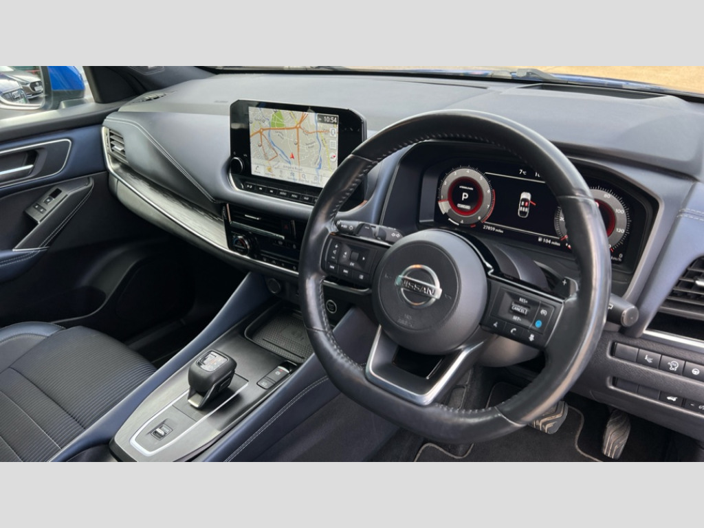 Nissan Qashqai 1.3 DiG-T MH 158 Tekna 5dr Xtronic Blind spot warning, Drive modes (sport, normal, eco), Electric speed sensitive power steering, Emergency and breakdown call, Front and rear parking sensors, Full Digital 12.3" TFT Digital Combimeter, Google maps services - search, weather, 3D maps and Google street view, Hands free power tailgate, Idle stop/start system, Intelligent around view monitor, Intelligent Cruise control (ICC), Intelligent driver alert system, Intelligent forward collision warning, Intelligent lane intervention, Lane departure prevention, Lane departure warning system, Moving object detection, Nissan connect 12.3 inch touchscreen infotainment system, Nissan connect navigation, Push button starter, Rear cross traffic alert, Remote control services - door locks, lights, horn and car locator, Telematics - notifications and connectivity services, TomTom live traffic services, Traffic sign recognition with legal speed adjustment, Trip computer, Virtual personal assistant and firmware over the air capability, Wireless Apple CarPlay and wired Android Auto, Wireless charging pad, 10 Bose speakers - 2 tweeters, 6 high and medium frequency door speakers and 2 in subwoofer, AM/FM audio system with DAB, Bluetooth audio streaming, Bose acoustimass bass box, Digital amplifier, Front USB connections (Type-A and Type-C), Rear USB charging only ports (Type-A and Type-C), Auto dimming rear view mirror, Auto rear wiper when reversing, Automatic hazard signal with emergency stop signal, Body colour mirror caps, Body coloured door handles, Bodyside mouldings, Chrome side window finisher, Door handle with button, Dusk sensor, Electric auto folding door mirrors, Electrically adjustable and heated door mirrors with LED turn indicator, Fixed panoramic glass roof with electric sunshade, Follow me home headlights, Front and rear LED turning signals, Intelligent auto headlights, LED daytime running lights, LED rear lights, One touch front and rear electric windows with remote opening and closing, Partially body coloured bumpers, Privacy glass, Rain sensor, Rear bumper with graphite insert, Rear roof spoiler, Rear side wing doors, Rear styling plate, Roof rails, Shark fin antenna, Splash free rain sensing wipers, Super UV and infrared cut glass, Three blink turn signal, 12v power socket in dashboard and luggage, 2 way electrical driver lumbar adjustment, 2x Rear coat hooks, 3 bench rear seats in 2nd row, 3 rear headrests, 4 folding assist grip, 6 Luggage hooks - 4 on floor, 2 on side, 60/40 split folding rear seat bench, 8 way electric adjustable drivers seat, Ambient lighting around centre console, Ambient lighting in front doors, Centre console storage tray, Chrome interior door handles, Cloth/syntech leather monoform upholstery, Dark black/blueish PVC wrapping, Dark headlining, Driver and front passenger sunvisors with illuminated vanity mirrors, Driver seat back pocket, Dual zone automatic climate control with pollen filter, Front and rear door storage, Front cupholders x 2, Front door with bottle holders, Glovebox with light, Hard trunk cover, Height adjustable front headrests, Leather steering wheel, Luggage board system, Luggage space lighting, Manual lumbar support on passenger seat, Manually adjustable passenger (slide recline + lifter), Multifunction steering wheel, Passenger seat back pocket, PVC front centre console and armrest, Rear armrest with 2 cupholders, Rear door bottle holders, Single front passenger seat, Soft PVC kneepad, Steering wheel gearshift paddles, Steering wheel switches, Tilt/telescopic adjustable steering wheel, Two rear isofix child seat anchorage points with top tether, Welcome light and doors with console tray ambient lighting, Heat pack - Qashqai, Tech Pack (ProPILOT + HUD), 3x3 point rear seatbelt pretensioners + load limiters, ABS, ESP, EBD and brake assist, Active brake limited slip, Auto hold function, Child locks on rear doors, Curtain and front side, far side airbags, Driver and passenger airbags, Driver, passenger and 2nd row rear seat belt reminder, Electronic parking brake, Front seatbelt pretensioners + load limiters, Height adjustable front seatbelts, Hill start assist, Intelligent blind spot intervention, Intelligent front emergency braking with pedestrian, cyclist recognition and junction assist, Intelligent rear automatic braking, Tyre pressure monitoring system, Vehicle dynamic control, Capless fuel filler, Engine immobiliser, Nissan i-key, Remote central door locking with deadlocking, Thatcham Cat.1 alarm, Interior instrumental panel C finisher, 19" Alloy wheels, Tyre puncture repair kit