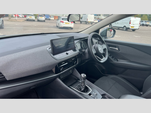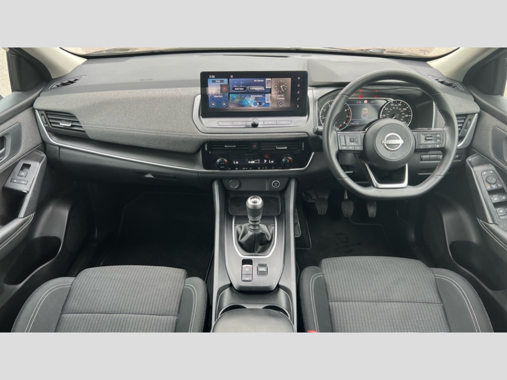 Nissan Qashqai 1.3 DiG-T MH Acenta Premium 5dr 2 front USB-C ports, 7" High definition full colour TFT screen combimeter, Blind spot intervention, Blind spot warning, Drive assist custom mode, Drive modes (sport, normal, eco), Driver drowsiness and attention warning, Electric speed sensitive power steering, Emergency and breakdown call, Emergency lane keep assist, Emergency Stop Signal (ESS), Engine start/stop button, Event data recorder, Idle stop/start system, Intelligent Cruise control (ICC), Intelligent forward collision warning, Intelligent speed assist, Lane departure warning system, Nissan connect 12.3 inch touchscreen infotainment system, Outside temperature sensor, Rear cross traffic alert, Rear parking sensors, Rear view camera, Reversing detection, Wireless Apple CarPlay and wired Android Auto, Limited slip differential, 6 speakers, AM/FM audio system with DAB, Bluetooth audio streaming, Auto rear wiper when reversing, Body colour mirror caps, Body coloured door handles, Bodyside mouldings, Chrome side window finisher, Electric auto folding door mirrors, Electrically adjustable and heated door mirrors with LED turn indicator, Follow me home headlights, High beam assist, Intelligent auto headlights, LED 3rd brake light, LED daytime running lights, LED Headlights, LED rear lights, One touch front and rear electric windows with remote opening and closing, One touch passenger window, Partially body coloured bumpers, Rear roof spoiler, Rear side wing doors, Shark fin antenna, Splash free rain sensing wipers, Three blink turn signal, 3 bench rear seats in 2nd row, 3 rear headrests, 60/40 split folding rear seat bench, Chrome interior door handles, Cloth upholstery, Dark headlining, Dual zone automatic climate control with pollen filter, Front door with bottle holders, Height adjustable front headrests, Leather shift knob, Luggage space lighting, Multifunction steering wheel, Passenger seat back pocket, Rear door bottle holders, Single front passenger seat, TEP steering wheel, Tilt/telescopic adjustable steering wheel, Two rear isofix child seat anchorage points with top tether, White ambient light (Partial area coverage), 3x3 point rear seatbelt pretensioners + load limiters, Autonomous emergency braking, Child locks on rear doors, Curtain and front side, far side airbags, Driver and passenger airbags, Driver, passenger and 2nd row rear seat belt reminder, Electric handbrake with auto hold function, Front seatbelt pretensioners + load limiters, Height adjustable front seatbelts, Hill start assist, intelligent front emergency braking, Rear automatic braking, Tyre pressure monitoring system, Vehicle dynamic control, Engine immobiliser, Intelligent key with walk away lock and approach unlock functions, Remote central door locking with deadlocking, Thatcham alarm, 17" Alloy wheels, Tyre puncture repair kit