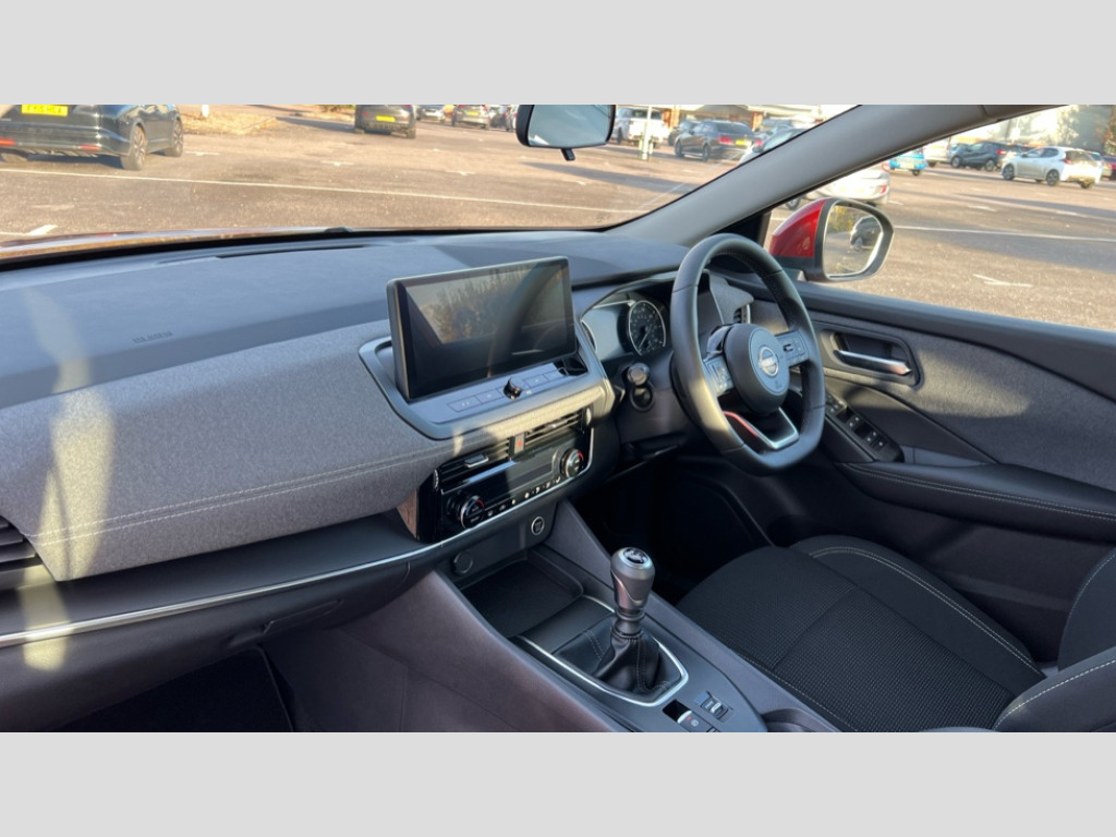 Nissan Qashqai 1.3 DiG-T MH Acenta Premium 5dr 2 front USB-C ports, 7" High definition full colour TFT screen combimeter, Blind spot intervention, Blind spot warning, Drive assist custom mode, Drive modes (sport, normal, eco), Driver drowsiness and attention warning, Electric speed sensitive power steering, Emergency and breakdown call, Emergency lane keep assist, Emergency Stop Signal (ESS), Engine start/stop button, Event data recorder, Idle stop/start system, Intelligent Cruise control (ICC), Intelligent forward collision warning, Intelligent speed assist, Lane departure warning system, Nissan connect 12.3 inch touchscreen infotainment system, Outside temperature sensor, Rear cross traffic alert, Rear parking sensors, Rear view camera, Reversing detection, Wireless Apple CarPlay and wired Android Auto, Limited slip differential, 6 speakers, AM/FM audio system with DAB, Bluetooth audio streaming, Auto rear wiper when reversing, Body colour mirror caps, Body coloured door handles, Bodyside mouldings, Chrome side window finisher, Electric auto folding door mirrors, Electrically adjustable and heated door mirrors with LED turn indicator, Follow me home headlights, High beam assist, Intelligent auto headlights, LED 3rd brake light, LED daytime running lights, LED Headlights, LED rear lights, One touch front and rear electric windows with remote opening and closing, One touch passenger window, Partially body coloured bumpers, Rear roof spoiler, Rear side wing doors, Shark fin antenna, Splash free rain sensing wipers, Three blink turn signal, 3 bench rear seats in 2nd row, 3 rear headrests, 60/40 split folding rear seat bench, Chrome interior door handles, Cloth upholstery, Dark headlining, Dual zone automatic climate control with pollen filter, Front door with bottle holders, Height adjustable front headrests, Leather shift knob, Luggage space lighting, Multifunction steering wheel, Passenger seat back pocket, Rear door bottle holders, Single front passenger seat, TEP steering wheel, Tilt/telescopic adjustable steering wheel, Two rear isofix child seat anchorage points with top tether, White ambient light (Partial area coverage), 3x3 point rear seatbelt pretensioners + load limiters, Autonomous emergency braking, Child locks on rear doors, Curtain and front side, far side airbags, Driver and passenger airbags, Driver, passenger and 2nd row rear seat belt reminder, Electric handbrake with auto hold function, Front seatbelt pretensioners + load limiters, Height adjustable front seatbelts, Hill start assist, intelligent front emergency braking, Rear automatic braking, Tyre pressure monitoring system, Vehicle dynamic control, Engine immobiliser, Intelligent key with walk away lock and approach unlock functions, Remote central door locking with deadlocking, Thatcham alarm, 17" Alloy wheels, Tyre puncture repair kit