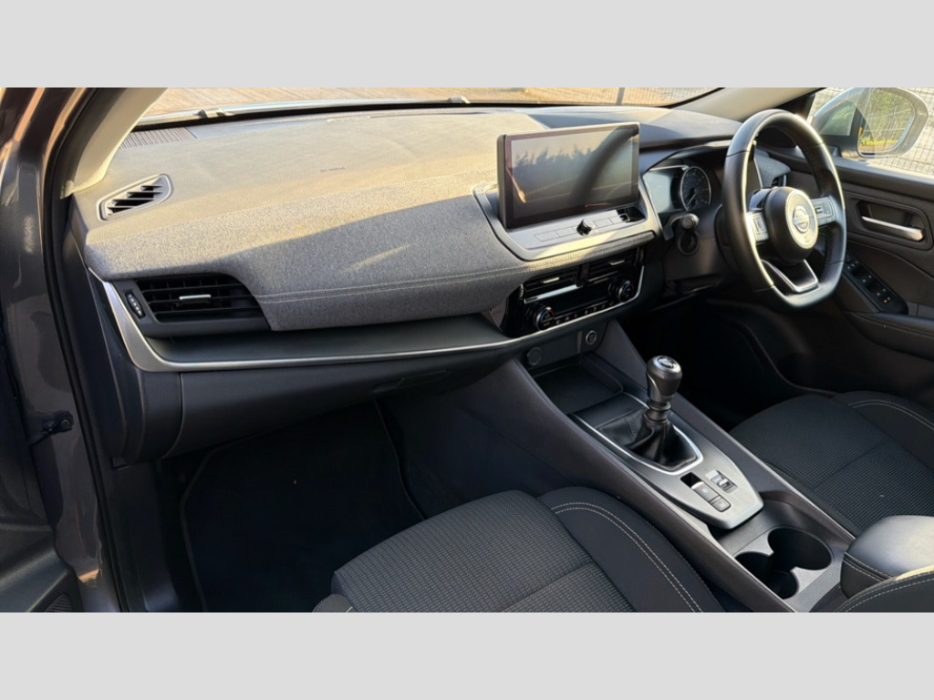 Nissan Qashqai 1.3 DiG-T MH Acenta Premium 5dr 2 front USB-C ports, 7" High definition full colour TFT screen combimeter, Blind spot intervention, Blind spot warning, Drive assist custom mode, Drive modes (sport, normal, eco), Driver drowsiness and attention warning, Electric speed sensitive power steering, Emergency and breakdown call, Emergency lane keep assist, Emergency Stop Signal (ESS), Engine start/stop button, Event data recorder, Idle stop/start system, Intelligent Cruise control (ICC), Intelligent forward collision warning, Intelligent speed assist, Lane departure warning system, Nissan connect 12.3 inch touchscreen infotainment system, Outside temperature sensor, Rear cross traffic alert, Rear parking sensors, Rear view camera, Reversing detection, Wireless Apple CarPlay and wired Android Auto, Limited slip differential, 6 speakers, AM/FM audio system with DAB, Bluetooth audio streaming, Auto rear wiper when reversing, Body colour mirror caps, Body coloured door handles, Bodyside mouldings, Chrome side window finisher, Electric auto folding door mirrors, Electrically adjustable and heated door mirrors with LED turn indicator, Follow me home headlights, High beam assist, Intelligent auto headlights, LED 3rd brake light, LED daytime running lights, LED Headlights, LED rear lights, One touch front and rear electric windows with remote opening and closing, One touch passenger window, Partially body coloured bumpers, Rear roof spoiler, Rear side wing doors, Shark fin antenna, Splash free rain sensing wipers, Three blink turn signal, 3 bench rear seats in 2nd row, 3 rear headrests, 60/40 split folding rear seat bench, Chrome interior door handles, Cloth upholstery, Dark headlining, Dual zone automatic climate control with pollen filter, Front door with bottle holders, Height adjustable front headrests, Leather shift knob, Luggage space lighting, Multifunction steering wheel, Passenger seat back pocket, Rear door bottle holders, Single front passenger seat, TEP steering wheel, Tilt/telescopic adjustable steering wheel, Two rear isofix child seat anchorage points with top tether, White ambient light (Partial area coverage), 3x3 point rear seatbelt pretensioners + load limiters, Autonomous emergency braking, Child locks on rear doors, Curtain and front side, far side airbags, Driver and passenger airbags, Driver, passenger and 2nd row rear seat belt reminder, Electric handbrake with auto hold function, Front seatbelt pretensioners + load limiters, Height adjustable front seatbelts, Hill start assist, intelligent front emergency braking, Rear automatic braking, Tyre pressure monitoring system, Vehicle dynamic control, Engine immobiliser, Intelligent key with walk away lock and approach unlock functions, Remote central door locking with deadlocking, Thatcham alarm, 17" Alloy wheels, Tyre puncture repair kit