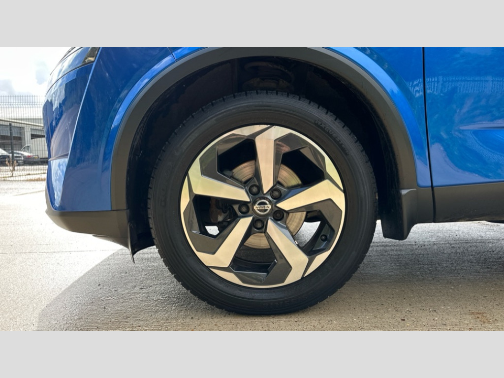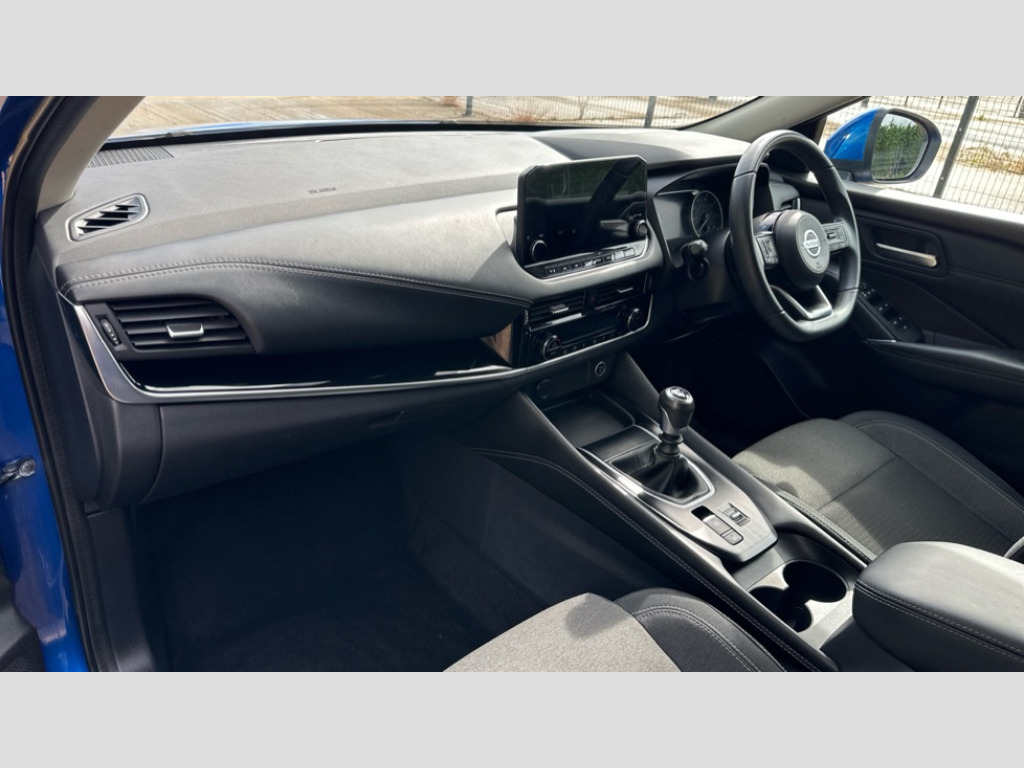 Nissan Qashqai 1.3 DiG-T MH N-Connecta 5dr 7" High definition full colour TFT screen combimeter, Blind spot warning, Drive modes (sport, normal, eco), Electric speed sensitive power steering, Emergency and breakdown call, Front and rear parking sensors, Google maps services - search, weather, 3D maps and Google street view, Idle stop/start system, Intelligent around view monitor, Intelligent Cruise control (ICC), Intelligent driver alert system, Intelligent forward collision warning, Intelligent lane intervention, Lane departure prevention, Lane departure warning system, Maximum speed limiter, Moving object detection, Nissan connect 9" touchscreen infotainment system, Nissan connect navigation, Push button starter, Rear cross traffic alert, Remote control services - door locks, lights, horn and car locator, Telematics - notifications and connectivity services, TomTom live traffic services, Traffic sign recognition with legal speed adjustment, Trip computer, Virtual personal assistant and firmware over the air capability, Wireless Apple CarPlay and wired Android Auto, 6 speakers, AM/FM audio system with DAB, Bluetooth audio streaming, Front USB connections (Type-A and Type-C), Rear USB charging only ports (Type-A and Type-C), Auto dimming rear view mirror, Auto rear wiper when reversing, Body colour mirror caps, Body coloured door handles, Bodyside mouldings, Chrome side window finisher, Door handle with button, Dusk sensor, Electric auto folding door mirrors, Electrically adjustable and heated door mirrors with LED turn indicator, Follow me home headlights, High beam assist, Intelligent auto headlights, LED daytime running lights, LED Headlights, LED rear lights, One touch front and rear electric windows with remote opening and closing, Partially body coloured bumpers, Privacy glass, Rear reversing light (bulb lighting), Rear roof spoiler, Rear side wing doors, Rear styling plate, Shark fin antenna, Splash free rain sensing wipers, Super UV and infrared cut glass, Three blink turn signal, 12v power socket in dashboard and luggage, 2 way electrical driver lumbar adjustment, 2x Rear coat hooks, 3 bench rear seats in 2nd row, 3 rear headrests, 4 folding assist grip, 6 Luggage hooks - 4 on floor, 2 on side, 6-way manually adjustable driver's seat, 60/40 split folding rear seat bench, Ambient lighting around centre console, Centre console storage tray, Chrome interior door handles, Cloth monoform upholstery, Driver and front passenger sunvisors with illuminated vanity mirrors, Driver seat back pocket, Dual zone automatic climate control with pollen filter, Front and rear door storage, Front cupholders x 2, Front door with bottle holders, Glovebox with light, Hard trunk cover, Height adjustable front headrests, Leather shift knob, Leather steering wheel, Luggage board system, Luggage space lighting, Manually adjustable passenger (slide recline + lifter), Multifunction steering wheel, Passenger seat back pocket, PVC front centre console and armrest, Rear armrest with 2 cupholders, Rear door bottle holders, Single front passenger seat, Soft PVC kneepad, Steering wheel switches, Sunglasses holder, Tilt/telescopic adjustable steering wheel, Two rear isofix child seat anchorage points with top tether, Welcome light and console tray ambient lighting, 3x3 point rear seatbelt pretensioners + load limiters, ABS, ESP, EBD and brake assist, Active brake limited slip, Auto hold function, Child locks on rear doors, Curtain and front side, far side airbags, Driver and passenger airbags, Driver, passenger and 2nd row rear seat belt reminder, Electronic parking brake, Front seatbelt pretensioners + load limiters, Height adjustable front seatbelts, Hill start assist, Intelligent blind spot intervention, Intelligent front emergency braking with pedestrian, cyclist recognition and junction assist, Intelligent rear automatic braking, Tyre pressure monitoring system, Vehicle dynamic control, Capless fuel filler, Engine immobiliser, Nissan i-key, Rear bumper with silver insert, Remote central door locking with deadlocking, Thatcham Cat.1 alarm, 18" Diamond cut alloy wheels