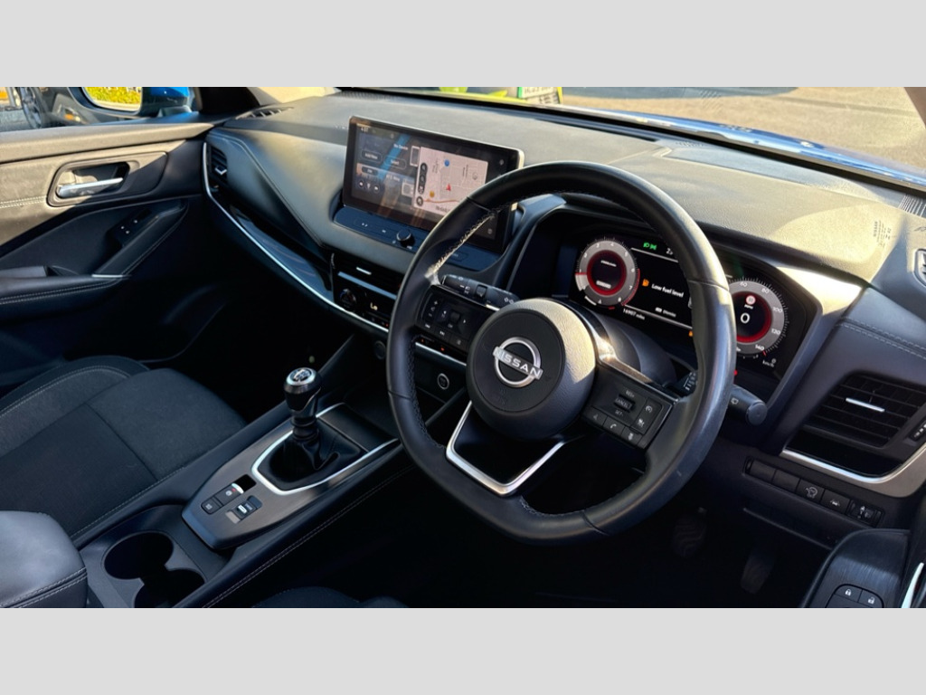 Nissan Qashqai 1.3 DiG-T MH N-Connecta 5dr Android auto/Apple CarPlay (Wired), Blind spot warning, Drive modes (sport, normal, eco), Electric speed sensitive power steering, Emergency and breakdown call, Front and rear parking sensors, Full Digital 12.3" TFT Digital Combimeter, Google maps services - search, weather, 3D maps and Google street view, Idle stop/start system, Intelligent around view monitor, Intelligent Cruise control (ICC), Intelligent driver alert system, Intelligent forward collision warning, Intelligent lane intervention, Lane departure prevention, Lane departure warning system, Maximum speed limiter, Moving object detection, Nissan connect 12.3 inch touchscreen infotainment system, Nissan connect navigation, Push button starter, Rear cross traffic alert, Rear view camera, Remote control services - door locks, lights, horn and car locator, Telematics - notifications and connectivity services, TomTom live traffic services, Traffic sign recognition with legal speed adjustment, Trip computer, Virtual personal assistant and firmware over the air capability, Wireless apple carplay, 6 speakers, AM/FM audio system with DAB, Bluetooth audio streaming, Front USB connections (Type-A and Type-C), Rear USB charging only ports (Type-A and Type-C), Auto dimming rear view mirror, Auto rear wiper when reversing, Automatic hazard signal with emergency stop signal, Body colour mirror caps, Body coloured door handles, Bodyside mouldings, Chrome side window finisher, Door handle with button, Electric auto folding door mirrors, Electrically adjustable and heated door mirrors with LED turn indicator, Follow me home headlights, High beam assist, Intelligent auto headlights, LED daytime running lights, LED Headlights, LED rear lights, One touch front and rear electric windows with remote opening and closing, Partially body coloured bumpers, Privacy glass, Rear bumper with graphite insert, Rear reversing light (bulb lighting), Rear roof spoiler, Rear side wing doors, Rear styling plate, Shark fin antenna, Splash free rain sensing wipers, Super UV and infrared cut glass, Three blink turn signal, 12v power socket in dashboard and luggage, 2x Rear coat hooks, 3 bench rear seats in 2nd row, 3 rear headrests, 4 folding assist grip, 6 Luggage hooks - 4 on floor, 2 on side, 6-way manually adjustable driver's seat, 60/40 split folding rear seat bench, Ambient lighting around centre console, Centre console storage tray, Chrome interior door handles, Cloth monoform upholstery, Driver and front passenger sunvisors with illuminated vanity mirrors, Driver seat back pocket, Dual zone automatic climate control with pollen filter, Electrically adjustable lumbar support for driver, Front and rear door storage, Front centre console and armrest, Front cupholders x 2, Front door with bottle holders, Glovebox with light, Hard trunk cover, Height adjustable driver's seat, Height adjustable front headrests, Height adjustable passenger seat, Leather shift knob, Leather steering wheel, Luggage board system, Luggage space lighting, Manually adjustable passenger (slide recline + lifter), Multifunction steering wheel, Passenger seat back pocket, Rear armrest with 2 cupholders, Rear door bottle holders, Single front passenger seat, Soft PVC kneepad, Steering wheel switches, Sunglasses holder, Tilt/telescopic adjustable steering wheel, Two rear isofix child seat anchorage points with top tether, Welcome light and console tray ambient lighting, 3x3 point rear seatbelt pretensioners + load limiters, ABS with EBD and brake assist, Active brake limited slip, Auto hold function, Child locks on rear doors, Curtain and front side, far side airbags, Driver and passenger airbags, Driver, passenger and 2nd row rear seat belt reminder, Electronic parking brake, Front seatbelt pretensioners + load limiters, Height adjustable front seatbelts, Hill start assist, Intelligent blind spot intervention, Intelligent front emergency braking with pedestrian, cyclist recognition and junction assist, Intelligent rear automatic braking, Tyre pressure monitoring system, Vehicle dynamic control, Capless fuel filler, Engine immobiliser, Intelligent Key, Remote central door locking with deadlocking, Thatcham Cat.1 alarm, Interior instrumental panel B finisher, 18" Diamond cut alloy wheels, Tyre puncture repair kit