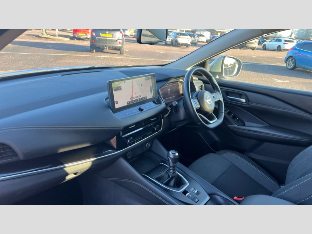 Nissan Qashqai 1.3 DiG-T MH N-Connecta 5dr Android auto/Apple CarPlay (Wired), Blind spot warning, Drive modes (sport, normal, eco), Electric speed sensitive power steering, Emergency and breakdown call, Front and rear parking sensors, Full Digital 12.3" TFT Digital Combimeter, Google maps services - search, weather, 3D maps and Google street view, Idle stop/start system, Intelligent around view monitor, Intelligent Cruise control (ICC), Intelligent driver alert system, Intelligent forward collision warning, Intelligent lane intervention, Lane departure prevention, Lane departure warning system, Maximum speed limiter, Moving object detection, Nissan connect 12.3 inch touchscreen infotainment system, Nissan connect navigation, Push button starter, Rear cross traffic alert, Rear view camera, Remote control services - door locks, lights, horn and car locator, Telematics - notifications and connectivity services, TomTom live traffic services, Traffic sign recognition with legal speed adjustment, Trip computer, Virtual personal assistant and firmware over the air capability, Wireless apple carplay, 6 speakers, AM/FM audio system with DAB, Bluetooth audio streaming, Front USB connections (Type-A and Type-C), Rear USB charging only ports (Type-A and Type-C), Auto dimming rear view mirror, Auto rear wiper when reversing, Automatic hazard signal with emergency stop signal, Body colour mirror caps, Body coloured door handles, Bodyside mouldings, Chrome side window finisher, Door handle with button, Electric auto folding door mirrors, Electrically adjustable and heated door mirrors with LED turn indicator, Follow me home headlights, High beam assist, Intelligent auto headlights, LED daytime running lights, LED Headlights, LED rear lights, One touch front and rear electric windows with remote opening and closing, Partially body coloured bumpers, Privacy glass, Rear bumper with graphite insert, Rear reversing light (bulb lighting), Rear roof spoiler, Rear side wing doors, Rear styling plate, Shark fin antenna, Splash free rain sensing wipers, Super UV and infrared cut glass, Three blink turn signal, 12v power socket in dashboard and luggage, 2x Rear coat hooks, 3 bench rear seats in 2nd row, 3 rear headrests, 4 folding assist grip, 6 Luggage hooks - 4 on floor, 2 on side, 6-way manually adjustable driver's seat, 60/40 split folding rear seat bench, Ambient lighting around centre console, Centre console storage tray, Chrome interior door handles, Cloth monoform upholstery, Driver and front passenger sunvisors with illuminated vanity mirrors, Driver seat back pocket, Dual zone automatic climate control with pollen filter, Electrically adjustable lumbar support for driver, Front and rear door storage, Front centre console and armrest, Front cupholders x 2, Front door with bottle holders, Glovebox with light, Hard trunk cover, Height adjustable driver's seat, Height adjustable front headrests, Height adjustable passenger seat, Leather shift knob, Leather steering wheel, Luggage board system, Luggage space lighting, Manually adjustable passenger (slide recline + lifter), Multifunction steering wheel, Passenger seat back pocket, Rear armrest with 2 cupholders, Rear door bottle holders, Single front passenger seat, Soft PVC kneepad, Steering wheel switches, Sunglasses holder, Tilt/telescopic adjustable steering wheel, Two rear isofix child seat anchorage points with top tether, Welcome light and console tray ambient lighting, 3x3 point rear seatbelt pretensioners + load limiters, ABS with EBD and brake assist, Active brake limited slip, Auto hold function, Child locks on rear doors, Curtain and front side, far side airbags, Driver and passenger airbags, Driver, passenger and 2nd row rear seat belt reminder, Electronic parking brake, Front seatbelt pretensioners + load limiters, Height adjustable front seatbelts, Hill start assist, Intelligent blind spot intervention, Intelligent front emergency braking with pedestrian, cyclist recognition and junction assist, Intelligent rear automatic braking, Tyre pressure monitoring system, Vehicle dynamic control, Capless fuel filler, Engine immobiliser, Intelligent Key, Remote central door locking with deadlocking, Thatcham Cat.1 alarm, Interior instrumental panel B finisher, 18" Diamond cut alloy wheels, Tyre puncture repair kit