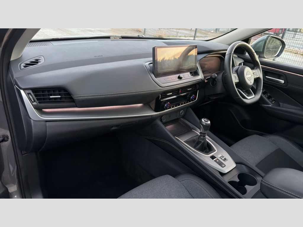 Nissan Qashqai 1.3 DiG-T MH N-Connecta 5dr 2 front USB-C ports, 2 rear USB-C ports, 360 degree Intelligent around view monitor with moving object detection, Blind spot intervention, Blind spot warning, Drive assist, Drive assist custom mode, Drive modes (sport, normal, eco), Driver drowsiness and attention warning, Electric speed sensitive power steering, Emergency and breakdown call, Emergency lane keep assist, Emergency Stop Signal (ESS), Engine start/stop button, Event data recorder, Front and rear parking sensors, Full Digital 12.3" TFT Digital Combimeter, Google virtual personal assistance, Idle stop/start system, In-car WIFI hotspot, Intelligent Cruise control (ICC), Intelligent forward collision warning, Intelligent speed assist, Lane departure warning system, Nissan connect 12.3 inch touchscreen infotainment system, Nissan connect navigation with google maps, Nissan connect services 2.0 (Google Automotive System), Outside temperature sensor, Rear cross traffic alert, Reversing detection, Wireless Apple CarPlay/Android Auto, Wireless charging pad, Limited slip differential, 6 speakers, AM/FM audio system with DAB, Bluetooth audio streaming, Auto rear wiper when reversing, Body colour mirror caps, Body coloured door handles, Bodyside mouldings, Chrome side window finisher, Electric auto folding door mirrors, Electrically adjustable and heated door mirrors with LED turn indicator, Follow me home headlights, High beam assist, Intelligent auto headlights, LED 3rd brake light, LED daytime running lights, LED Headlights, LED rear lights, One touch front and rear electric windows with remote opening and closing, One touch passenger window, Partially body coloured bumpers, Rear privacy glass, Rear roof spoiler, Rear side wing doors, Rear styling plate, Shark fin antenna, Splash free rain sensing wipers, Super UV and infrared cut glass, Three blink turn signal, 3 bench rear seats in 2nd row, 3 rear headrests, 60/40 split folding rear seat bench, Chrome interior door handles, Cloth upholstery, Dark headlining, Driver seat back pocket, Dual zone automatic climate control with pollen filter, Front door with bottle holders, Height adjustable front headrests, Leather shift knob, Luggage board system, Luggage space lighting, Multifunction steering wheel, Passenger seat back pocket, Rear door bottle holders, RGB ambient light (Full area coverage), Single front passenger seat, Smooth leather steering wheel, Tilt/telescopic adjustable steering wheel, Two rear isofix child seat anchorage points with top tether, 3x3 point rear seatbelt pretensioners + load limiters, Autonomous emergency braking, Child locks on rear doors, Curtain and front side, far side airbags, Driver and passenger airbags, Driver, passenger and 2nd row rear seat belt reminder, Electric handbrake with auto hold function, Front seatbelt pretensioners + load limiters, Height adjustable front seatbelts, Hill start assist, intelligent front emergency braking, Rear automatic braking, Tyre pressure monitoring system, Vehicle dynamic control, Engine immobiliser, Intelligent key with walk away lock and approach unlock functions, Remote central door locking with deadlocking, Thatcham alarm, 18" Diamond cut alloy wheels, Tyre puncture repair kit