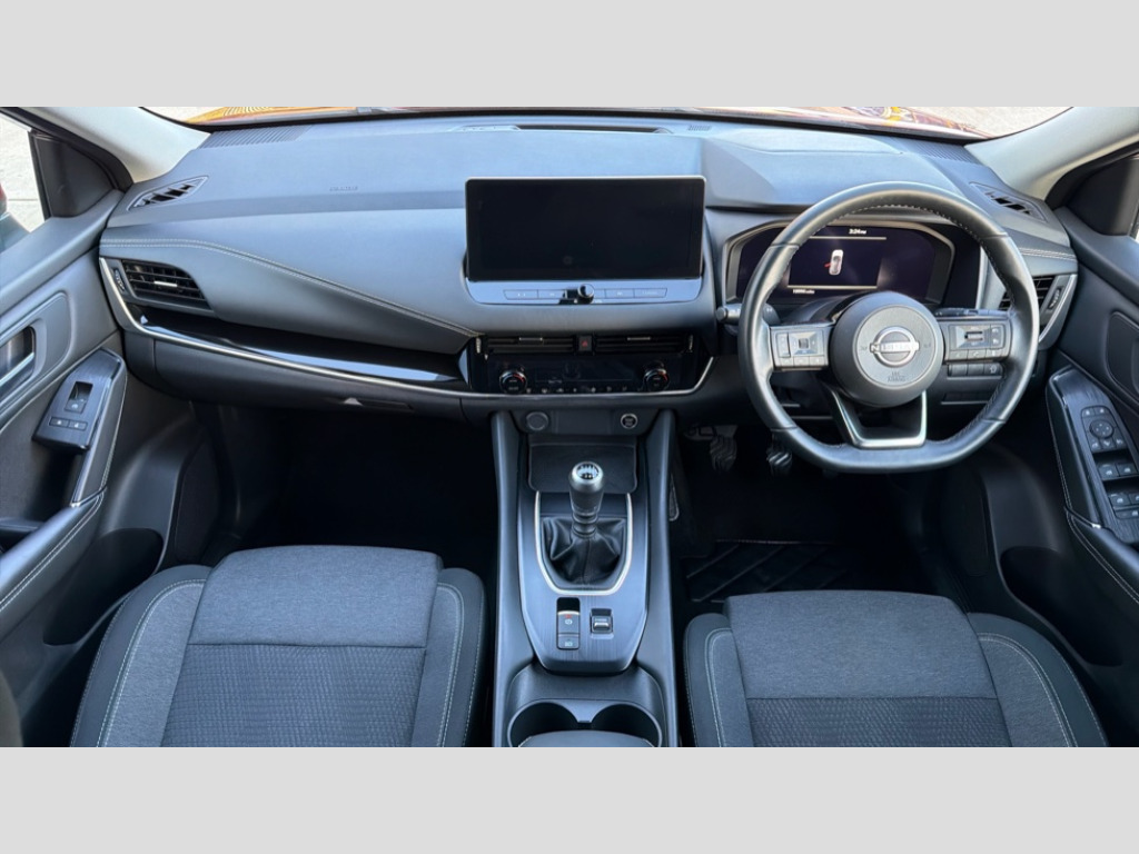 Nissan Qashqai 1.3 DiG-T MH N-Connecta 5dr Android auto/Apple CarPlay (Wired), Blind spot warning, Drive modes (sport, normal, eco), Electric speed sensitive power steering, Emergency and breakdown call, Front and rear parking sensors, Full Digital 12.3" TFT Digital Combimeter, Google maps services - search, weather, 3D maps and Google street view, Idle stop/start system, Intelligent around view monitor, Intelligent Cruise control (ICC), Intelligent driver alert system, Intelligent forward collision warning, Intelligent lane intervention, Lane departure prevention, Lane departure warning system, Maximum speed limiter, Moving object detection, Nissan connect 12.3 inch touchscreen infotainment system, Nissan connect navigation, Push button starter, Rear cross traffic alert, Rear view camera, Remote control services - door locks, lights, horn and car locator, Telematics - notifications and connectivity services, TomTom live traffic services, Traffic sign recognition with legal speed adjustment, Trip computer, Virtual personal assistant and firmware over the air capability, Wireless apple carplay, 6 speakers, AM/FM audio system with DAB, Bluetooth audio streaming, Front USB connections (Type-A and Type-C), Rear USB charging only ports (Type-A and Type-C), Auto dimming rear view mirror, Auto rear wiper when reversing, Automatic hazard signal with emergency stop signal, Body colour mirror caps, Body coloured door handles, Bodyside mouldings, Chrome side window finisher, Door handle with button, Electric auto folding door mirrors, Electrically adjustable and heated door mirrors with LED turn indicator, Follow me home headlights, High beam assist, Intelligent auto headlights, LED daytime running lights, LED Headlights, LED rear lights, One touch front and rear electric windows with remote opening and closing, Partially body coloured bumpers, Privacy glass, Rear bumper with graphite insert, Rear reversing light (bulb lighting), Rear roof spoiler, Rear side wing doors, Rear styling plate, Shark fin antenna, Splash free rain sensing wipers, Super UV and infrared cut glass, Three blink turn signal, 12v power socket in dashboard and luggage, 2x Rear coat hooks, 3 bench rear seats in 2nd row, 3 rear headrests, 4 folding assist grip, 6 Luggage hooks - 4 on floor, 2 on side, 6-way manually adjustable driver's seat, 60/40 split folding rear seat bench, Ambient lighting around centre console, Centre console storage tray, Chrome interior door handles, Cloth monoform upholstery, Driver and front passenger sunvisors with illuminated vanity mirrors, Driver seat back pocket, Dual zone automatic climate control with pollen filter, Electrically adjustable lumbar support for driver, Front and rear door storage, Front centre console and armrest, Front cupholders x 2, Front door with bottle holders, Glovebox with light, Hard trunk cover, Height adjustable driver's seat, Height adjustable front headrests, Height adjustable passenger seat, Leather shift knob, Leather steering wheel, Luggage board system, Luggage space lighting, Manually adjustable passenger (slide recline + lifter), Multifunction steering wheel, Passenger seat back pocket, Rear armrest with 2 cupholders, Rear door bottle holders, Single front passenger seat, Soft PVC kneepad, Steering wheel switches, Tilt/telescopic adjustable steering wheel, Two rear isofix child seat anchorage points with top tether, Welcome light and console tray ambient lighting, Glass roof pack with roof rails - Qashqai, 3x3 point rear seatbelt pretensioners + load limiters, ABS with EBD and brake assist, Active brake limited slip, Auto hold function, Child locks on rear doors, Curtain and front side, far side airbags, Driver and passenger airbags, Driver, passenger and 2nd row rear seat belt reminder, Electronic parking brake, Front seatbelt pretensioners + load limiters, Height adjustable front seatbelts, Hill start assist, Intelligent blind spot intervention, Intelligent front emergency braking with pedestrian, cyclist recognition and junction assist, Intelligent rear automatic braking, Tyre pressure monitoring system, Vehicle dynamic control, Capless fuel filler, Engine immobiliser, Intelligent Key, Remote central door locking with deadlocking, Thatcham Cat.1 alarm, Interior instrumental panel B finisher, 18" Diamond cut alloy wheels, Tyre puncture repair kit