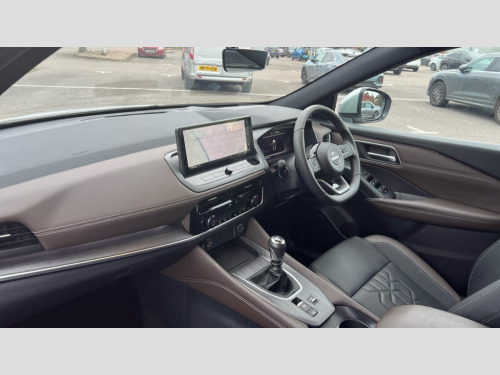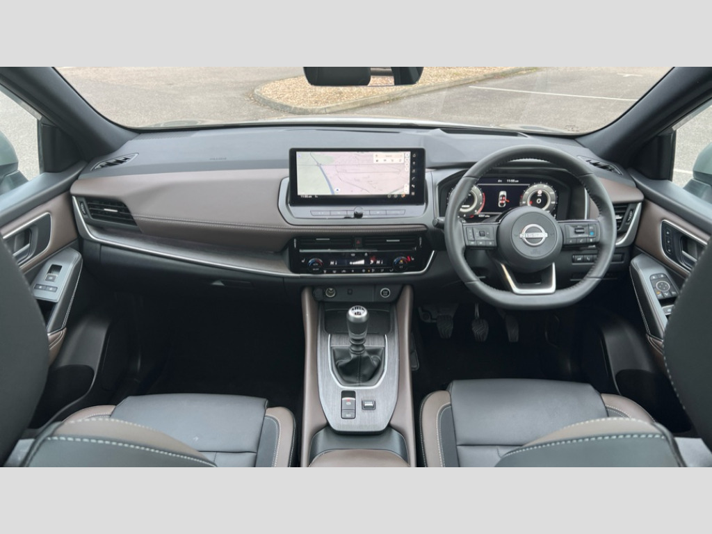 Nissan Qashqai 1.3 DiG-T MH Tekna 5dr 2 front USB-C ports, 2 rear USB-C ports, 360 degree Intelligent around view monitor with moving object detection, Advanced windscreen head up display, Blind spot warning, Drive assist, Drive assist custom mode, Drive modes (sport, normal, eco), Driver drowsiness and attention warning, Electric speed sensitive power steering, Emergency and breakdown call, Emergency lane keep assist, Emergency Stop Signal (ESS), Engine start/stop button, Event data recorder, Front and rear parking sensors, Full Digital 12.3" TFT Digital Combimeter, Google virtual personal assistance, Hands free power tailgate, Idle stop/start system, In-car WIFI hotspot, Intelligent Cruise control (ICC), Intelligent driver alert system, Intelligent forward collision warning, Intelligent lane intervention, Intelligent speed assist, Lane departure warning system, Nissan connect 12.3 inch touchscreen infotainment system, Nissan connect navigation with google maps, Nissan connect services 2.0 (Google Automotive System), Outside temperature sensor, Rear cross traffic alert, Remote control services - door locks, lights, horn and car locator, Reversing detection, Traffic sign recognition with legal speed adjustment, Trip computer, Wireless Apple CarPlay/Android Auto, Wireless charging pad, Limited slip differential, 6 speakers, AM/FM audio system with DAB, Bluetooth audio streaming, Auto dimming frameless rear view mirror, Auto rear wiper when reversing, Body colour mirror caps, Body coloured door handles, Bodyside mouldings, Chrome side window finisher, Electric auto folding door mirrors, Electrically adjustable and heated door mirrors with LED turn indicator, Follow me home headlights, High beam assist, Intelligent auto headlights, LED 3rd brake light, LED daytime running lights, LED headlights with adaptive driving beam, LED rear lights, LED sequential turn lights, One touch front and rear electric windows with remote opening and closing, One touch passenger window, Partially body coloured bumpers, Rain sensing wipers, Rear privacy glass, Rear roof spoiler, Rear side wing doors, Rear styling plate, Reverse tilting door mirrors, Shark fin antenna, Silver roof rails, Splash free rain sensing wipers, Super RED rear LED lights, Super UV and infrared cut glass, Thermaclear heated windscreen, 12v power socket in dashboard and luggage, 3 bench rear seats in 2nd row, 3 rear headrests, 60/40 split folding rear seat bench, Chrome interior door handles, Dark headlining, Driver and passenger sunvisors with illuminated vanity mirrors, Driver seat back pocket, Dual zone automatic climate control with pollen filter, Electrically adjustable driver seat, Electrically adjustable lumbar support for driver, Fixed Glass roof with electric sunshade, Front centre console and armrest, Front cupholders, Front door with bottle holders, Heated front seats, Heated steering wheel, Height adjustable front headrests, Height adjustable passenger seat, Leather shift knob, Luggage board system, Luggage space lighting, Manual adjustable lumbar support for passenger, Multifunction steering wheel, Passenger seat back pocket, Quilted/PVC upholstery, Rear door bottle holders, Rear seat armrest with 2 cupholders, RGB ambient light (Full area coverage), Single front passenger seat, Smooth leather steering wheel, Tilt/telescopic adjustable steering wheel, Two rear isofix child seat anchorage points with top tether, 3x3 point rear seatbelt pretensioners + load limiters, ABS with EBD and brake assist, Autonomous emergency braking, Child locks on rear doors, Curtain and front side, far side airbags, Driver and passenger airbags, Driver, passenger and 2nd row rear seat belt reminder, Electric handbrake with auto hold function, Front seatbelt pretensioners + load limiters, Height adjustable front seatbelts, Hill start assist, Intelligent blind spot intervention, intelligent front emergency braking, Intelligent rear automatic braking, Tyre pressure monitoring system, Vehicle dynamic control, Engine immobiliser, Intelligent key with walk away lock and approach unlock functions, Remote central door locking with deadlocking, Thatcham alarm, 19" Diamond cut alloy wheels, Tyre puncture repair kit