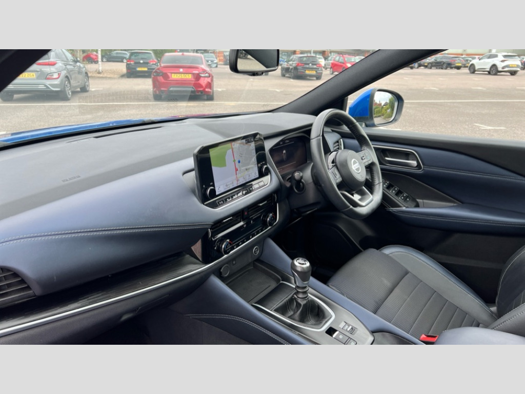 Nissan Qashqai 1.3 DiG-T MH Tekna 5dr Advanced windscreen head up display, Android auto/Apple CarPlay (Wired), Blind spot warning, Drive assist, Drive modes (sport, normal, eco), Electric speed sensitive power steering, Emergency and breakdown call, Front and rear parking sensors, Full Digital 12.3" TFT Digital Combimeter, Google maps services - search, weather, 3D maps and Google street view, Hands free power tailgate, Idle stop/start system, Intelligent around view monitor, Intelligent Cruise control (ICC), Intelligent driver alert system, Intelligent forward collision warning, Intelligent lane intervention, Lane departure prevention, Lane departure warning system, Lane keep assist, Moving object detection, Nissan connect 12.3 inch touchscreen infotainment system, Nissan connect navigation, Push button starter, Rear cross traffic alert, Rear view camera, Remote control services - door locks, lights, horn and car locator, Telematics - notifications and connectivity services, TomTom live traffic services, Traffic sign recognition with legal speed adjustment, Trip computer, Virtual personal assistant and firmware over the air capability, Wireless apple carplay, Wireless charging pad, 6 speakers, AM/FM audio system with DAB, Bluetooth audio streaming, Front USB connections (Type-A and Type-C), Rear USB charging only ports (Type-A and Type-C), Auto dimming rear view mirror, Auto rear wiper when reversing, Automatic hazard signal with emergency stop signal, Body colour mirror caps, Body coloured door handles, Bodyside mouldings, Chrome side window finisher, Door handle with button, Electric auto folding door mirrors, Electrically adjustable and heated door mirrors with LED turn indicator, Follow me home headlights, Front and rear LED turning signals, Headlights auto levelling system, Intelligent auto headlights, LED daytime running lights, LED headlights with adaptive driving beam, LED rear lights, One touch front and rear electric windows with remote opening and closing, Partially body coloured bumpers, Privacy glass, Rear bumper with graphite insert, Rear reversing light (bulb lighting), Rear roof spoiler, Rear side wing doors, Rear styling plate, Shark fin antenna, Splash free rain sensing wipers, Super UV and infrared cut glass, Thermaclear heated windscreen, Three blink turn signal, 12v power socket in dashboard and luggage, 2x Rear coat hooks, 3 bench rear seats in 2nd row, 3 rear headrests, 4 folding assist grip, 6 Luggage hooks - 4 on floor, 2 on side, 60/40 split folding rear seat bench, Ambient lighting around centre console, Ambient lighting in front doors, Centre console storage tray, Chrome interior door handles, Cloth/syntech leather monoform upholstery, Dark black/blueish PVC wrapping, Dark headlining, Driver and front passenger sunvisors with illuminated vanity mirrors, Driver seat back pocket, Dual zone automatic climate control with pollen filter, Electrically adjustable driver seat, Electrically adjustable lumbar support for driver, Front and rear door storage, Front centre console and armrest, Front cupholders x 2, Front door with bottle holders, Glovebox with light, Hard trunk cover, Heated front seats, Heated steering wheel, Height adjustable driver's seat, Height adjustable front headrests, Height adjustable passenger seat, Leather shift knob, Leather steering wheel, Luggage board system, Luggage space lighting, Manual lumbar support on passenger seat, Manually adjustable passenger (slide recline + lifter), Multifunction steering wheel, Passenger seat back pocket, Rear armrest with 2 cupholders, Rear door bottle holders, Single front passenger seat, Soft PVC kneepad, Steering wheel switches, Tilt/telescopic adjustable steering wheel, Two rear isofix child seat anchorage points with top tether, Welcome light and doors with console tray ambient lighting, Glass roof pack with roof rails - Qashqai, 3x3 point rear seatbelt pretensioners + load limiters, ABS with EBD and brake assist, Active brake limited slip, Auto hold function, Child locks on rear doors, Curtain and front side, far side airbags, Driver and passenger airbags, Driver, passenger and 2nd row rear seat belt reminder, Electronic parking brake, Front seatbelt pretensioners + load limiters, Height adjustable front seatbelts, Hill start assist, Intelligent blind spot intervention, Intelligent front emergency braking with pedestrian, cyclist recognition and junction assist, Intelligent rear automatic braking, Tyre pressure monitoring system, Vehicle dynamic control, Capless fuel filler, Engine immobiliser, Intelligent Key, Remote central door locking with deadlocking, Thatcham Cat.1 alarm, Interior instrumental panel C finisher, 19" Alloy wheels, Tyre puncture repair kit