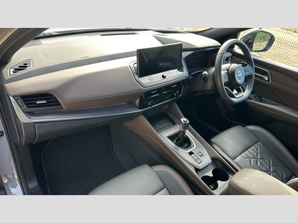 Nissan Qashqai 1.3 DiG-T MH Tekna 5dr 2 front USB-C ports, 2 rear USB-C ports, 360 degree Intelligent around view monitor with moving object detection, Advanced windscreen head up display, Blind spot intervention, Blind spot warning, Drive assist, Drive assist custom mode, Drive modes (sport, normal, eco), Driver drowsiness and attention warning, Electric speed sensitive power steering, Emergency and breakdown call, Emergency lane keep assist, Emergency Stop Signal (ESS), Engine start/stop button, Event data recorder, Front and rear parking sensors, Full Digital 12.3" TFT Digital Combimeter, Google virtual personal assistance, Hands free power tailgate, Idle stop/start system, In-car WIFI hotspot, Intelligent Cruise control (ICC), Intelligent forward collision warning, Intelligent speed assist, Lane departure warning system, Nissan connect 12.3 inch touchscreen infotainment system, Nissan connect navigation with google maps, Nissan connect services 2.0 (Google Automotive System), Outside temperature sensor, Rear cross traffic alert, Reversing detection, Wireless Apple CarPlay/Android Auto, Wireless charging pad, Limited slip differential, 6 speakers, AM/FM audio system with DAB, Bluetooth audio streaming, Auto dimming frameless rear view mirror, Auto rear wiper when reversing, Body colour mirror caps, Body coloured door handles, Bodyside mouldings, Chrome side window finisher, Electric auto folding door mirrors, Electrically adjustable and heated door mirrors with LED turn indicator, Follow me home headlights, Glossy black bumper inserts and fenders, High beam assist, Intelligent auto headlights, LED 3rd brake light, LED daytime running lights, LED headlights with adaptive driving beam, LED rear lights, LED sequential turn lights, One touch front and rear electric windows with remote opening and closing, One touch passenger window, Partially body coloured bumpers, Rear privacy glass, Rear roof spoiler, Rear side wing doors, Rear styling plate, Reverse tilting door mirrors, Shark fin antenna, Silver roof rails, Splash free rain sensing wipers, Super RED rear LED lights, Super UV and infrared cut glass, Thermaclear heated windscreen, 3 bench rear seats in 2nd row, 3 rear headrests, 60/40 split folding rear seat bench, Chrome interior door handles, Dark headlining, Driver seat back pocket, Dual zone automatic climate control with pollen filter, Fixed Glass roof with electric sunshade, Front door with bottle holders, Heated front seats, Heated steering wheel, Height adjustable front headrests, Leather shift knob, Luggage board system, Luggage space lighting, Multifunction steering wheel, Passenger seat back pocket, Quilted/PVC upholstery, Rear door bottle holders, RGB ambient light (Full area coverage), Single front passenger seat, Smooth leather steering wheel, Tilt/telescopic adjustable steering wheel, Two rear isofix child seat anchorage points with top tether, 3x3 point rear seatbelt pretensioners + load limiters, Autonomous emergency braking, Child locks on rear doors, Curtain and front side, far side airbags, Driver and passenger airbags, Driver, passenger and 2nd row rear seat belt reminder, Electric handbrake with auto hold function, Front seatbelt pretensioners + load limiters, Height adjustable front seatbelts, Hill start assist, intelligent front emergency braking, Rear automatic braking, Tyre pressure monitoring system, Vehicle dynamic control, Engine immobiliser, Intelligent key with walk away lock and approach unlock functions, Remote central door locking with deadlocking, Thatcham alarm, 19" Diamond cut alloy wheels, Tyre puncture repair kit