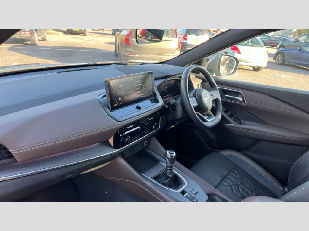 Nissan Qashqai 1.3 DiG-T MH Tekna 5dr 2 front USB-C ports, 2 rear USB-C ports, 360 degree Intelligent around view monitor with moving object detection, Advanced windscreen head up display, Blind spot intervention, Blind spot warning, Drive assist, Drive assist custom mode, Drive modes (sport, normal, eco), Driver drowsiness and attention warning, Electric speed sensitive power steering, Emergency and breakdown call, Emergency lane keep assist, Emergency Stop Signal (ESS), Engine start/stop button, Event data recorder, Front and rear parking sensors, Full Digital 12.3" TFT Digital Combimeter, Google virtual personal assistance, Hands free power tailgate, Idle stop/start system, In-car WIFI hotspot, Intelligent Cruise control (ICC), Intelligent forward collision warning, Intelligent speed assist, Lane departure warning system, Nissan connect 12.3 inch touchscreen infotainment system, Nissan connect navigation with google maps, Nissan connect services 2.0 (Google Automotive System), Outside temperature sensor, Rear cross traffic alert, Reversing detection, Wireless Apple CarPlay/Android Auto, Wireless charging pad, Limited slip differential, 6 speakers, AM/FM audio system with DAB, Bluetooth audio streaming, Auto dimming frameless rear view mirror, Auto rear wiper when reversing, Body colour mirror caps, Body coloured door handles, Bodyside mouldings, Chrome side window finisher, Electric auto folding door mirrors, Electrically adjustable and heated door mirrors with LED turn indicator, Follow me home headlights, Glossy black bumper inserts and fenders, High beam assist, Intelligent auto headlights, LED 3rd brake light, LED daytime running lights, LED headlights with adaptive driving beam, LED rear lights, LED sequential turn lights, One touch front and rear electric windows with remote opening and closing, One touch passenger window, Partially body coloured bumpers, Rear privacy glass, Rear roof spoiler, Rear side wing doors, Rear styling plate, Reverse tilting door mirrors, Shark fin antenna, Silver roof rails, Splash free rain sensing wipers, Super RED rear LED lights, Super UV and infrared cut glass, Thermaclear heated windscreen, 3 bench rear seats in 2nd row, 3 rear headrests, 60/40 split folding rear seat bench, Chrome interior door handles, Dark headlining, Driver seat back pocket, Dual zone automatic climate control with pollen filter, Fixed Glass roof with electric sunshade, Front door with bottle holders, Heated front seats, Heated steering wheel, Height adjustable front headrests, Leather shift knob, Luggage board system, Luggage space lighting, Multifunction steering wheel, Passenger seat back pocket, Quilted/PVC upholstery, Rear door bottle holders, RGB ambient light (Full area coverage), Single front passenger seat, Smooth leather steering wheel, Tilt/telescopic adjustable steering wheel, Two rear isofix child seat anchorage points with top tether, 3x3 point rear seatbelt pretensioners + load limiters, Autonomous emergency braking, Child locks on rear doors, Curtain and front side, far side airbags, Driver and passenger airbags, Driver, passenger and 2nd row rear seat belt reminder, Electric handbrake with auto hold function, Front seatbelt pretensioners + load limiters, Height adjustable front seatbelts, Hill start assist, intelligent front emergency braking, Rear automatic braking, Tyre pressure monitoring system, Vehicle dynamic control, Engine immobiliser, Intelligent key with walk away lock and approach unlock functions, Remote central door locking with deadlocking, Thatcham alarm, 19" Diamond cut alloy wheels, Tyre puncture repair kit