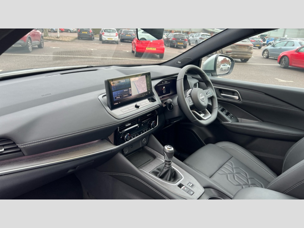 Nissan Qashqai 1.3 DiG-T MH Tekna 5dr 2 front USB-C ports, 2 rear USB-C ports, 360 degree Intelligent around view monitor with moving object detection, Advanced windscreen head up display, Blind spot warning, Drive assist, Drive assist custom mode, Drive modes (sport, normal, eco), Driver drowsiness and attention warning, Electric speed sensitive power steering, Emergency and breakdown call, Emergency lane keep assist, Emergency Stop Signal (ESS), Engine start/stop button, Event data recorder, Front and rear parking sensors, Full Digital 12.3" TFT Digital Combimeter, Google virtual personal assistance, Hands free power tailgate, Idle stop/start system, In-car WIFI hotspot, Intelligent Cruise control (ICC), Intelligent driver alert system, Intelligent forward collision warning, Intelligent lane intervention, Intelligent speed assist, Lane departure warning system, Nissan connect 12.3 inch touchscreen infotainment system, Nissan connect navigation with google maps, Nissan connect services 2.0 (Google Automotive System), Outside temperature sensor, Rear cross traffic alert, Remote control services - door locks, lights, horn and car locator, Reversing detection, Traffic sign recognition with legal speed adjustment, Trip computer, Wireless Apple CarPlay/Android Auto, Wireless charging pad, Limited slip differential, 10 Bose speakers - 2 tweeters, 6 high and medium frequency door speakers and 2 in subwoofer, AM/FM audio system with DAB, Bluetooth audio streaming, Bose acoustimass bass box, Digital amplifier, Auto dimming frameless rear view mirror, Auto rear wiper when reversing, Body colour mirror caps, Body coloured door handles, Bodyside mouldings, Chrome side window finisher, Electric auto folding door mirrors, Electrically adjustable and heated door mirrors with LED turn indicator, Follow me home headlights, High beam assist, Intelligent auto headlights, LED 3rd brake light, LED daytime running lights, LED headlights with adaptive driving beam, LED rear lights, LED sequential turn lights, One touch front and rear electric windows with remote opening and closing, One touch passenger window, Partially body coloured bumpers, Rain sensing wipers, Rear privacy glass, Rear roof spoiler, Rear side wing doors, Rear styling plate, Reverse tilting door mirrors, Shark fin antenna, Silver roof rails, Splash free rain sensing wipers, Super RED rear LED lights, Super UV and infrared cut glass, Thermaclear heated windscreen, 12v power socket in dashboard and luggage, 3 bench rear seats in 2nd row, 3 rear headrests, 60/40 split folding rear seat bench, Chrome interior door handles, Dark headlining, Driver and passenger sunvisors with illuminated vanity mirrors, Driver seat back pocket, Dual zone automatic climate control with pollen filter, Electrically adjustable driver seat, Electrically adjustable lumbar support for driver, Fixed Glass roof with electric sunshade, Front centre console and armrest, Front cupholders, Front door with bottle holders, Heated front seats, Heated steering wheel, Height adjustable front headrests, Height adjustable passenger seat, Leather shift knob, Luggage board system, Luggage space lighting, Manual adjustable lumbar support for passenger, Multifunction steering wheel, Passenger seat back pocket, Quilted/PVC upholstery, Rear door bottle holders, Rear seat armrest with 2 cupholders, RGB ambient light (Full area coverage), Single front passenger seat, Smooth leather steering wheel, Tilt/telescopic adjustable steering wheel, Two rear isofix child seat anchorage points with top tether, 3x3 point rear seatbelt pretensioners + load limiters, ABS with EBD and brake assist, Autonomous emergency braking, Child locks on rear doors, Curtain and front side, far side airbags, Driver and passenger airbags, Driver, passenger and 2nd row rear seat belt reminder, Electric handbrake with auto hold function, Front seatbelt pretensioners + load limiters, Height adjustable front seatbelts, Hill start assist, Intelligent blind spot intervention, intelligent front emergency braking, Intelligent rear automatic braking, Tyre pressure monitoring system, Vehicle dynamic control, Engine immobiliser, Intelligent key with walk away lock and approach unlock functions, Remote central door locking with deadlocking, Thatcham alarm, 19" Diamond cut alloy wheels, Tyre puncture repair kit