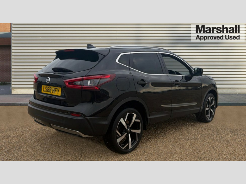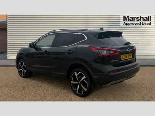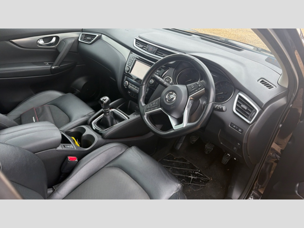 Nissan Qashqai 1.5 dCi 115 Tekna 5dr Advanced drive assist display 5'' TFT coloured screen, Bluetooth phone integration system, Cruise control + speed limiter, Electric speed sensitive power steering, Front parking sensors, Intelligent around view monitor, Intelligent parking assist, Lane departure warning system, Nissan connect evo 7" touchscreen navigation and entertainment system, Outside temperature sensor, Push button starter, Rear parking sensors, Rear view camera, Selectable steering, Service interval indicator, Smartphone integration, Stop/start system, Traffic sign recognition, Trip computer, Diesel particulate filter, Nissan chassis control (intelligent ride control, intelligent trace control, intelligent engine brake), Aux-in socket, Bose premium 8 speaker system, DAB Digital radio, Radio/CD, Steering wheel mounted audio controls, USB port, Anti dazzle rear view mirror, Auto wipers, Body colour bumpers, Body colour door handles, Body colour door mirrors, Chrome window surround, Daytime running lights dip function when turn signal applied, Electric folding door mirrors, Electric front and rear windows with one touch illuminated window controls, Electric front/rear windows, Electrically adjustable door mirrors, Front fog lights, Heated door mirrors, High beam assist, Intelligent auto headlights, LED indicators in door mirrors, Matt silver roof rails, Panoramic sunroof with one touch shade, Privacy glass, Rear roof spoiler, Rear wiper, Shark fin antenna, Underbody vortex generators, 2 X front 12v power sockets, 3 height adjustable rear headrests, 60/40 split folding rear seat, Ambient interior lighting, Boot light, Centre console storage box/armrest, Chrome interior door handles, Configurable luggage board system, Dual zone climate control, Electric adjust driver's seat, Front and rear door pockets with bottle holders, Front and rear seat belt pre-tensioners with load limiters, Front headrests, Height adjustable front headrests, Individual rear seat reading lights, Leather D shaped steering wheel, Leather gear lever, Leather knee pad, Manual height adjustable front passenger seat, Manual lumbar support on driver seat, Manual lumbar support on passenger seat, Monoform front seats with plastic backboard, One touch electric shade, Parcel shelf stow function under luggage board, Part leather upholstery, Pollen filter, Rear armrest with 2 cupholders, Rear headrests, Synthetic leather wrapped door handle with contrasting stitching, Tilt/telescopic adjustable steering wheel, Heat package - Qashqai, LED pack - Qashqai, Safety shield plus pack - Qashqai, 6 airbags - Driver, front passenger, curtain and side airbags, ABS, ESP, EBD and brake assist, Auto hold function, Child locks on rear doors, Electronic parking brake, Front and rear seat belt warning, Front passenger airbag deactivation, Height adjustable front seatbelts, Hill start assist, Intelligent emergency braking with pedestrian recognition, Three 3 point rear seatbelts, Tyre pressure monitoring system, Anti-theft immobiliser, Intelligent Key, Remote central locking, Thatcham Cat.1 alarm, Carbon graphite dash trim, Tyre puncture repair kit