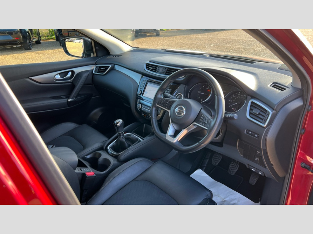 Nissan Qashqai 1.5 dCi 115 Tekna 5dr Advanced drive assist display 5'' TFT coloured screen, Android Auto, Apple CarPlay preparation, Bluetooth connectivity, Electric speed sensitive power steering, Front parking sensors, Intelligent around view monitor, Intelligent parking assist, Nissan connect evo 7" touchscreen navigation and entertainment system, Normal or sport selectable steering, Outside temperature sensor, Push button starter, Rear parking sensors, Rear view camera, Service interval indicator, Smartphone integration, Stop/start system, Tomtom connected services, Traffic sign recognition, Trip computer, Voice control system, Diesel particulate filter, Nissan chassis control (intelligent ride control, intelligent trace control, intelligent engine brake), AM/FM radio, CD audio system, Aux-in socket, Bose premium 8 speaker system, DAB Digital radio, Steering wheel mounted audio controls, USB port, Anti dazzle rear view mirror, Auto wipers, Body colour bumpers, Body coloured door handles, Body coloured door mirrors, Chrome window surround, Daytime running lights dip function when turn signal applied, Electric folding door mirrors, Electric front and rear windows with one touch illuminated window controls, Electric front/rear windows, Electrically adjustable door mirrors, Front fog lights, Heated door mirrors, High beam assist, Intelligent auto headlights, LED indicators in door mirrors, Matt silver roof rails, Panoramic sunroof with one touch shade, Privacy glass, Rear roof spoiler, Rear wiper with reverse link, Shark fin antenna, Underbody vortex generators, 2 X front 12v power sockets, 3 height adjustable rear headrests, 60/40 split folding rear seat, Ambient lighting in centre console, Boot lighting, Centre console storage box/armrest, Chrome interior door handles, Configurable luggage board system, Dual zone climate control, Electrically adjustable driver seat, Front and rear door pockets with bottle holders, Front and rear seat belt pre-tensioners with load limiters, Height adjustable front headrests, Individual rear seat reading lights, Leather D shaped steering wheel, Leather gear lever, Leather knee pad, Manual height adjustable front passenger seat, Manual lumbar support on driver seat, Manual lumbar support on passenger seat, Monoform front seats with plastic backboard, One touch electric shade, Parcel shelf stow function under luggage board, Part leather upholstery, Pollen filter, Rear armrest with 2 cupholders, Synthetic leather wrapped door handle with contrasting stitching, Tilt/telescopic adjustable steering wheel, Heat package - Qashqai, LED pack - Qashqai, Safety shield plus pack - Qashqai, 6 airbags - Driver, front passenger, curtain and side airbags, ABS, ESP, EBD and brake assist, Auto hold function, Child locks on rear doors, Electronic parking brake, Front and rear seat belt warning, Front passenger airbag deactivation, Height adjustable front seatbelts, Hill start assist, Intelligent emergency braking with pedestrian recognition, Three 3 point rear seatbelts, Tyre pressure monitoring system, Anti-theft immobiliser, Intelligent Key, Remote central locking, Thatcham Cat.1 alarm, Carbon graphite dash trim, Tyre puncture repair kit