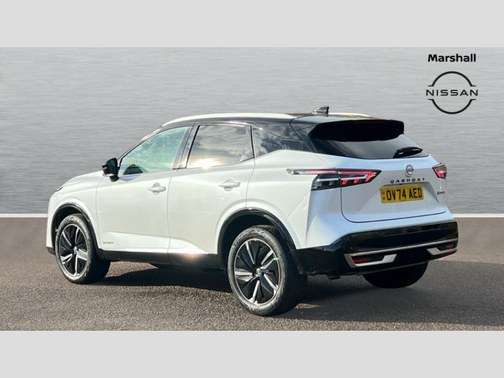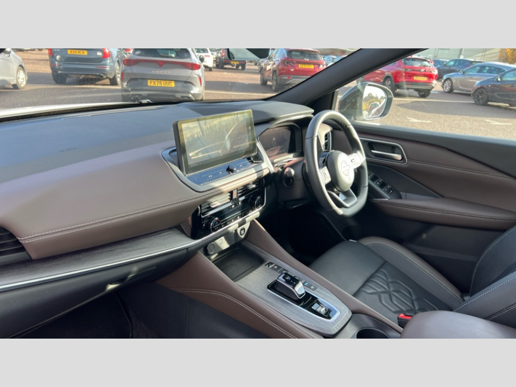 Nissan Qashqai 1.5 E-Power Tekna 5dr Auto 2 front USB-C ports, 2 rear USB-C ports, 360 degree Intelligent around view monitor with moving object detection, Advanced windscreen head up display, Blind spot intervention, Blind spot warning, Drive assist custom mode, Drive modes (sport, normal, eco), Driver drowsiness and attention warning, e-Pedal step, Electric speed sensitive power steering, Emergency and breakdown call, Emergency lane keep assist, Emergency Stop Signal (ESS), Engine start/stop button, EV mode switch, Event data recorder, Front and rear parking sensors, Full Digital 12.3" TFT Digital Combimeter, Google virtual personal assistance, Hands free power tailgate, Idle stop/start system, In-car WIFI hotspot, Intelligent Cruise control (ICC), Intelligent forward collision warning, Intelligent speed assist, Lane departure warning system, Nissan connect 12.3 inch touchscreen infotainment system, Nissan connect navigation with google maps, Nissan connect services 2.0 (Google Automotive System), Outside temperature sensor, Rear cross traffic alert, Reversing detection, Traffic jam pilot, Wireless Apple CarPlay/Android Auto, Wireless charging pad, Limited slip differential, 6 speakers, AM/FM audio system with DAB, Bluetooth audio streaming, Auto dimming frameless rear view mirror, Auto rear wiper when reversing, Body colour mirror caps, Body coloured door handles, Bodyside mouldings, Chrome side window finisher, e-POWER badging, Electric auto folding door mirrors, Electrically adjustable and heated door mirrors with LED turn indicator, Follow me home headlights, Glossy black bumper inserts and fenders, High beam assist, Intelligent auto headlights, LED 3rd brake light, LED daytime running lights, LED headlights with adaptive driving beam, LED rear lights, LED sequential turn lights, One touch front and rear electric windows with remote opening and closing, One touch passenger window, Partially body coloured bumpers, Rear privacy glass, Rear roof spoiler, Rear side wing doors, Rear styling plate, Reverse tilting door mirrors, Shark fin antenna, Silver roof rails, Splash free rain sensing wipers, Super RED rear LED lights, Super UV and infrared cut glass, Thermaclear heated windscreen, 3 bench rear seats in 2nd row, 3 rear headrests, 60/40 split folding rear seat bench, Chrome interior door handles, Dark headlining, Driver seat back pocket, Dual zone automatic climate control with pollen filter, e-POWER shifter, Fixed Glass roof with electric sunshade, Front door with bottle holders, Heated front seats, Heated steering wheel, Height adjustable front headrests, Luggage board system, Luggage space lighting, Multifunction steering wheel, Passenger seat back pocket, Quilted/PVC upholstery, Rear door bottle holders, RGB ambient light (Full area coverage), Single front passenger seat, Smooth leather steering wheel, Tilt/telescopic adjustable steering wheel, Two rear isofix child seat anchorage points with top tether, 3x3 point rear seatbelt pretensioners + load limiters, Autonomous emergency braking, Child locks on rear doors, Curtain and front side, far side airbags, Driver and passenger airbags, Driver, passenger and 2nd row rear seat belt reminder, Electric handbrake with auto hold function, Front seatbelt pretensioners + load limiters, Height adjustable front seatbelts, Hill start assist, intelligent front emergency braking, Rear automatic braking, Tyre pressure monitoring system, Vehicle dynamic control, Engine immobiliser, Intelligent key with walk away lock and approach unlock functions, Remote central door locking with deadlocking, Thatcham alarm, 19" Diamond cut alloy wheels, Tyre puncture repair kit