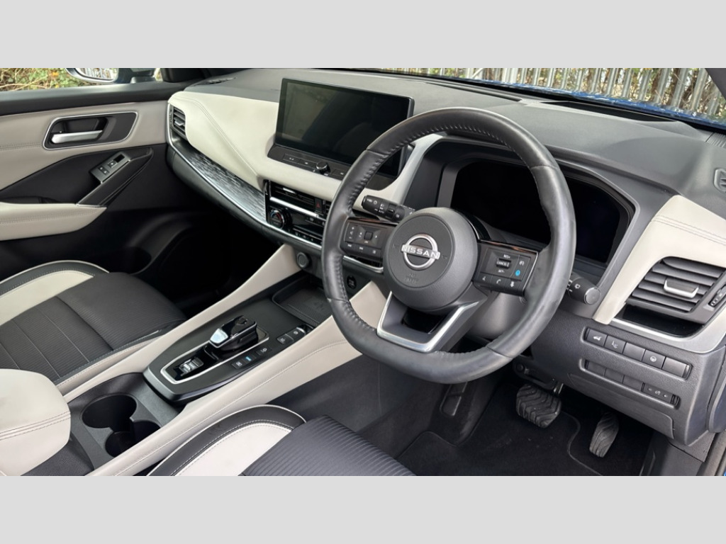 Nissan Qashqai 1.5 E-Power Tekna 5dr Auto Advanced windscreen head up display, Android auto/Apple CarPlay (Wired), Blind spot warning, Drive modes (sport, normal, eco), Electric speed sensitive power steering, Emergency and breakdown call, Front and rear parking sensors, Full Digital 12.3" TFT Digital Combimeter, Google maps services - search, weather, 3D maps and Google street view, Hands free power tailgate, Idle stop/start system, Intelligent around view monitor, Intelligent Cruise control (ICC), Intelligent driver alert system, Intelligent forward collision warning, Intelligent lane intervention, Lane departure prevention, Lane departure warning system, Lane keep assist, Moving object detection, Nissan connect 12.3 inch touchscreen infotainment system, Nissan connect navigation, Pro pilot park assist, ProPILOT with Navi-Link, Push button starter, Rear cross traffic alert, Rear view camera, Remote control services - door locks, lights, horn and car locator, Telematics - notifications and connectivity services, TomTom live traffic services, Traffic sign recognition with legal speed adjustment, Trip computer, Virtual personal assistant and firmware over the air capability, Wireless apple carplay, Wireless charging pad, 6 speakers, AM/FM audio system with DAB, Bluetooth audio streaming, Front USB connections (Type-A and Type-C), Rear USB charging only ports (Type-A and Type-C), Auto dimming rear view mirror, Auto rear wiper when reversing, Automatic hazard signal with emergency stop signal, Body colour mirror caps, Body coloured door handles, Bodyside mouldings, Chrome side window finisher, Door handle with button, e-POWER badging, Electric auto folding door mirrors, Electrically adjustable and heated door mirrors with LED turn indicator, Follow me home headlights, Front and rear LED turning signals, Headlights auto levelling system, Intelligent auto headlights, LED daytime running lights, LED headlights with adaptive driving beam, LED rear lights, One touch front and rear electric windows with remote opening and closing, Partially body coloured bumpers, Privacy glass, Rear bumper with graphite insert, Rear reversing light (bulb lighting), Rear roof spoiler, Rear side wing doors, Rear styling plate, Shark fin antenna, Splash free rain sensing wipers, Super UV and infrared cut glass, Thermaclear heated windscreen, Three blink turn signal, 12v power socket in dashboard and luggage, 2x Rear coat hooks, 3 bench rear seats in 2nd row, 3 rear headrests, 4 folding assist grip, 6 Luggage hooks - 4 on floor, 2 on side, 60/40 split folding rear seat bench, Ambient lighting around centre console, Ambient lighting in front doors, Centre console storage tray, Chrome interior door handles, Cloth/syntech leather monoform upholstery, Dark black/blueish PVC wrapping, Dark headlining, Driver and front passenger sunvisors with illuminated vanity mirrors, Driver seat back pocket, Dual zone automatic climate control with pollen filter, e-POWER shifter, Electrically adjustable driver seat, Electrically adjustable lumbar support for driver, Front and rear door storage, Front centre console and armrest, Front cupholders x 2, Front door with bottle holders, Glovebox with light, Hard trunk cover, Heated front seats, Heated steering wheel, Height adjustable driver's seat, Height adjustable front headrests, Height adjustable passenger seat, Leather steering wheel, Luggage board system, Luggage space lighting, Manual lumbar support on passenger seat, Manually adjustable passenger (slide recline + lifter), Multifunction steering wheel, Passenger seat back pocket, Rear armrest with 2 cupholders, Rear door bottle holders, Single front passenger seat, Soft PVC kneepad, Steering wheel switches, Tilt/telescopic adjustable steering wheel, Two rear isofix child seat anchorage points with top tether, Welcome light and doors with console tray ambient lighting, Glass roof pack with roof rails - Qashqai, 3x3 point rear seatbelt pretensioners + load limiters, ABS with EBD and brake assist, Active brake limited slip, Auto hold function, Child locks on rear doors, Curtain and front side, far side airbags, Driver and passenger airbags, Driver, passenger and 2nd row rear seat belt reminder, Electronic parking brake, Front seatbelt pretensioners + load limiters, Height adjustable front seatbelts, Hill start assist, Intelligent blind spot intervention, Intelligent front emergency braking with pedestrian, cyclist recognition and junction assist, Intelligent rear automatic braking, Tyre pressure monitoring system, Vehicle dynamic control, Capless fuel filler, Engine immobiliser, Intelligent Key, Remote central door locking with deadlocking, Thatcham Cat.1 alarm, Interior instrumental panel C finisher, 19" Diamond cut alloy wheels, Tyre puncture repair kit