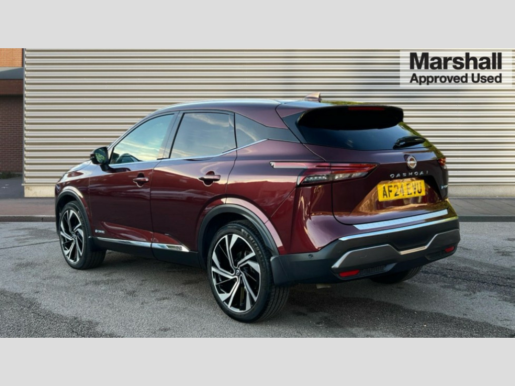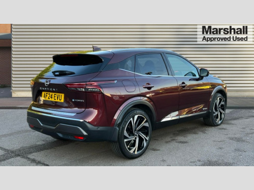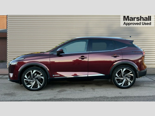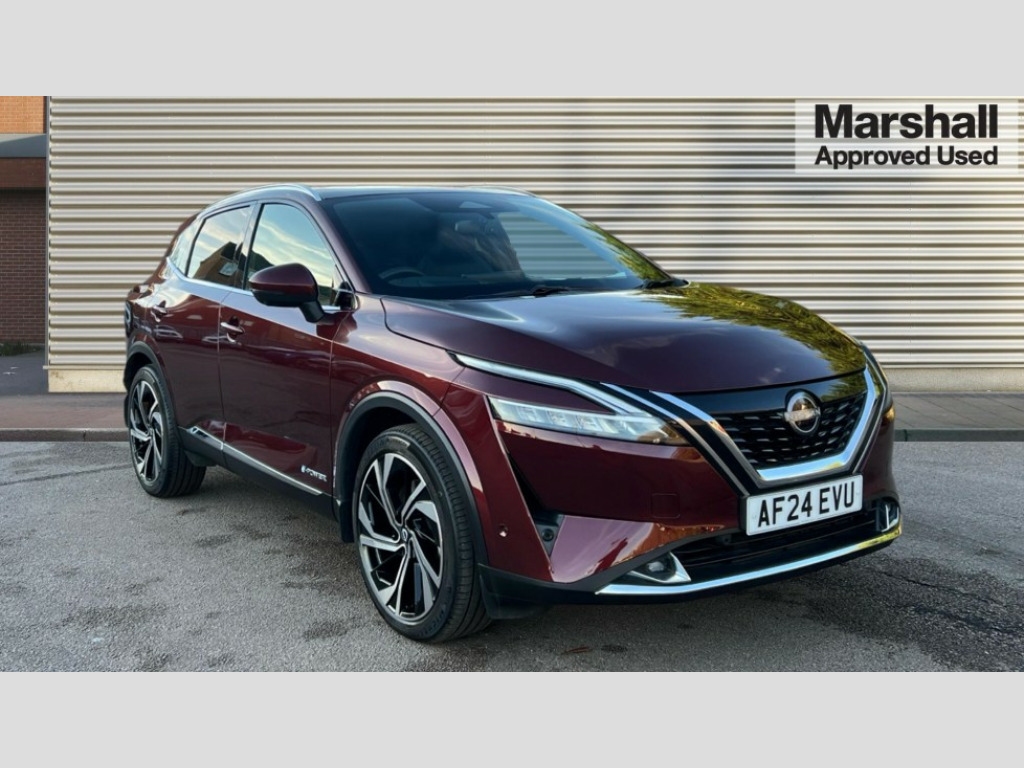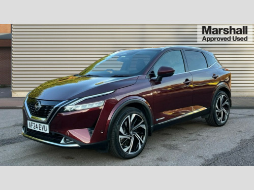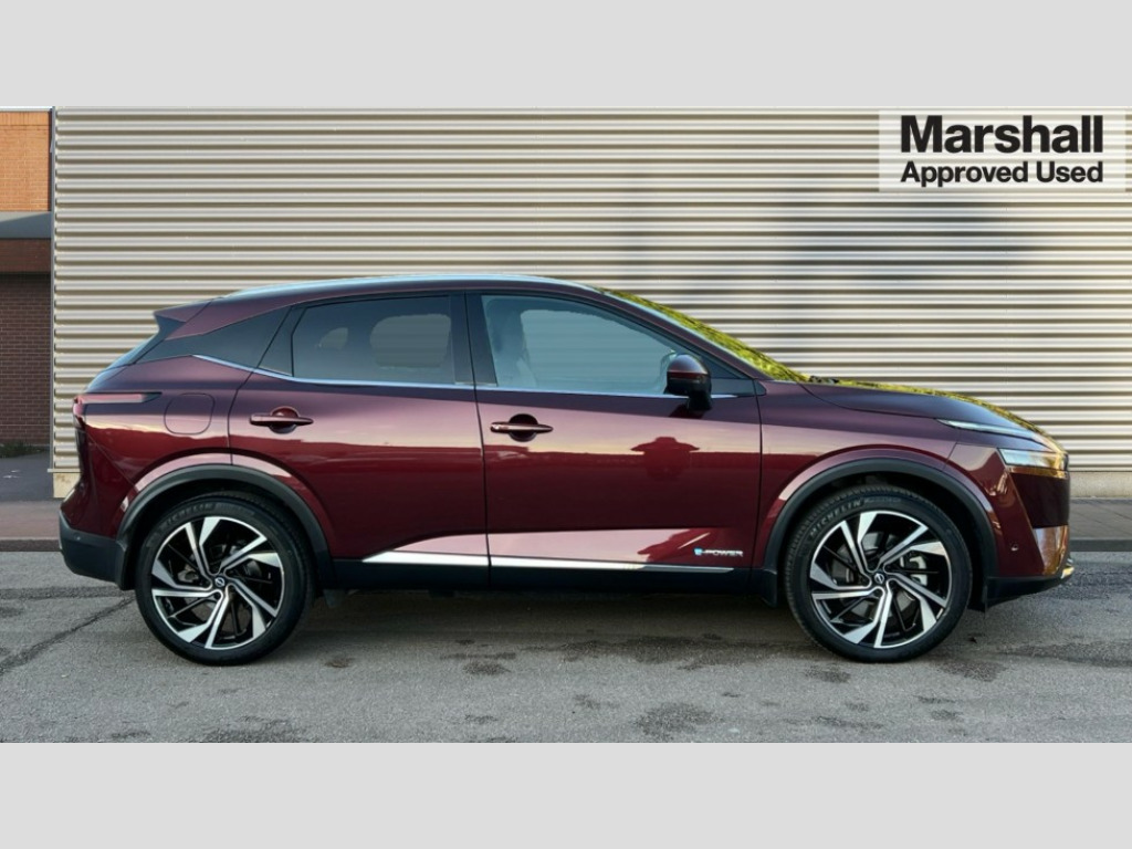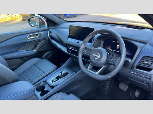 Nissan Qashqai 1.5 E-Power Tekna+ 5dr Auto Advanced windscreen head up display, Blind spot warning, Drive modes (sport, normal, eco), e-Pedal step, Electric speed sensitive power steering, Emergency and breakdown call, Front and rear parking sensors, Full Digital 12.3" TFT Digital Combimeter, Google maps services - search, weather, 3D maps and Google street view, Hands free power tailgate, Idle stop/start system, Intelligent around view monitor, Intelligent Cruise control (ICC), Intelligent driver alert system, Intelligent forward collision warning, Intelligent lane intervention, Lane departure prevention, Lane departure warning system, Lane keep assist, Moving object detection, Nissan connect 12.3 inch touchscreen infotainment system, Nissan connect navigation, Pro pilot park assist, Push button starter, Rear cross traffic alert, Rear view camera, Remote control services - door locks, lights, horn and car locator, Telematics - notifications and connectivity services, TomTom live traffic services, Traffic sign recognition with legal speed adjustment, Trip computer, Virtual personal assistant and firmware over the air capability, Wireless Apple CarPlay and wired Android Auto, Wireless charging pad, 10 Bose speakers - 2 tweeters, 6 high and medium frequency door speakers and 2 in subwoofer, AM/FM audio system with DAB, Bluetooth audio streaming, Bose acoustimass bass box, Digital amplifier, Front USB connections (Type-A and Type-C), Rear USB charging only ports (Type-A and Type-C), Auto dimming rear view mirror, Auto rear wiper when reversing, Automatic hazard signal with emergency stop signal, Body colour mirror caps, Body coloured door handles, Bodyside mouldings, Chrome side window finisher, Door handle with button, Door mirror memory, e-POWER badging, Electric auto folding door mirrors, Electrically adjustable and heated door mirrors with LED turn indicator, Follow me home headlights, Front and rear LED turning signals, Headlights auto levelling system, Intelligent auto headlights, LED 3rd brake light, LED daytime running lights, LED front fog lights, LED headlights with adaptive driving beam, LED rear lights, One touch front and rear electric windows with remote opening and closing, Privacy glass, Rear bumper with graphite insert, Rear reversing light (bulb lighting), Rear roof spoiler, Rear side wing doors, Rear styling plate, Reverse tilting door mirrors, Shark fin antenna, Splash free rain sensing wipers, Super UV and infrared cut glass, Thermaclear heated windscreen, Three blink turn signal, 12v power socket in dashboard and luggage, 2x Rear coat hooks, 3 bench rear seats in 2nd row, 3 rear headrests, 4 folding assist grip, 6 Luggage hooks - 4 on floor, 2 on side, 60/40 split folding rear seat bench, Ambient lighting around centre console, Ambient lighting in front doors, Centre console storage tray, Chrome interior door handles, Dark black/blueish PVC wrapping, Dark headlining, Driver and front passenger sunvisors with illuminated vanity mirrors, Driver seat back pocket, Dual zone automatic climate control with pollen filter, e-POWER shifter, Electric 4-way lumbar support for drivers seat, Electric adjustable 4 way lumbar support for passenger seat, Electrically adjustable driver seat with massage and memory functions, Front and rear door storage, Front centre console and armrest, Front cupholders x 2, Front door with bottle holders, Glovebox with light, Hard trunk cover, Heated front seats, Heated steering wheel, Height adjustable driver's seat, Height adjustable front headrests, Height adjustable passenger seat, Leather steering wheel, Luggage board system, Luggage space lighting, Manually adjustable passenger (slide recline + lifter), Multifunction steering wheel, Passenger seat back pocket, Quilted premium leather upholstery, Rear armrest with 2 cupholders, Rear door bottle holders, Single front passenger seat, Soft PVC kneepad, Steering wheel switches, Tilt/telescopic adjustable steering wheel, Two rear isofix child seat anchorage points with top tether, Welcome light and doors with console tray ambient lighting, Glass roof pack with roof rails - Qashqai, 3x3 point rear seatbelt pretensioners + load limiters, ABS with EBD and brake assist, Active brake limited slip, Auto hold function, Child locks on rear doors, Curtain and front side, far side airbags, Driver and passenger airbags, Driver, passenger and 2nd row rear seat belt reminder, Electronic parking brake, Front seatbelt pretensioners + load limiters, Height adjustable front seatbelts, Hill start assist, Intelligent blind spot intervention, Intelligent front emergency braking with pedestrian, cyclist recognition and junction assist, Intelligent rear automatic braking, Tyre pressure monitoring system, Vehicle dynamic control, Advance intelligent key with driver memory storage (seats, mirrors, audio), Capless fuel filler, Engine immobiliser, Remote central door locking with deadlocking, Thatcham Cat.1 alarm, Interior instrumental panel C finisher, 20" Diamond cut alloy wheels, Tyre puncture repair kit
