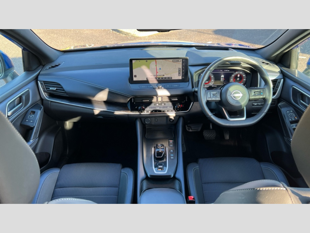 Nissan Qashqai 1.5 E-Power Tekna 5dr Auto Advanced windscreen head up display, Blind spot warning, Drive modes (sport, normal, eco), e-Pedal step, Electric speed sensitive power steering, Emergency and breakdown call, Front and rear parking sensors, Full Digital 12.3" TFT Digital Combimeter, Google maps services - search, weather, 3D maps and Google street view, Hands free power tailgate, Idle stop/start system, Intelligent around view monitor, Intelligent Cruise control (ICC), Intelligent driver alert system, Intelligent forward collision warning, Intelligent lane intervention, Lane departure prevention, Lane departure warning system, Lane keep assist, Moving object detection, Nissan connect 12.3 inch touchscreen infotainment system, Nissan connect navigation, ProPILOT with Navi-Link, Push button starter, Rear cross traffic alert, Rear view camera, Remote control services - door locks, lights, horn and car locator, Telematics - notifications and connectivity services, TomTom live traffic services, Traffic sign recognition with legal speed adjustment, Trip computer, Virtual personal assistant and firmware over the air capability, Wireless Apple CarPlay and wired Android Auto, Wireless charging pad, 6 speakers, AM/FM audio system with DAB, Bluetooth audio streaming, Front USB connections (Type-A and Type-C), Rear USB charging only ports (Type-A and Type-C), Auto dimming rear view mirror, Auto rear wiper when reversing, Automatic hazard signal with emergency stop signal, Body colour mirror caps, Body coloured door handles, Bodyside mouldings, Chrome side window finisher, Door handle with button, e-POWER badging, Electric auto folding door mirrors, Electrically adjustable and heated door mirrors with LED turn indicator, Follow me home headlights, Front and rear LED turning signals, Headlights auto levelling system, Intelligent auto headlights, LED 3rd brake light, LED daytime running lights, LED headlights with adaptive driving beam, LED rear lights, One touch front and rear electric windows with remote opening and closing, Partially body coloured bumpers, Privacy glass, Rear bumper with graphite insert, Rear reversing light (bulb lighting), Rear roof spoiler, Rear side wing doors, Rear styling plate, Shark fin antenna, Splash free rain sensing wipers, Super UV and infrared cut glass, Thermaclear heated windscreen, Three blink turn signal, 12v power socket in dashboard and luggage, 2x Rear coat hooks, 3 bench rear seats in 2nd row, 3 rear headrests, 4 folding assist grip, 6 Luggage hooks - 4 on floor, 2 on side, 60/40 split folding rear seat bench, Ambient lighting around centre console, Ambient lighting in front doors, Centre console storage tray, Chrome interior door handles, Cloth/syntech leather monoform upholstery, Dark black/blueish PVC wrapping, Dark headlining, Driver and front passenger sunvisors with illuminated vanity mirrors, Driver seat back pocket, Dual zone automatic climate control with pollen filter, e-POWER shifter, Electrically adjustable driver seat, Electrically adjustable lumbar support for driver, Front and rear door storage, Front centre console and armrest, Front cupholders x 2, Front door with bottle holders, Glovebox with light, Hard trunk cover, Heated front seats, Heated steering wheel, Height adjustable driver's seat, Height adjustable front headrests, Height adjustable passenger seat, Leather steering wheel, Luggage board system, Luggage space lighting, Manual lumbar support on passenger seat, Manually adjustable passenger (slide recline + lifter), Multifunction steering wheel, Passenger seat back pocket, Rear armrest with 2 cupholders, Rear door bottle holders, Single front passenger seat, Soft PVC kneepad, Steering wheel switches, Tilt/telescopic adjustable steering wheel, Two rear isofix child seat anchorage points with top tether, Welcome light and doors with console tray ambient lighting, Glass roof pack with roof rails - Qashqai, 3x3 point rear seatbelt pretensioners + load limiters, ABS with EBD and brake assist, Active brake limited slip, Auto hold function, Child locks on rear doors, Curtain and front side, far side airbags, Driver and passenger airbags, Driver, passenger and 2nd row rear seat belt reminder, Electronic parking brake, Front seatbelt pretensioners + load limiters, Height adjustable front seatbelts, Hill start assist, Intelligent blind spot intervention, Intelligent front emergency braking with pedestrian, cyclist recognition and junction assist, Intelligent rear automatic braking, Tyre pressure monitoring system, Vehicle dynamic control, Capless fuel filler, Engine immobiliser, Intelligent Key, Remote central door locking with deadlocking, Thatcham Cat.1 alarm, Interior instrumental panel C finisher, 19" Diamond cut alloy wheels, Tyre puncture repair kit