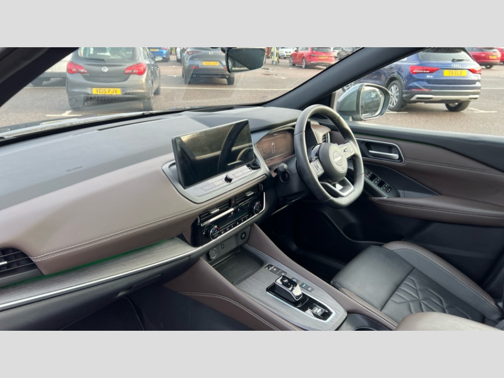 Nissan Qashqai 1.5 E-Power Tekna 5dr Auto 2 front USB-C ports, 2 rear USB-C ports, 360 degree Intelligent around view monitor with moving object detection, Advanced windscreen head up display, Blind spot intervention, Blind spot warning, Drive assist custom mode, Drive modes (sport, normal, eco), Driver drowsiness and attention warning, e-Pedal step, Electric speed sensitive power steering, Emergency and breakdown call, Emergency lane keep assist, Emergency Stop Signal (ESS), Engine start/stop button, EV mode switch, Event data recorder, Front and rear parking sensors, Full Digital 12.3" TFT Digital Combimeter, Google virtual personal assistance, Hands free power tailgate, Idle stop/start system, In-car WIFI hotspot, Intelligent Cruise control (ICC), Intelligent forward collision warning, Intelligent speed assist, Lane departure warning system, Nissan connect 12.3 inch touchscreen infotainment system, Nissan connect navigation with google maps, Nissan connect services 2.0 (Google Automotive System), Outside temperature sensor, Rear cross traffic alert, Reversing detection, Traffic jam pilot, Wireless Apple CarPlay/Android Auto, Wireless charging pad, Limited slip differential, 6 speakers, AM/FM audio system with DAB, Bluetooth audio streaming, Auto dimming frameless rear view mirror, Auto rear wiper when reversing, Body colour mirror caps, Body coloured door handles, Bodyside mouldings, Chrome side window finisher, e-POWER badging, Electric auto folding door mirrors, Electrically adjustable and heated door mirrors with LED turn indicator, Follow me home headlights, High beam assist, Intelligent auto headlights, LED 3rd brake light, LED daytime running lights, LED headlights with adaptive driving beam, LED rear lights, LED sequential turn lights, One touch front and rear electric windows with remote opening and closing, One touch passenger window, Partially body coloured bumpers, Rear privacy glass, Rear roof spoiler, Rear side wing doors, Rear styling plate, Reverse tilting door mirrors, Shark fin antenna, Silver roof rails, Splash free rain sensing wipers, Super RED rear LED lights, Super UV and infrared cut glass, Thermaclear heated windscreen, 3 bench rear seats in 2nd row, 3 rear headrests, 60/40 split folding rear seat bench, Chrome interior door handles, Dark headlining, Driver seat back pocket, Dual zone automatic climate control with pollen filter, e-POWER shifter, Fixed Glass roof with electric sunshade, Front door with bottle holders, Heated front seats, Heated steering wheel, Height adjustable front headrests, Luggage board system, Luggage space lighting, Multifunction steering wheel, Passenger seat back pocket, Quilted/PVC upholstery, Rear door bottle holders, RGB ambient light (Full area coverage), Single front passenger seat, Smooth leather steering wheel, Tilt/telescopic adjustable steering wheel, Two rear isofix child seat anchorage points with top tether, 3x3 point rear seatbelt pretensioners + load limiters, Autonomous emergency braking, Child locks on rear doors, Curtain and front side, far side airbags, Driver and passenger airbags, Driver, passenger and 2nd row rear seat belt reminder, Electric handbrake with auto hold function, Front seatbelt pretensioners + load limiters, Height adjustable front seatbelts, Hill start assist, intelligent front emergency braking, Rear automatic braking, Tyre pressure monitoring system, Vehicle dynamic control, Engine immobiliser, Intelligent key with walk away lock and approach unlock functions, Remote central door locking with deadlocking, Thatcham alarm, 19" Diamond cut alloy wheels, Tyre puncture repair kit