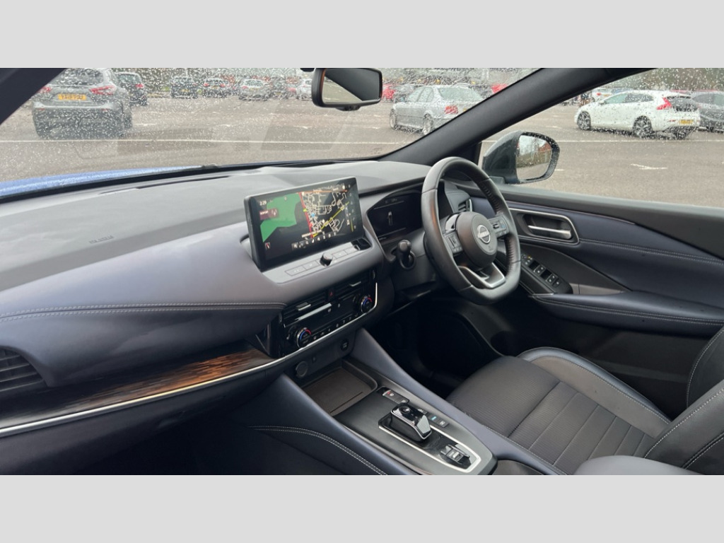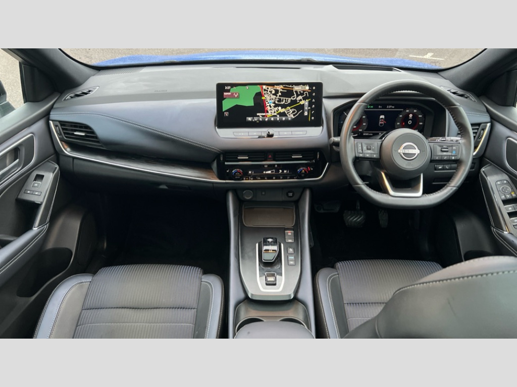 Nissan Qashqai 1.5 E-Power Tekna 5dr Auto Advanced windscreen head up display, Android auto/Apple CarPlay (Wired), Blind spot warning, Drive modes (sport, normal, eco), Electric speed sensitive power steering, Emergency and breakdown call, Front and rear parking sensors, Full Digital 12.3" TFT Digital Combimeter, Google maps services - search, weather, 3D maps and Google street view, Hands free power tailgate, Idle stop/start system, Intelligent around view monitor, Intelligent Cruise control (ICC), Intelligent driver alert system, Intelligent forward collision warning, Intelligent lane intervention, Lane departure prevention, Lane departure warning system, Lane keep assist, Moving object detection, Nissan connect 12.3 inch touchscreen infotainment system, Nissan connect navigation, ProPILOT with Navi-Link, Push button starter, Rear cross traffic alert, Rear view camera, Remote control services - door locks, lights, horn and car locator, Telematics - notifications and connectivity services, TomTom live traffic services, Traffic sign recognition with legal speed adjustment, Trip computer, Virtual personal assistant and firmware over the air capability, Wireless apple carplay, Wireless charging pad, 6 speakers, AM/FM audio system with DAB, Bluetooth audio streaming, Front USB connections (Type-A and Type-C), Rear USB charging only ports (Type-A and Type-C), Auto dimming rear view mirror, Auto rear wiper when reversing, Automatic hazard signal with emergency stop signal, Body colour mirror caps, Body coloured door handles, Bodyside mouldings, Chrome side window finisher, Door handle with button, e-POWER badging, Electric auto folding door mirrors, Electrically adjustable and heated door mirrors with LED turn indicator, Follow me home headlights, Front and rear LED turning signals, Headlights auto levelling system, Intelligent auto headlights, LED daytime running lights, LED headlights with adaptive driving beam, LED rear lights, One touch front and rear electric windows with remote opening and closing, Partially body coloured bumpers, Privacy glass, Rear bumper with graphite insert, Rear reversing light (bulb lighting), Rear roof spoiler, Rear side wing doors, Rear styling plate, Shark fin antenna, Splash free rain sensing wipers, Super UV and infrared cut glass, Thermaclear heated windscreen, Three blink turn signal, 12v power socket in dashboard and luggage, 2x Rear coat hooks, 3 bench rear seats in 2nd row, 3 rear headrests, 4 folding assist grip, 6 Luggage hooks - 4 on floor, 2 on side, 60/40 split folding rear seat bench, Ambient lighting around centre console, Ambient lighting in front doors, Centre console storage tray, Chrome interior door handles, Cloth/syntech leather monoform upholstery, Dark black/blueish PVC wrapping, Dark headlining, Driver and front passenger sunvisors with illuminated vanity mirrors, Driver seat back pocket, Dual zone automatic climate control with pollen filter, e-POWER shifter, Electrically adjustable driver seat, Electrically adjustable lumbar support for driver, Front and rear door storage, Front centre console and armrest, Front cupholders x 2, Front door with bottle holders, Glovebox with light, Hard trunk cover, Heated front seats, Heated steering wheel, Height adjustable driver's seat, Height adjustable front headrests, Height adjustable passenger seat, Leather steering wheel, Luggage board system, Luggage space lighting, Manual lumbar support on passenger seat, Manually adjustable passenger (slide recline + lifter), Multifunction steering wheel, Passenger seat back pocket, Rear armrest with 2 cupholders, Rear door bottle holders, Single front passenger seat, Soft PVC kneepad, Steering wheel switches, Tilt/telescopic adjustable steering wheel, Two rear isofix child seat anchorage points with top tether, Welcome light and doors with console tray ambient lighting, Glass roof pack with roof rails - Qashqai, 3x3 point rear seatbelt pretensioners + load limiters, ABS with EBD and brake assist, Active brake limited slip, Auto hold function, Child locks on rear doors, Curtain and front side, far side airbags, Driver and passenger airbags, Driver, passenger and 2nd row rear seat belt reminder, Electronic parking brake, Front seatbelt pretensioners + load limiters, Height adjustable front seatbelts, Hill start assist, Intelligent blind spot intervention, Intelligent front emergency braking with pedestrian, cyclist recognition and junction assist, Intelligent rear automatic braking, Tyre pressure monitoring system, Vehicle dynamic control, Capless fuel filler, Engine immobiliser, Intelligent Key, Remote central door locking with deadlocking, Thatcham Cat.1 alarm, Interior instrumental panel C finisher, 19" Diamond cut alloy wheels, Tyre puncture repair kit