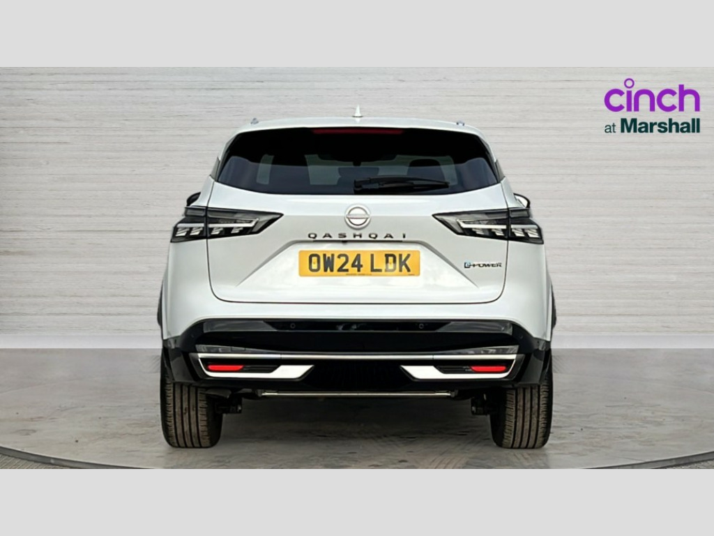 Nissan Qashqai 1.5 E-Power Tekna 5dr Auto 2 front USB-C ports, 2 rear USB-C ports, 360 degree Intelligent around view monitor with moving object detection, Advanced windscreen head up display, Blind spot intervention, Blind spot warning, Drive assist custom mode, Drive modes (sport, normal, eco), Driver drowsiness and attention warning, e-Pedal step, Electric speed sensitive power steering, Emergency and breakdown call, Emergency lane keep assist, Emergency Stop Signal (ESS), Engine start/stop button, EV mode switch, Event data recorder, Front and rear parking sensors, Full Digital 12.3" TFT Digital Combimeter, Google virtual personal assistance, Hands free power tailgate, Idle stop/start system, In-car WIFI hotspot, Intelligent Cruise control (ICC), Intelligent forward collision warning, Intelligent speed assist, Lane departure warning system, Nissan connect 12.3 inch touchscreen infotainment system, Nissan connect navigation with google maps, Nissan connect services 2.0 (Google Automotive System), Outside temperature sensor, Rear cross traffic alert, Reversing detection, Traffic jam pilot, Wireless Apple CarPlay/Android Auto, Wireless charging pad, Limited slip differential, 10 Bose speakers - 2 tweeters, 6 high and medium frequency door speakers and 2 in subwoofer, AM/FM audio system with DAB, Bluetooth audio streaming, Bose acoustimass bass box, Auto dimming frameless rear view mirror, Auto rear wiper when reversing, Body colour mirror caps, Body coloured door handles, Bodyside mouldings, Chrome side window finisher, e-POWER badging, Electric auto folding door mirrors, Electrically adjustable and heated door mirrors with LED turn indicator, Follow me home headlights, Glossy black bumper inserts and fenders, High beam assist, Intelligent auto headlights, LED 3rd brake light, LED daytime running lights, LED headlights with adaptive driving beam, LED rear lights, LED sequential turn lights, One touch front and rear electric windows with remote opening and closing, One touch passenger window, Partially body coloured bumpers, Rear privacy glass, Rear roof spoiler, Rear side wing doors, Rear styling plate, Reverse tilting door mirrors, Shark fin antenna, Silver roof rails, Splash free rain sensing wipers, Super RED rear LED lights, Super UV and infrared cut glass, Thermaclear heated windscreen, 3 bench rear seats in 2nd row, 3 rear headrests, 60/40 split folding rear seat bench, Chrome interior door handles, Dark headlining, Driver seat back pocket, Dual zone automatic climate control with pollen filter, e-POWER shifter, Fixed Glass roof with electric sunshade, Front door with bottle holders, Heated front seats, Heated steering wheel, Height adjustable front headrests, Luggage board system, Luggage space lighting, Multifunction steering wheel, Passenger seat back pocket, Quilted/PVC upholstery, Rear door bottle holders, RGB ambient light (Full area coverage), Single front passenger seat, Smooth leather steering wheel, Tilt/telescopic adjustable steering wheel, Two rear isofix child seat anchorage points with top tether, 3x3 point rear seatbelt pretensioners + load limiters, Autonomous emergency braking, Child locks on rear doors, Curtain and front side, far side airbags, Driver and passenger airbags, Driver, passenger and 2nd row rear seat belt reminder, Electric handbrake with auto hold function, Front seatbelt pretensioners + load limiters, Height adjustable front seatbelts, Hill start assist, intelligent front emergency braking, Rear automatic braking, Tyre pressure monitoring system, Vehicle dynamic control, Engine immobiliser, Intelligent key with walk away lock and approach unlock functions, Remote central door locking with deadlocking, Thatcham alarm, 19" Diamond cut alloy wheels, Tyre puncture repair kit