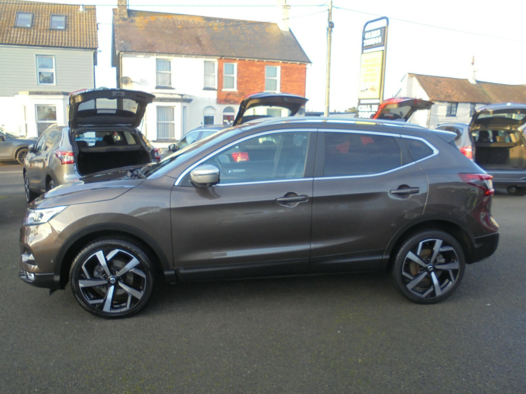 This 2019 Nissan Qashqai Tekna+ DiG-T 5 Dr [160] [7] DCT Auto is in lovely condition with only 42900 miles on the clock and is powered by petrol, making it a perfect choice for city driving. With a MOT that doesn't expire until 30/03/2025 and the ability to seat up to 5 passengers, this vehicle is not only practical but also ULEZ compliant. The car comes with 5 doors and an advanced drive assist display with a 5'' TFT coloured screen, Android Auto, Apple CarPlay preparation, Bluetooth connectivity, and cruise control + speed limiter, providing convenience and comfort for all occupants. With only 1 previous registered keeper, this Qashqai is practically like new and ready to hit the road., vanced drive assist display 5, android auto, apple carplay preparation, bluetooth connectivity, cruise control + speed limiter, electric speed sensitive power steering, front parking sensors, intelligent around view monitor, intelligent parking assist, lane departure warning system, nissan connect evo 7'' touchscreen navigation and entertainment system, normal or sport selectable steering, outside temperature sensor, push button starter, rear parking sensors, rear view camera, service interval indicator, smartphone integration, stop/start system, tomtom connected services, traffic sign recognition, trip computer, voice control system, nissan chassis control (intelligent ride control, intelligent trace control, intelligent engine brake), am/fm radio, cd audio system, aux-in socket, bose premium 8 speaker system, dab digital radio, steering wheel mounted audio controls, usb port, anti dazzle rear view mirror, auto wipers, body colour bumpers, body coloured door handles, chrome window surround, daytime running lights dip function when turn signal applied, electric folding door mirrors, electric front and rear windows with one touch illuminated window controls, electric front/rear windows, electrically adjustable door mirrors, front fog lights, gloss silver door mirror caps, heated door mirrors, high beam assist, intelligent auto headlights, led indicators in door mirrors, matt silver roof rails, panoramic sunroof with one touch shade, privacy glass, rear roof spoiler, rear wiper with reverse link, shark fin antenna, underbody vortex generators, 2 x front 12v power sockets, 3 height adjustable rear headrests, 60/40 split folding rear seat, ambient lighting in centre console, boot lighting, centre console storage box/armrest, chrome interior door handles, configurable luggage board system, dark headlining, dual zone climate control, electric 4-way lumbar support for drivers seat, electrically adjustable driver seat, electrically adjustable passenger seat, front and rear door pockets with bottle holders, front and rear seat belt pre-tensioners with load limiters, height adjustable front headrests, individual rear seat reading lights, leather d shaped steering wheel, leather gear lever, leather knee pad, manual lumbar support on passenger seat, map reading lamp, memory for drivers seat/door mirrors, monoform front seats with plastic backboard, one touch electric shade, parcel shelf stow function under luggage board, pollen filter, rear armrest with 2 cupholders, synthetic leather wrapped door handle with contrasting stitching, tilt/telescopic adjustable steering wheel, heat package - qashqai, led pack - qashqai, safety shield plus pack - qashqai, 6 airbags - driver, front passenger, curtain and side airbags, abs, esp, ebd and brake assist, auto hold function, child locks on rear doors, electronic parking brake, front and rear seat belt warning, front passenger airbag deactivation, height adjustable front seatbelts, hill start assist, intelligent emergency braking with pedestrian recognition, three 3 point rear seatbelts, tyre pressure monitoring system, anti-theft immobiliser, intelligent key, remote central locking, thatcham cat.1 alarm, carbon graphite dash trim, tyre puncture repair kit, new mot, 19'' Alloys