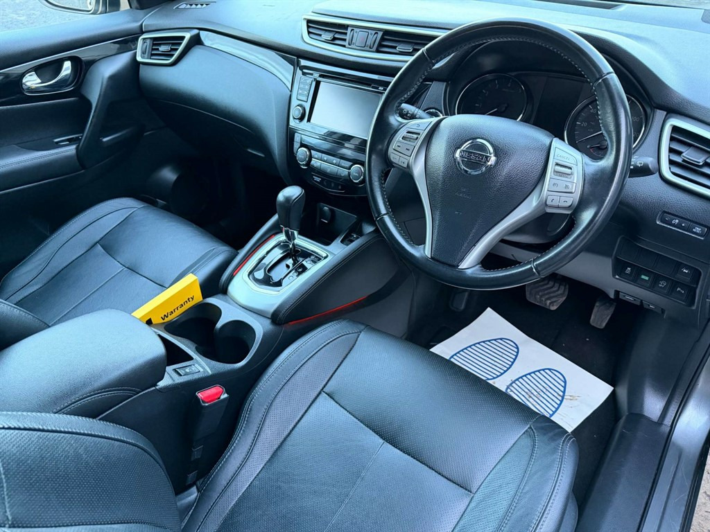Introducing the exceptional Nissan Qashqai, a perfect blend of style, performance, and practicality. This stunning Qashqai Tekna DiG-T CVT 5dr, finished in an elegant Grey, is ready to elevate your driving experience. With just 37,307 miles on the clock and having been cherished by only two previous owners, this Qashqai is in superb condition, offering you peace of mind and reliability for years to come. The sophisticated Grey finish not only exudes class but also complements the sleek and modern design of the Qashqai, making it a head-turner on any road. Step inside, and you'll be greeted by a spacious and luxurious interior, packed with advanced features designed to make every journey a pleasure. The CVT automatic transmission ensures a smooth and effortless drive, while the 1.2-litre DiG-T engine delivers impressive performance and efficiency. The Tekna trim level offers an array of premium features, including a panoramic sunroof, leather seats, and a state-of-the-art infotainment system, ensuring you travel in comfort and style. Safety is paramount, and the Qashqai is equipped with cutting-edge technology to keep you and your passengers protected on every adventure. Don't miss the opportunity to own this remarkable Nissan Qashqai. It's the perfect companion for city commutes, family road trips, and everything in between. Visit us today and experience the unparalleled quality and innovation that only a Nissan Qashqai can offer. Your next adventure awaits! e-PKB - Electric Parking Brake,Tilt and Telescopic Adjustable Steering Wheel,Tech Pack,TPMS - Tyre Pressure Monitoring System,Smart Vision Pack,Selectable Steering - Normal or Sport,Seats - Passengers Height Adjustment,Seats - Drivers Lumbar Support,Safety Shield,Roof Rails - Satin Silver,Remote Audio Control,Rear Seat Armrest with 2 Cupholders,Rear Privacy Glass,Body-coloured Bumpers - Handles and Mirrors,Executive Pack,Electric Speed-Sensitive Power Steering,ESP ABS EBD and Brake Assist,Dual Zone Climate Control Air Conditioning,Drivers Side One-touch and Anti-trap Window,Driver-Passenger-Side and Curtain Airbags,Driver Seat Height Adjustment,Drive Computer,Cruise Control with Speed Limiter,Chrome Glass Surround,CD Radio,Front Centre Console and Armrest,Bluetooth,Black Honeycomb Front Grille,Automatic Lights and Wipers,Automatic Folding Door Mirrors,Alarm,AUX Socket for MP3 Player,60-40 Split Rear Folding Seats,6 Speakers,5in High Definition Full Colour TFT Screen Combimeter,3 x 3-Point Rear Seatbelts with ELR,ISOFIX Child Seat Anchoring Points,Rear Door Child Locks,Push Start-Stop Button,Puncture Repair Kit,Nissan Chassis Controls,Luggage Board System,Leather Steering Wheel,LED Signature Daytime Running Lights,Interior Ambient Lighting,Intelligent Park Assist,Intelligent Key,Immobiliser,19in Alloy Wheels - 5-Spoke,Hill Start Assist,Height Adjustable Front Head Restraints,Heat Pack,Headlights - Bi-LED,Headlights - Automatic Levelling,Head Restraints - 3 Rear,Front and Rear Electric Windows,Front Seat Belts with Load Limiter and Pretensioners,Front Seat Belt Height Adjustment,Front Fog Lamps with Chrome Ring